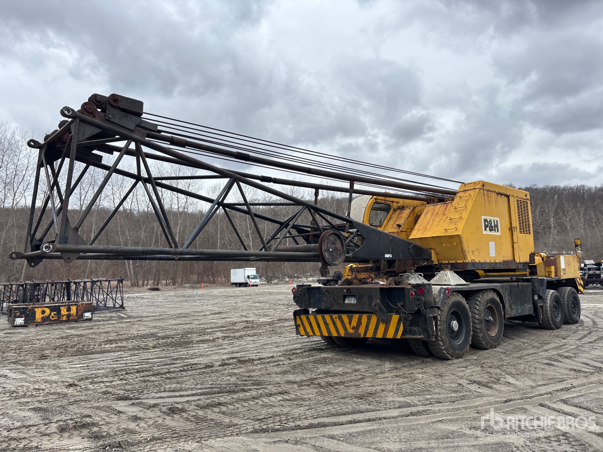 Located in Lane 9 Spot 8, 130 ft Boom, 4 Sheave Hook Block, 25000 lb Counterweight, Manual Transmission, 934 hrs Carrier Engine, 1980 US EPA Label, Cummins NTC250 14 L Diesel Carrier Engine, Cummins 14 L Diesel Upper Engine