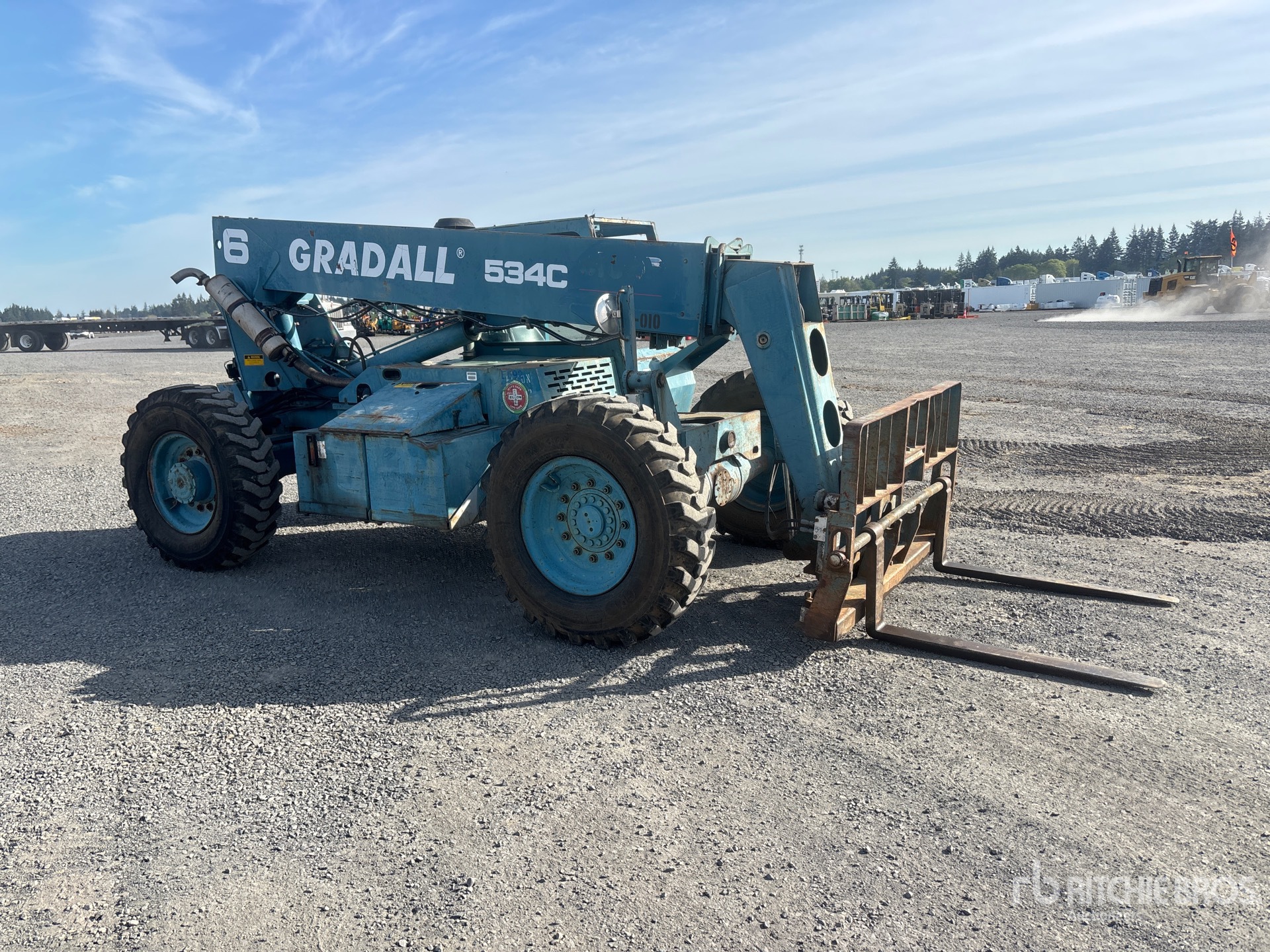 Located in Lane 9 Spot 12, Open Operator Station, 34 ft Max Lift Height, 6000 lb Max Lift Capacity, 47 in Forks, Tilt Carriage, Manual Coupler, 13.00-24 Tires