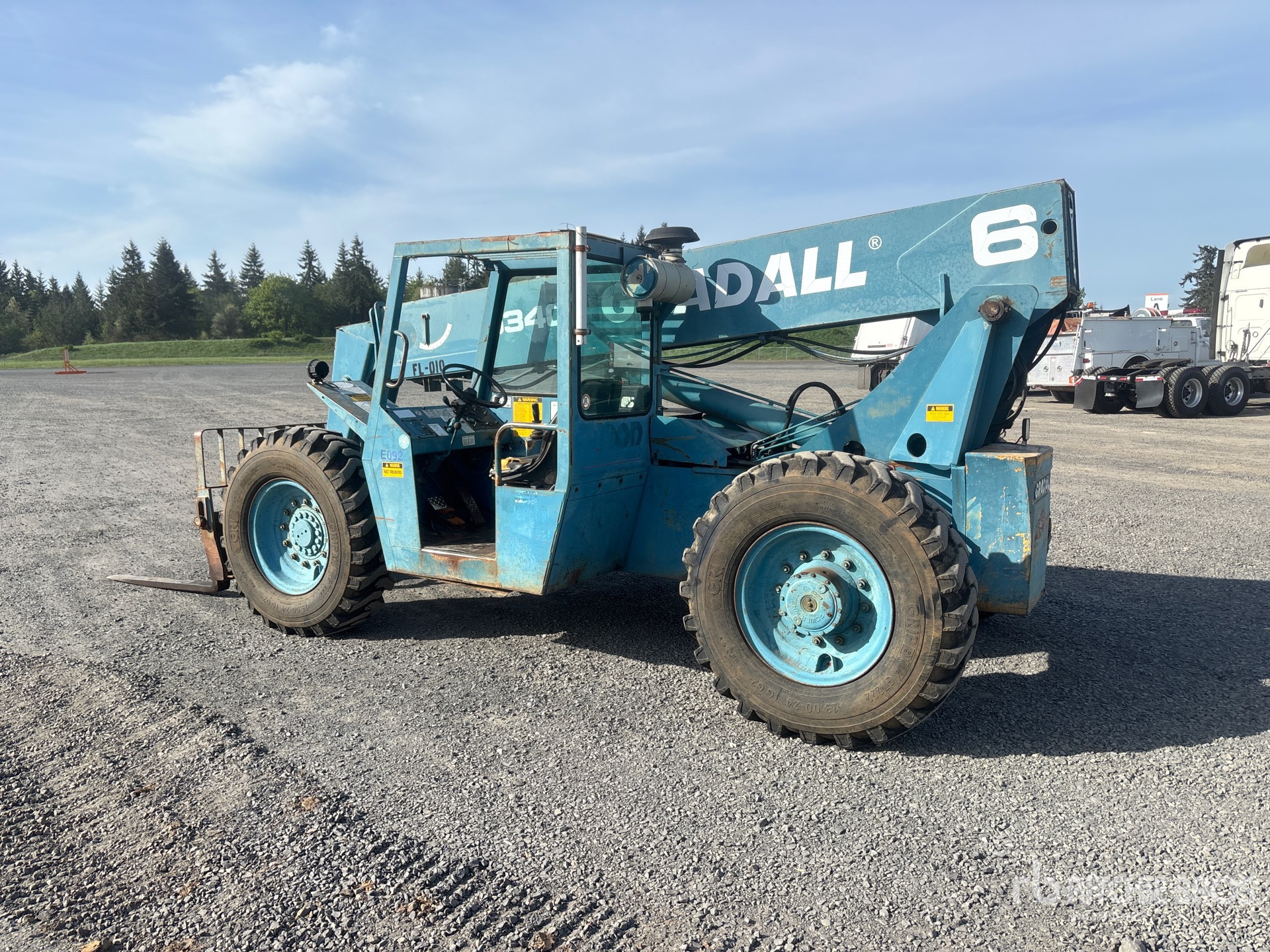 Maten worden slechts bij benadering gegeven. De werkelijke afmetingen onder belasting kunnen variëren afhankelijk van de hoogte van de vrachtwagen/aanhanger en de configuratie/positie van de geladen machine. Het is de verantwoordelijkheid van de koper om alle ladingen te meten voordat deze onze veilinglocatie verlaten, om te garanderen dat de lading veilig is voor transport. Alle maten moeten door de koper worden gecontroleerd. Vertrouw niet op deze maten voor transportdoeleinden.