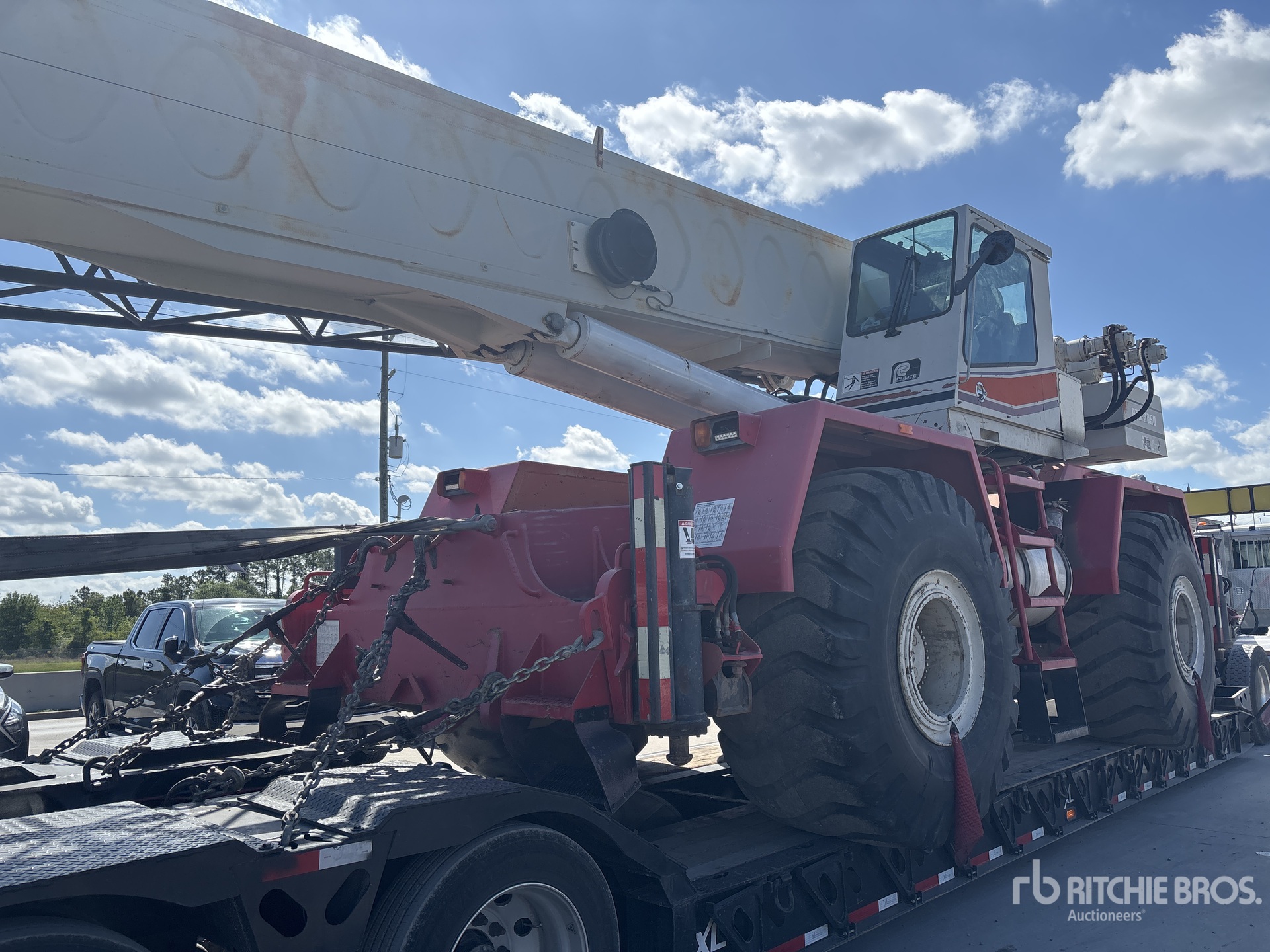 Maten worden slechts bij benadering gegeven. De werkelijke afmetingen onder belasting kunnen variëren afhankelijk van de hoogte van de vrachtwagen/aanhanger en de configuratie/positie van de geladen machine. Het is de verantwoordelijkheid van de koper om alle ladingen te meten voordat deze onze veilinglocatie verlaten, om te garanderen dat de lading veilig is voor transport. Alle maten moeten door de koper worden gecontroleerd. Vertrouw niet op deze maten voor transportdoeleinden.