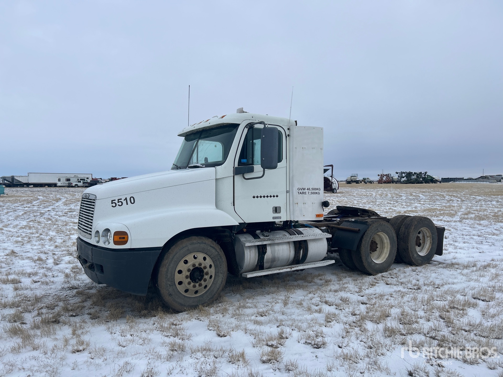 Detroit Series 60 470 hp Engine, US EPA Label, 19373 Engine hrs, Eaton Fuller 18-Speed Manual Transmission, 12000 lb Front Axle, 40000 lb Rears, Engine Brake, Double Differential Locks, 175 in Wheelbase, Air Suspension, Aluminum Front Wheels, 11R22.5, Air Sliding 5th Wheel, Dual Fuel Tanks