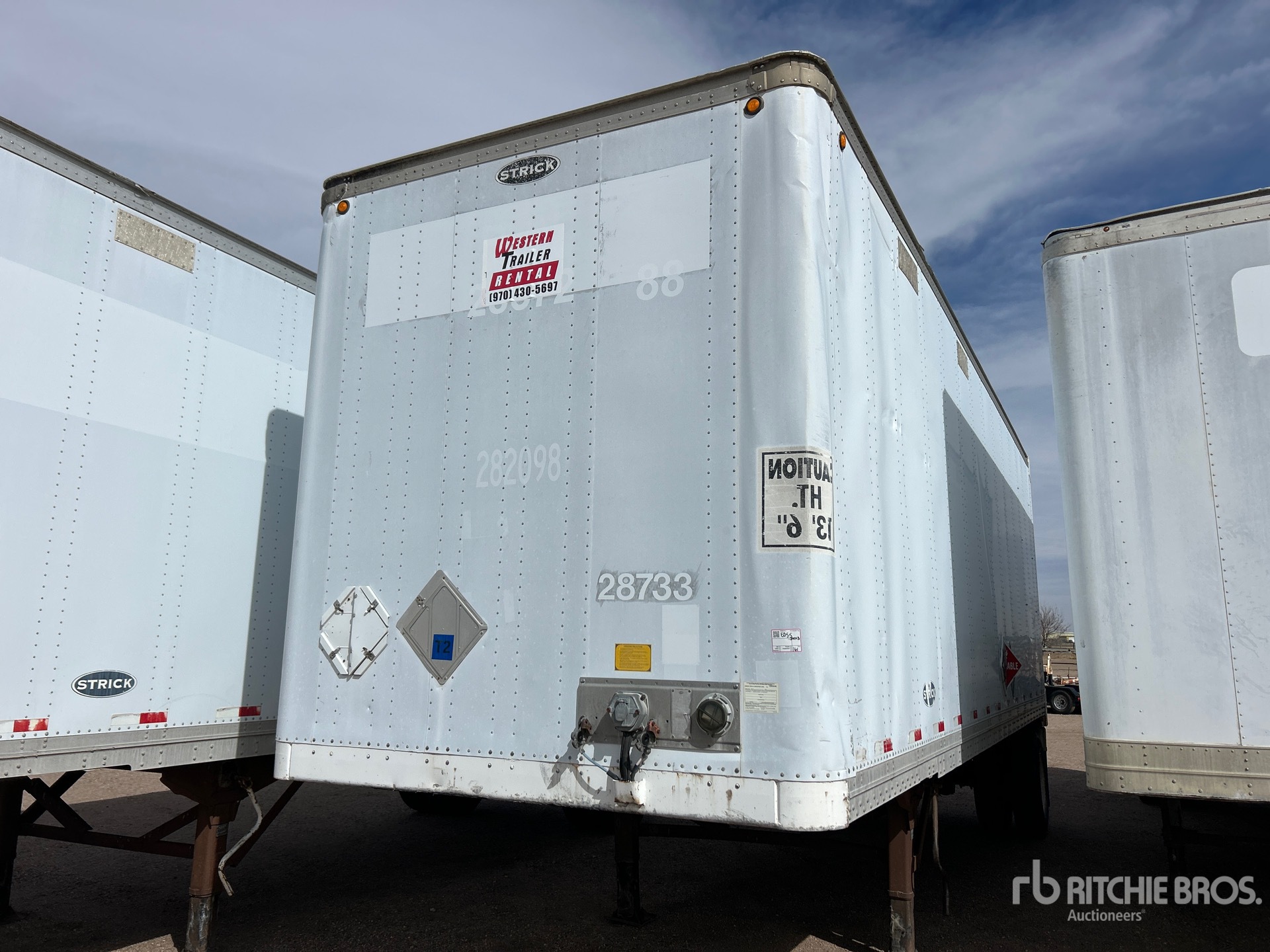 Maten worden slechts bij benadering gegeven. De werkelijke afmetingen onder belasting kunnen variëren afhankelijk van de hoogte van de vrachtwagen/aanhanger en de configuratie/positie van de geladen machine. Het is de verantwoordelijkheid van de koper om alle ladingen te meten voordat deze onze veilinglocatie verlaten, om te garanderen dat de lading veilig is voor transport. Alle maten moeten door de koper worden gecontroleerd. Vertrouw niet op deze maten voor transportdoeleinden.