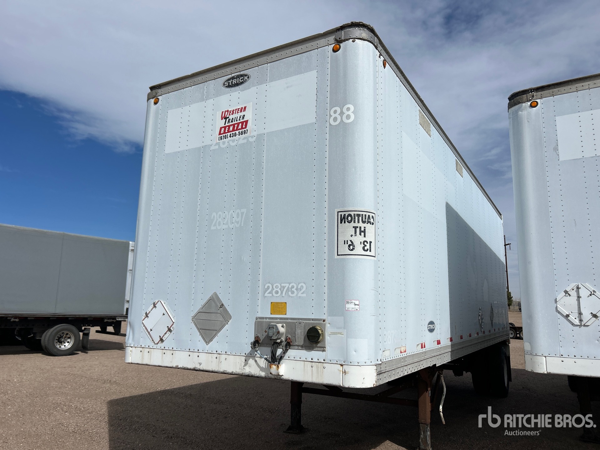 Maten worden slechts bij benadering gegeven. De werkelijke afmetingen onder belasting kunnen variëren afhankelijk van de hoogte van de vrachtwagen/aanhanger en de configuratie/positie van de geladen machine. Het is de verantwoordelijkheid van de koper om alle ladingen te meten voordat deze onze veilinglocatie verlaten, om te garanderen dat de lading veilig is voor transport. Alle maten moeten door de koper worden gecontroleerd. Vertrouw niet op deze maten voor transportdoeleinden.