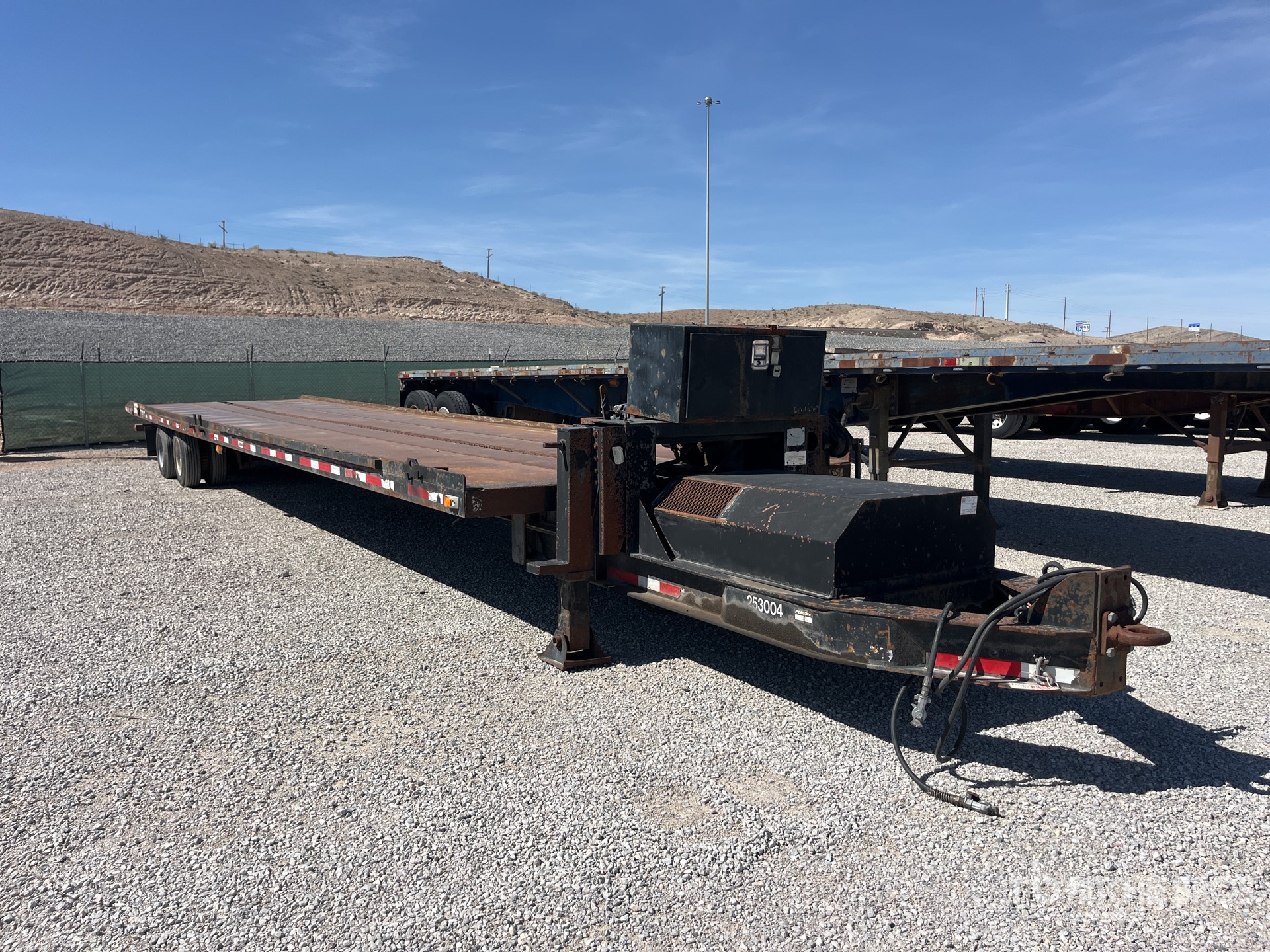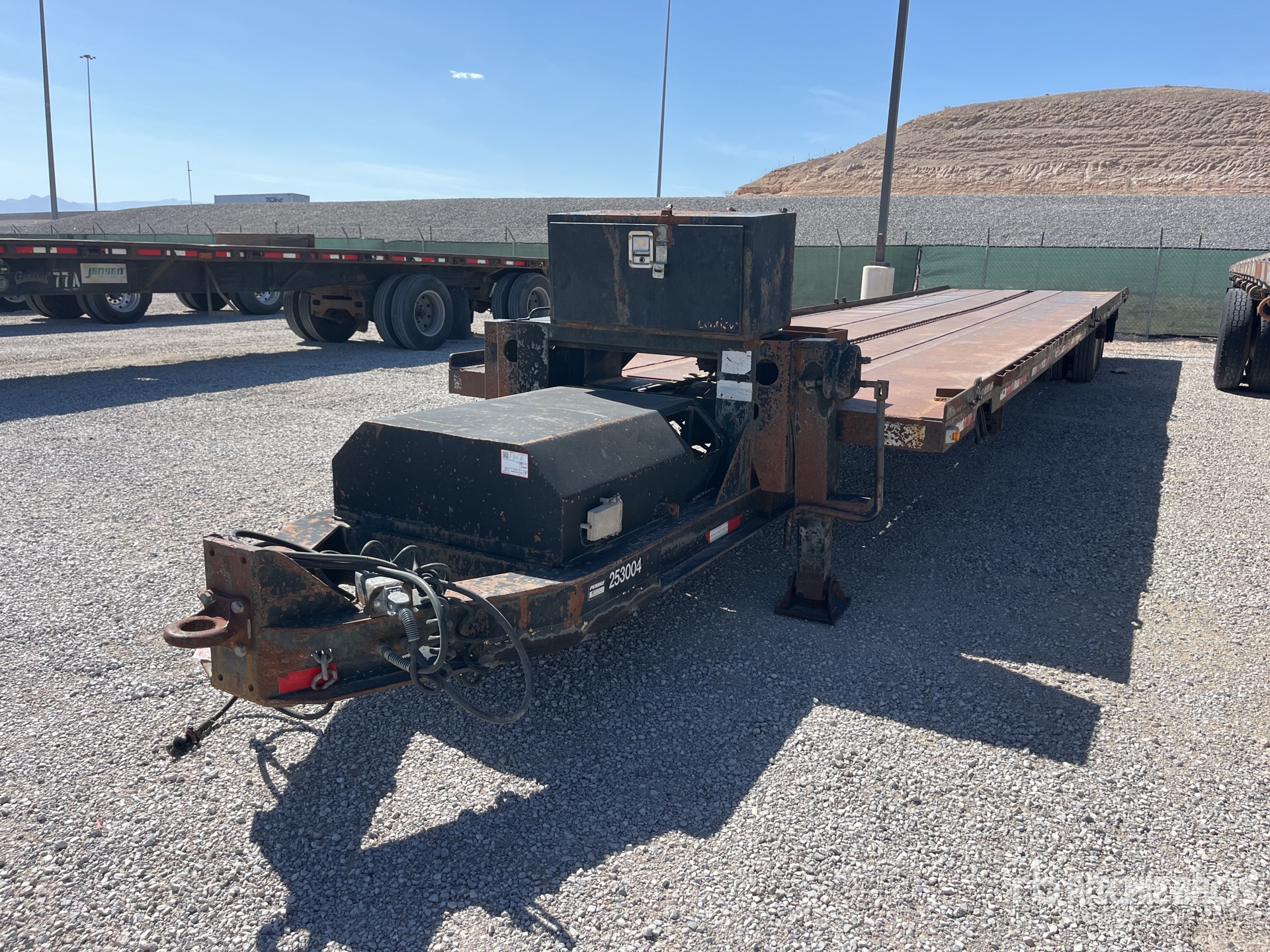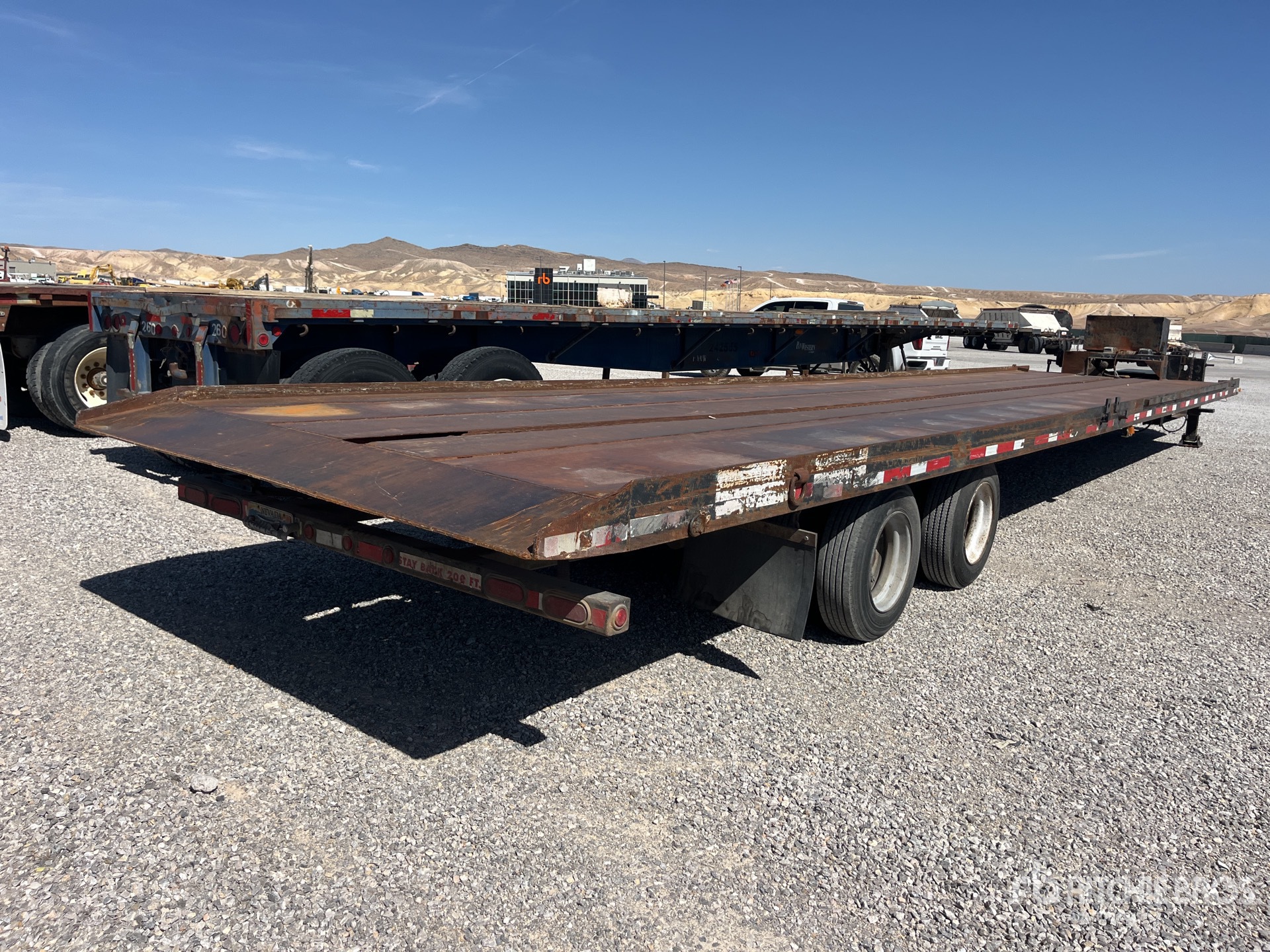 Maten worden slechts bij benadering gegeven. De werkelijke afmetingen onder belasting kunnen variëren afhankelijk van de hoogte van de vrachtwagen/aanhanger en de configuratie/positie van de geladen machine. Het is de verantwoordelijkheid van de koper om alle ladingen te meten voordat deze onze veilinglocatie verlaten, om te garanderen dat de lading veilig is voor transport. Alle maten moeten door de koper worden gecontroleerd. Vertrouw niet op deze maten voor transportdoeleinden.