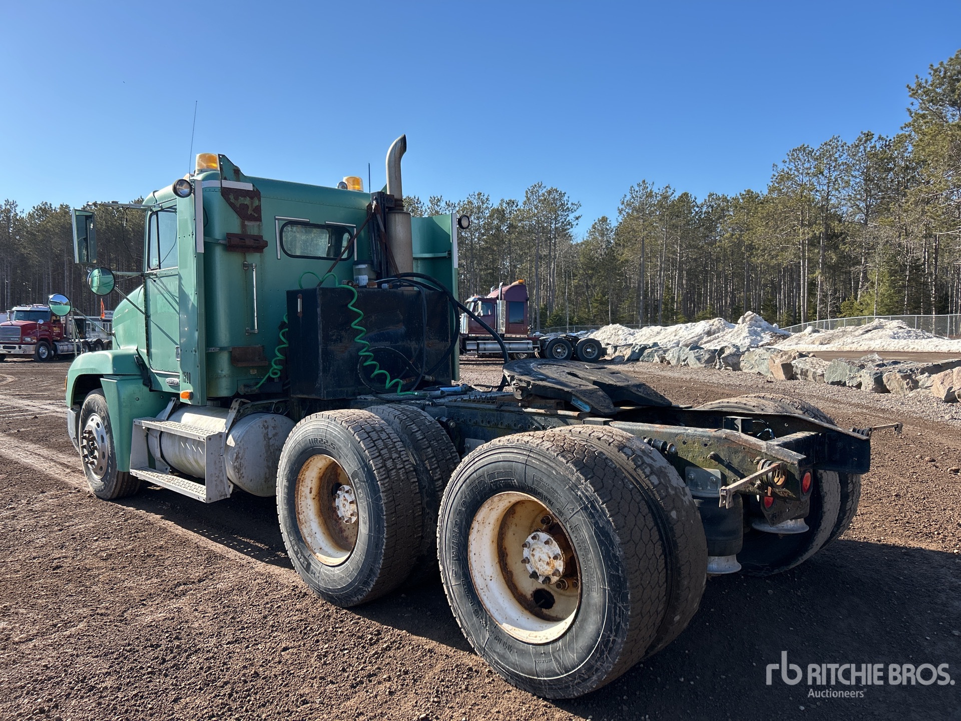 Detroit Series 60 470 hp Engine, 2000 US EPA Label, Eaton Fuller RTLO-13610B-T2 10-Speed Manual Transmission, 12000 lb Front Axle, 40000 lb Rears, 52000 lb GVWR, Engine Brake, 176 in Wheelbase, Air Suspension, Aluminum Front Wheels, 11R22.5, Wet Kit, Air Sliding 5th Wheel, Auto Lube, Dual Fuel Tanks