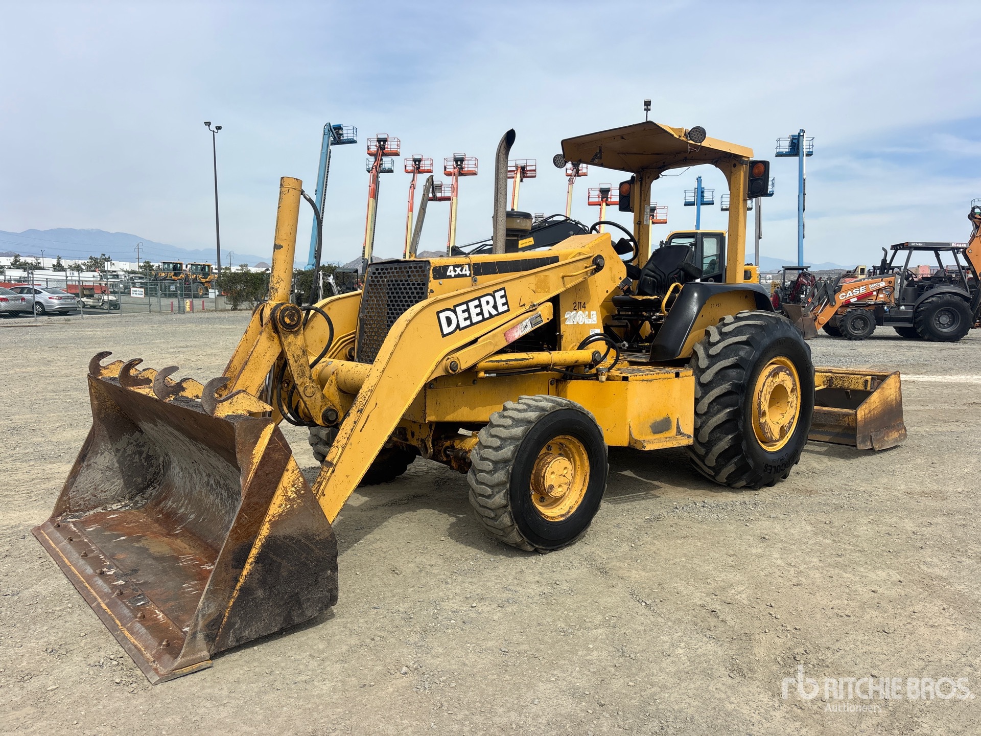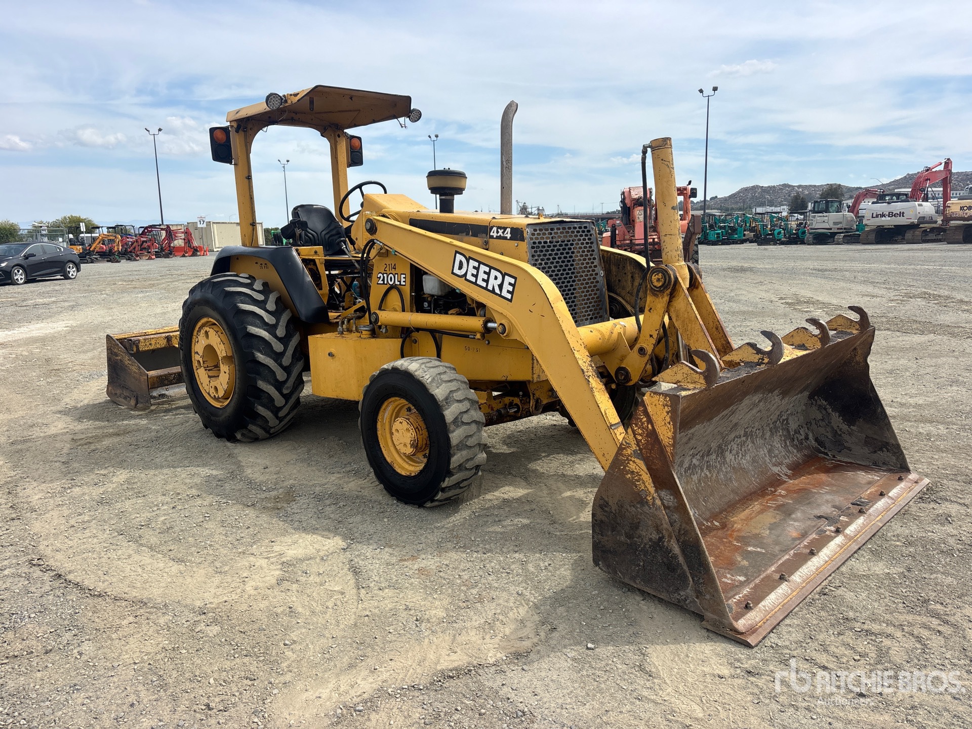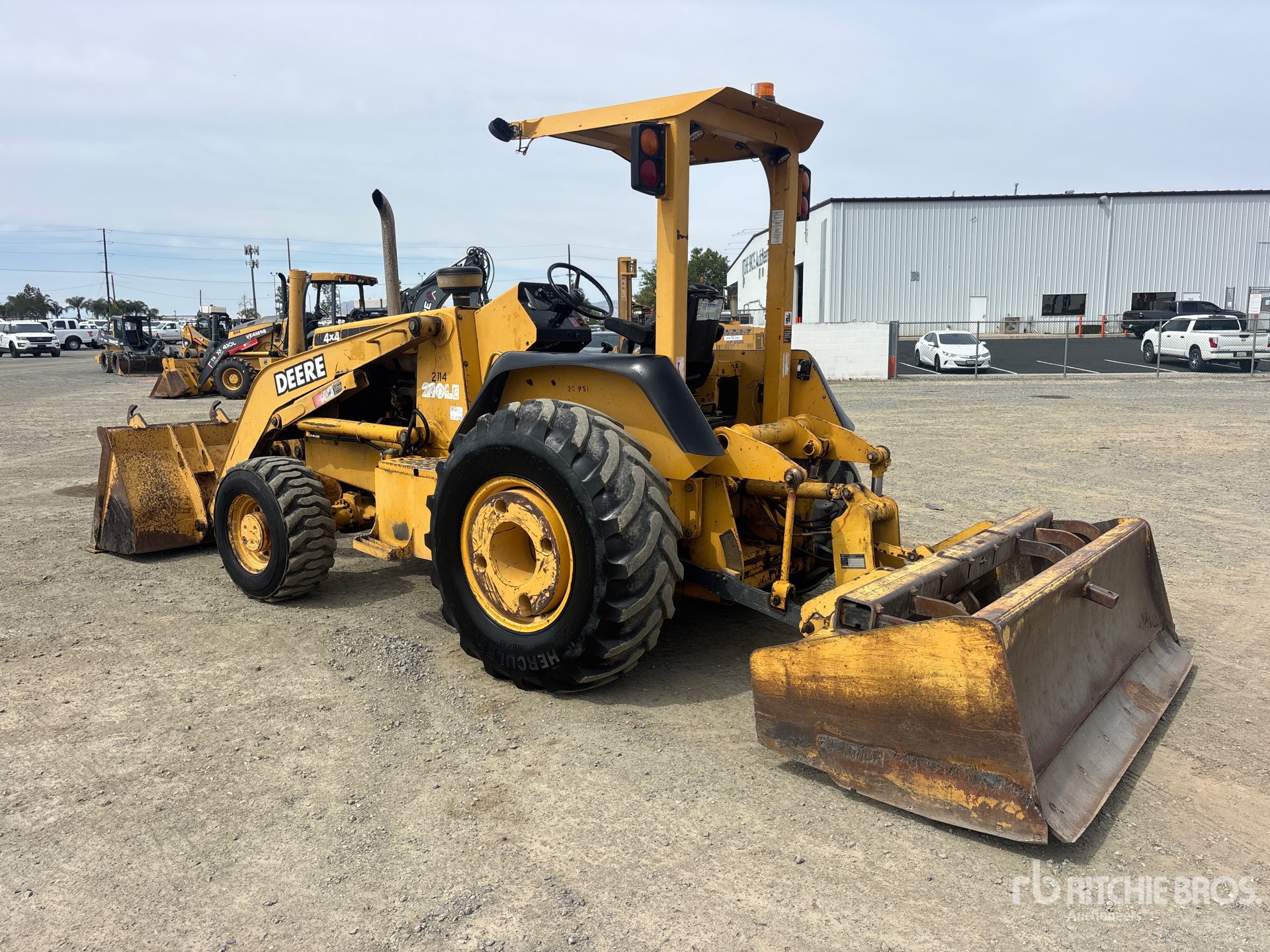 Open Operator Station, 2000 US EPA Label, Manual Quick Coupler, Bucket, 84 in Hydraulic Tilting Box Blade w/ Hydraulic Scarifier, Rear Wheel Weights