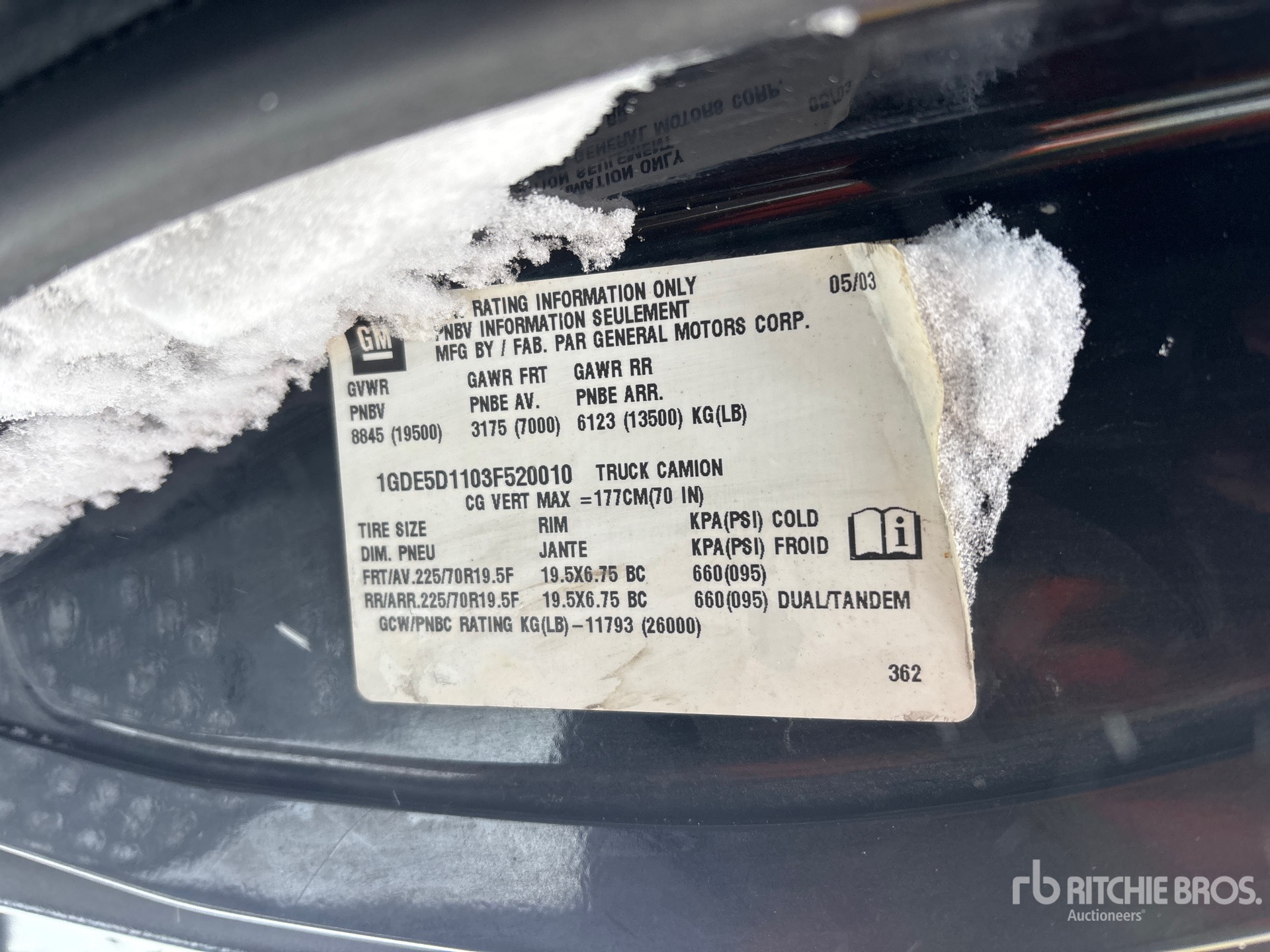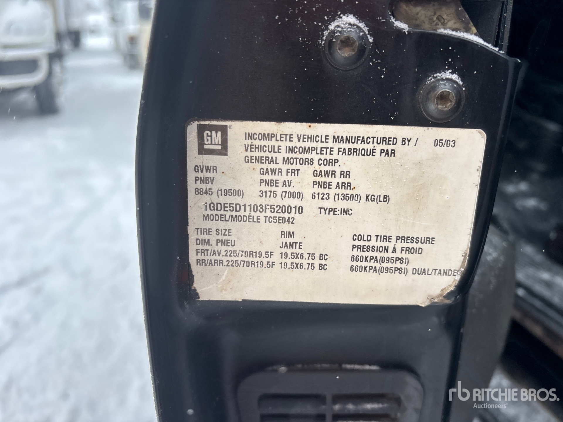 GM Diesel Engine, Automatic Transmission, 7000 lb Front Axle, 13500 lb Rears, 19500 lb GVWR, Aluminum Wheels, 225/70R19.5, Spring Suspension, 230 in Wheelbase, PTO, 12 ft Hoist
