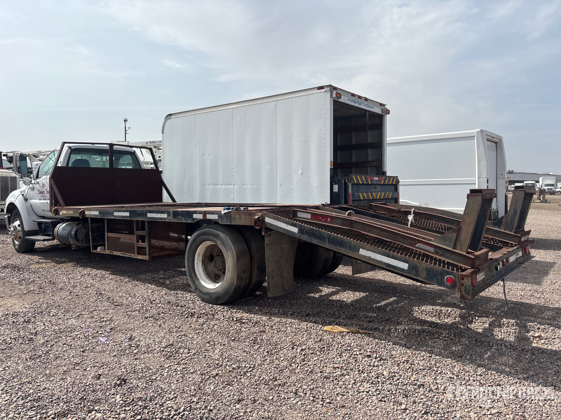 Cat 6 Cylinder 7.2 L Diesel Engine, Automated Transmission, 10000 lb Front Axle, 21000 lb Rears, 31000 lb GVWR, 11R22.5, Air Ride Suspension, 250 in Wheelbase, 25 ft x 96 in Bed, Dovetail, Hydraulic Ramps