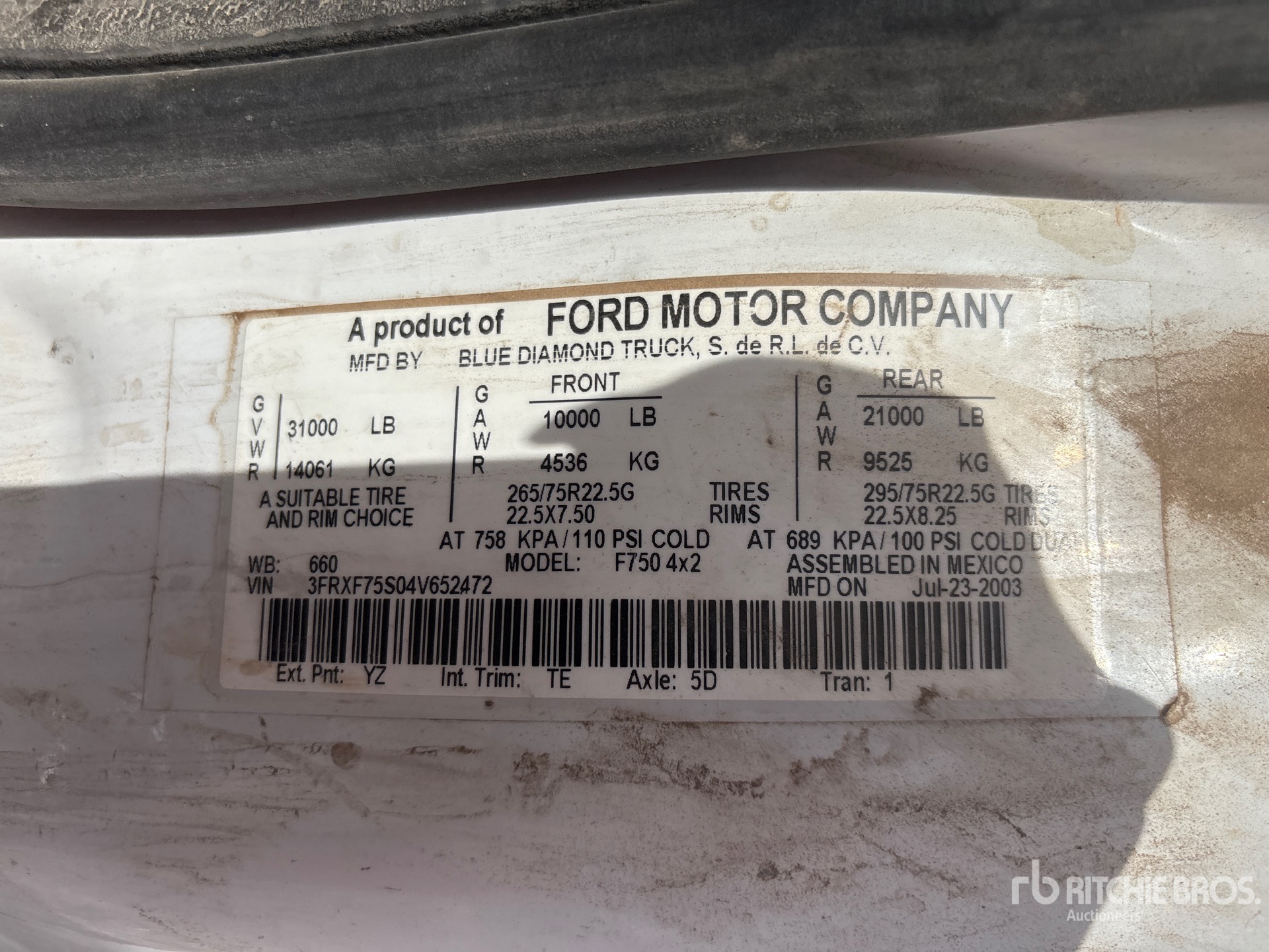 De gedetailleerde informatie over het materieel is beperkt, en Ritchie Bros. Auctioneers heeft geen andere aspecten of onderdelen van het materieel geïnspecteerd dan uitdrukkelijk in dit document vermeld. Tenzij uitdrukkelijk vermeld, geven wij geen verklaringen of garanties, expliciet of impliciet, met betrekking tot het materieel of de onderdelen ervan, met inbegrip van, maar niet beperkt tot, verklaringen of garanties met betrekking tot functionaliteit, conformiteit of naleving van veiligheidsnormen of -vereisten van een toepasselijke autoriteit of regelgevende instantie, geschiktheid voor een bepaald doel of verkoopbaarheid. U wordt ten zeerste aangeraden uw eigen gedetailleerde inspectie van het materieel uit te voeren voordat u een bod plaatst.