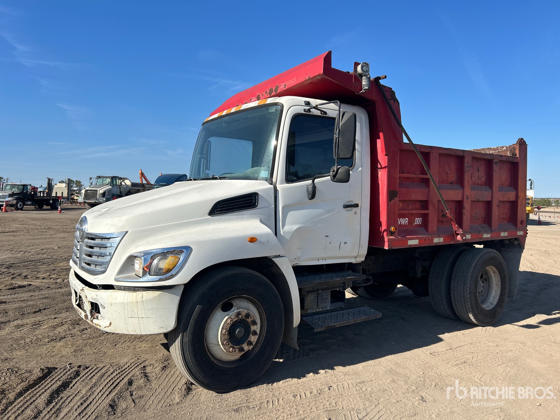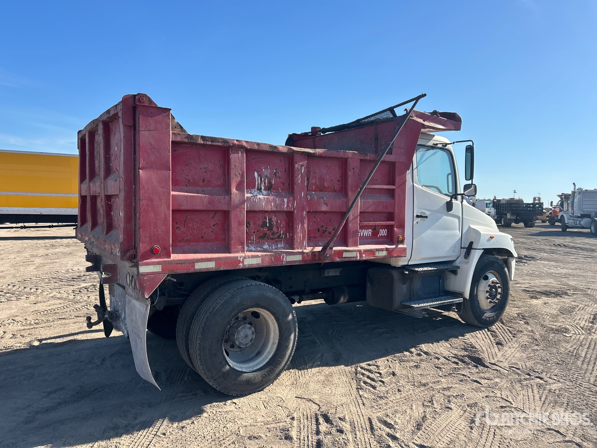 Located in Lane 59 Spot 18, Hino J08E-TB 6 Cylinder 7.7 L Diesel 260 hp Engine, 2004 US EPA Label, Manual Transmission, 11R22.5, Spring Suspension, 150 in Wheelbase, PTO, 10 ft Long x 3 ft 6 in High Steel Body, Electric Roll Tarp