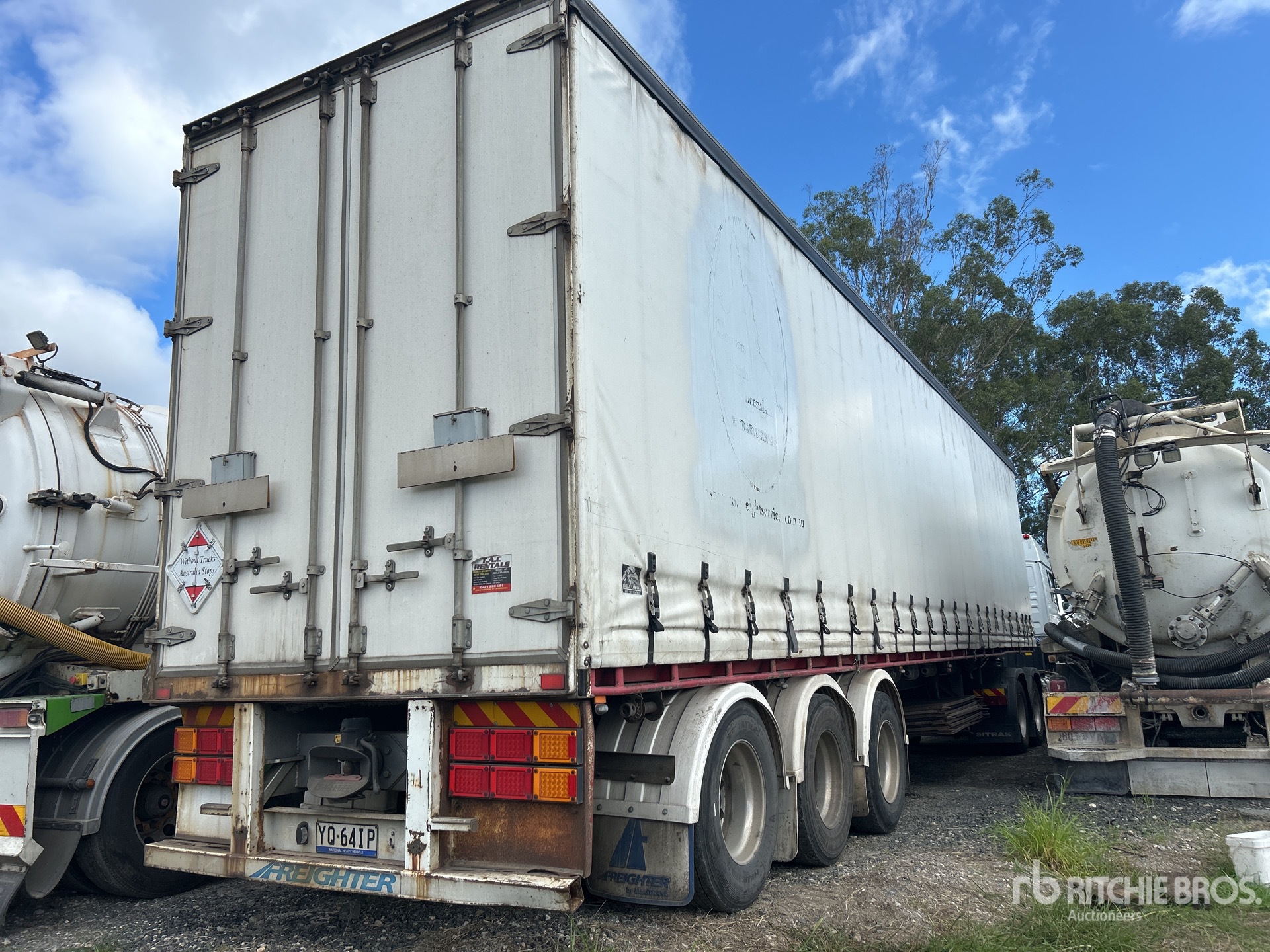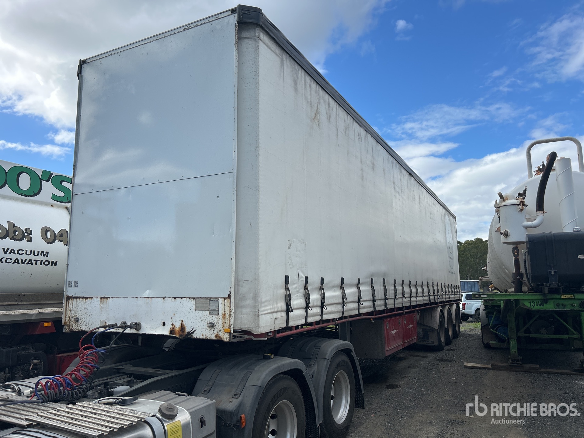 Maten worden slechts bij benadering gegeven. De werkelijke afmetingen onder belasting kunnen variëren afhankelijk van de hoogte van de vrachtwagen/aanhanger en de configuratie/positie van de geladen machine. Het is de verantwoordelijkheid van de koper om alle ladingen te meten voordat deze onze veilinglocatie verlaten, om te garanderen dat de lading veilig is voor transport. Alle maten moeten door de koper worden gecontroleerd. Vertrouw niet op deze maten voor transportdoeleinden.