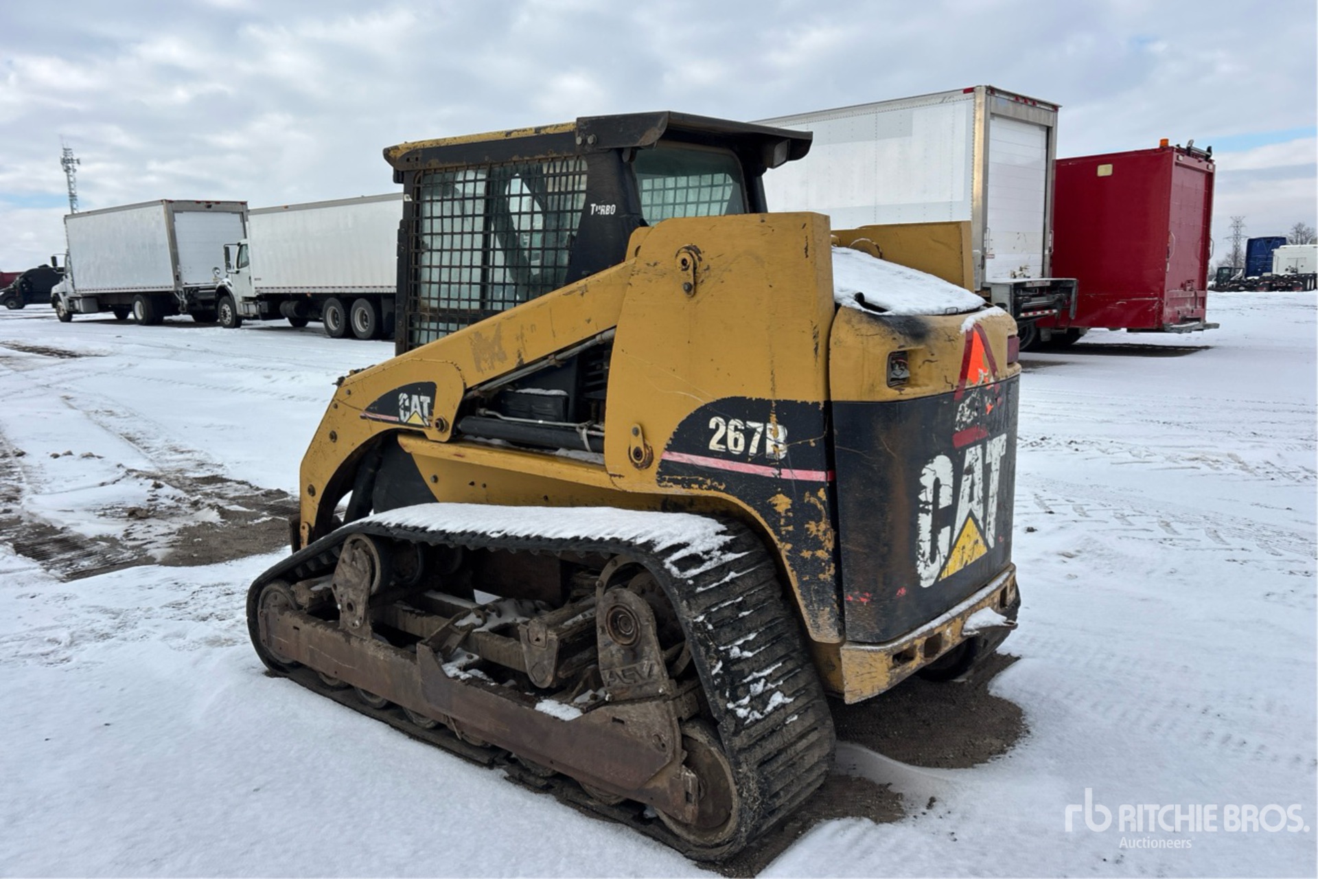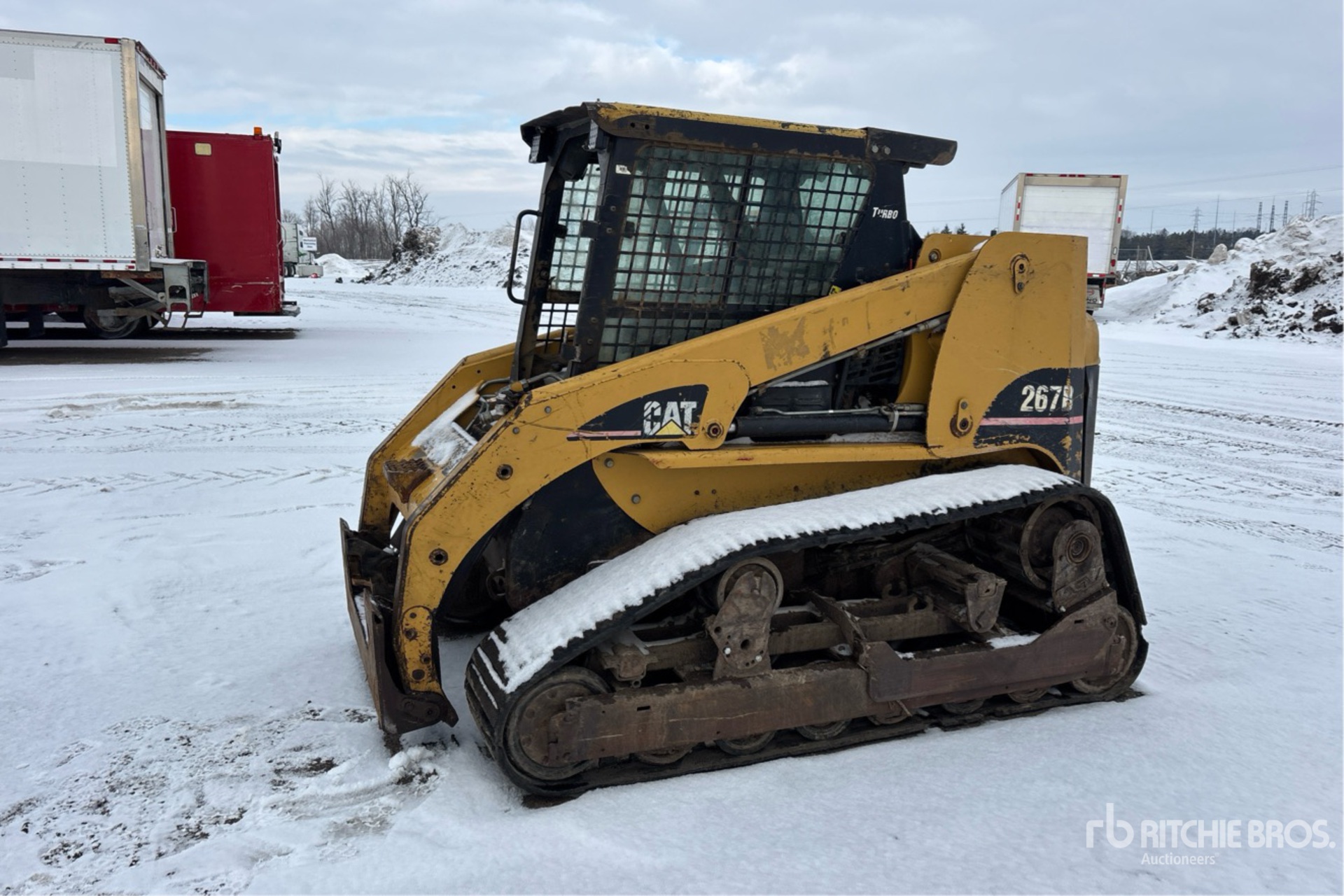 Enclosed Cab (Door missing), Joystick Steering, 17.5 in Track Belts, 14 Pin Electric Kit, Manual Coupler
