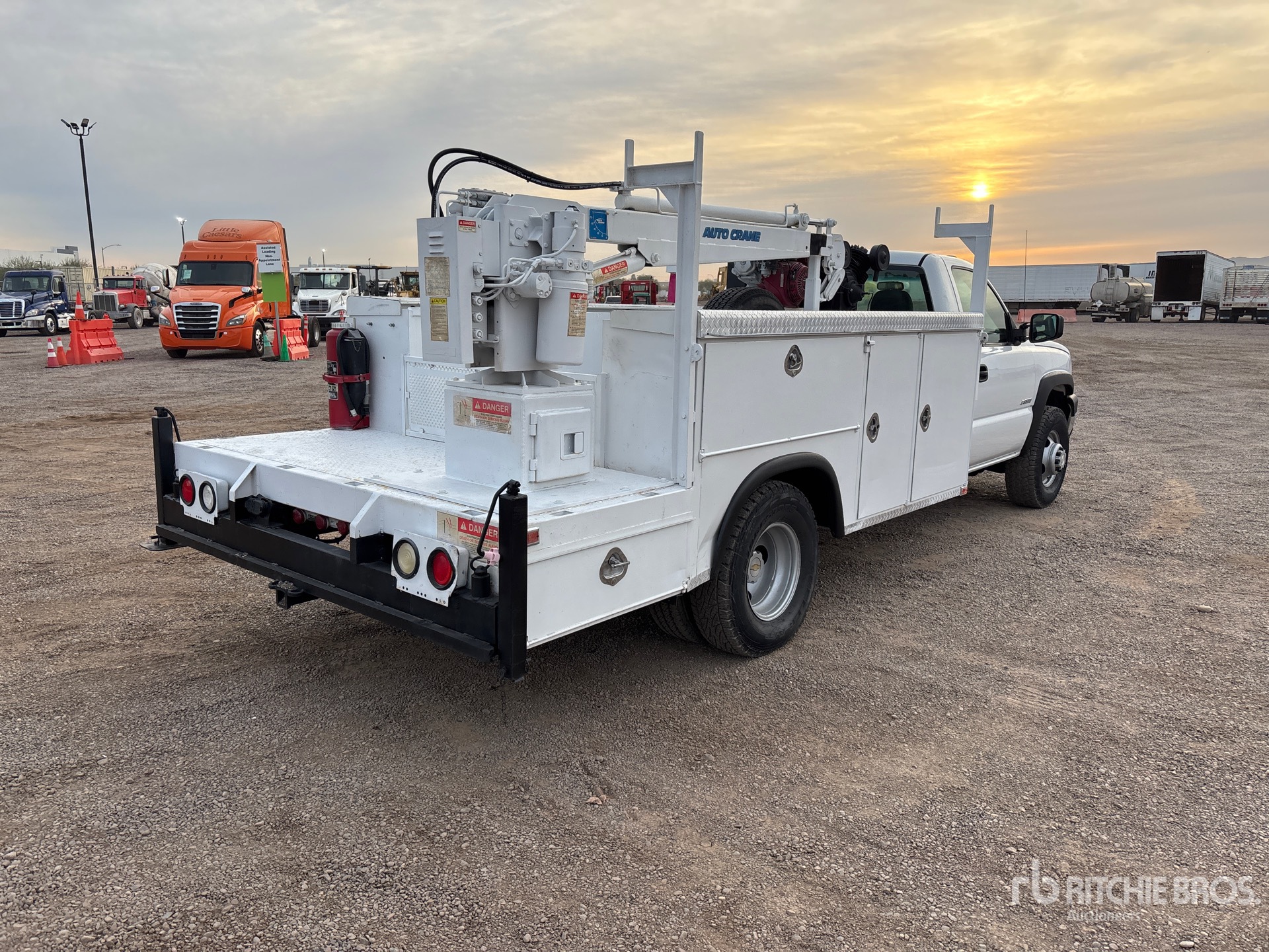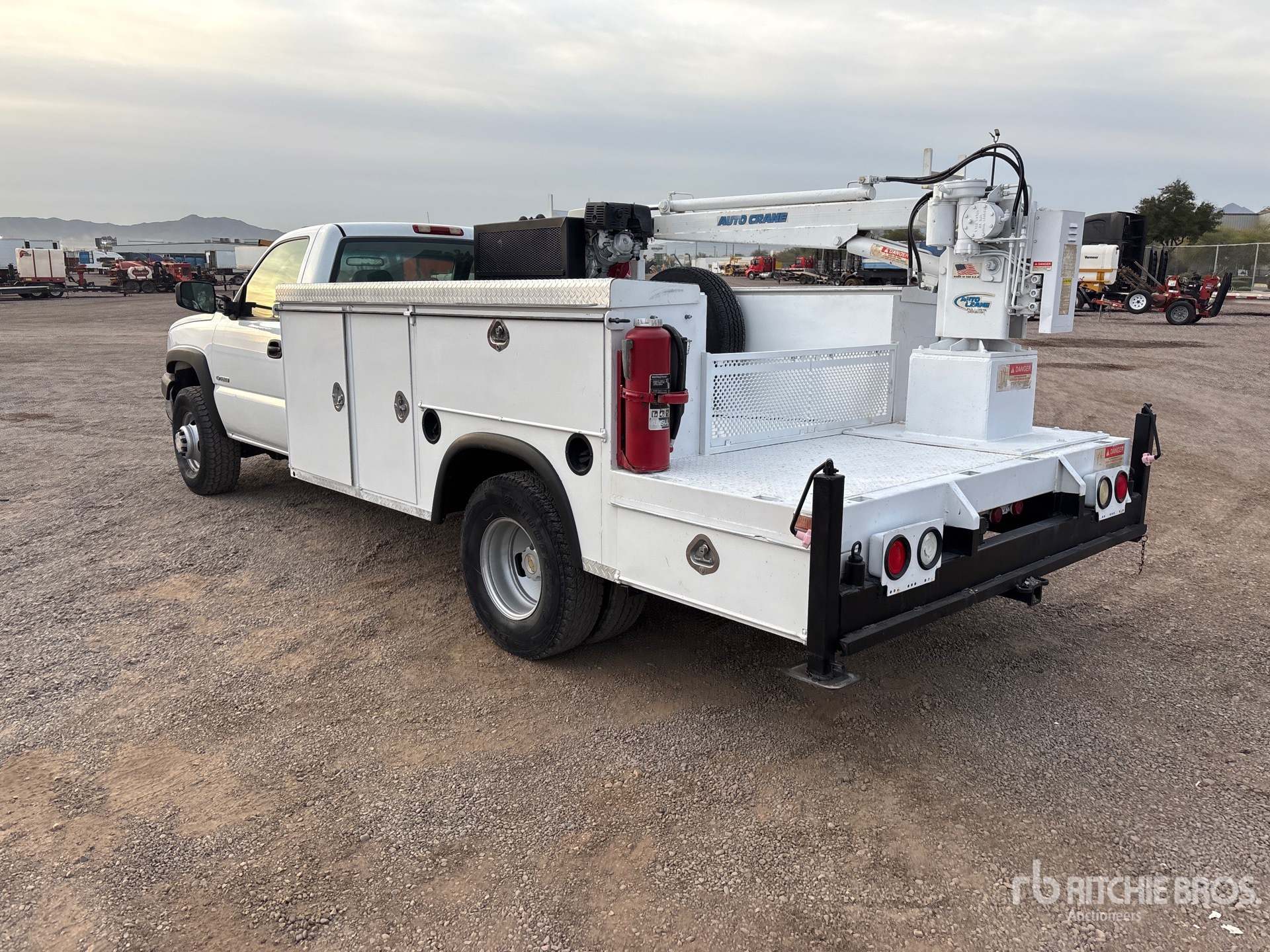 V8 6 L Gasoline Engine, Automatic Transmission, 4670 lb Front Axle, 8550 lb Rears, 13800 lb GVWR, 2657516, 162 in Wheelbase, 12 ft Body, Manual Stabilizers, Auto Crane 3200 lb 1 Section Hydraulic Crane, Eaton Gasoline Air Compressor
