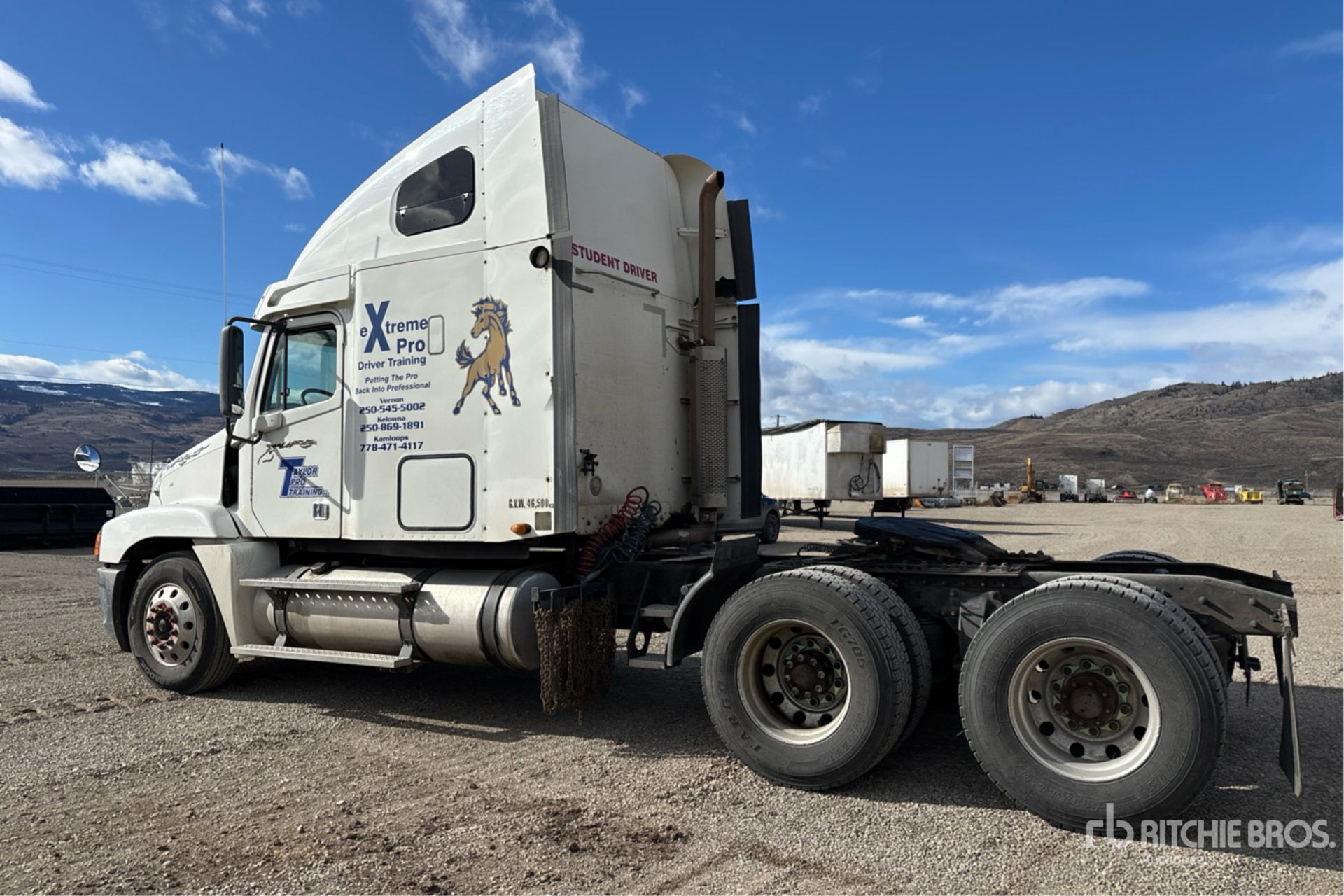 Detroit Series 60 455 hp Engine, Eaton Fuller 18-Speed Manual Transmission, 12000 lb Front Axle, 40000 lb Rears, Engine Brake, 48 in Mid Roof Sleeper Cab, Bunk Beds, 219 in Wheelbase, Air Suspension, Aluminum Wheels, 11R22.5, Air Sliding 5th Wheel, Dual Fuel Tanks