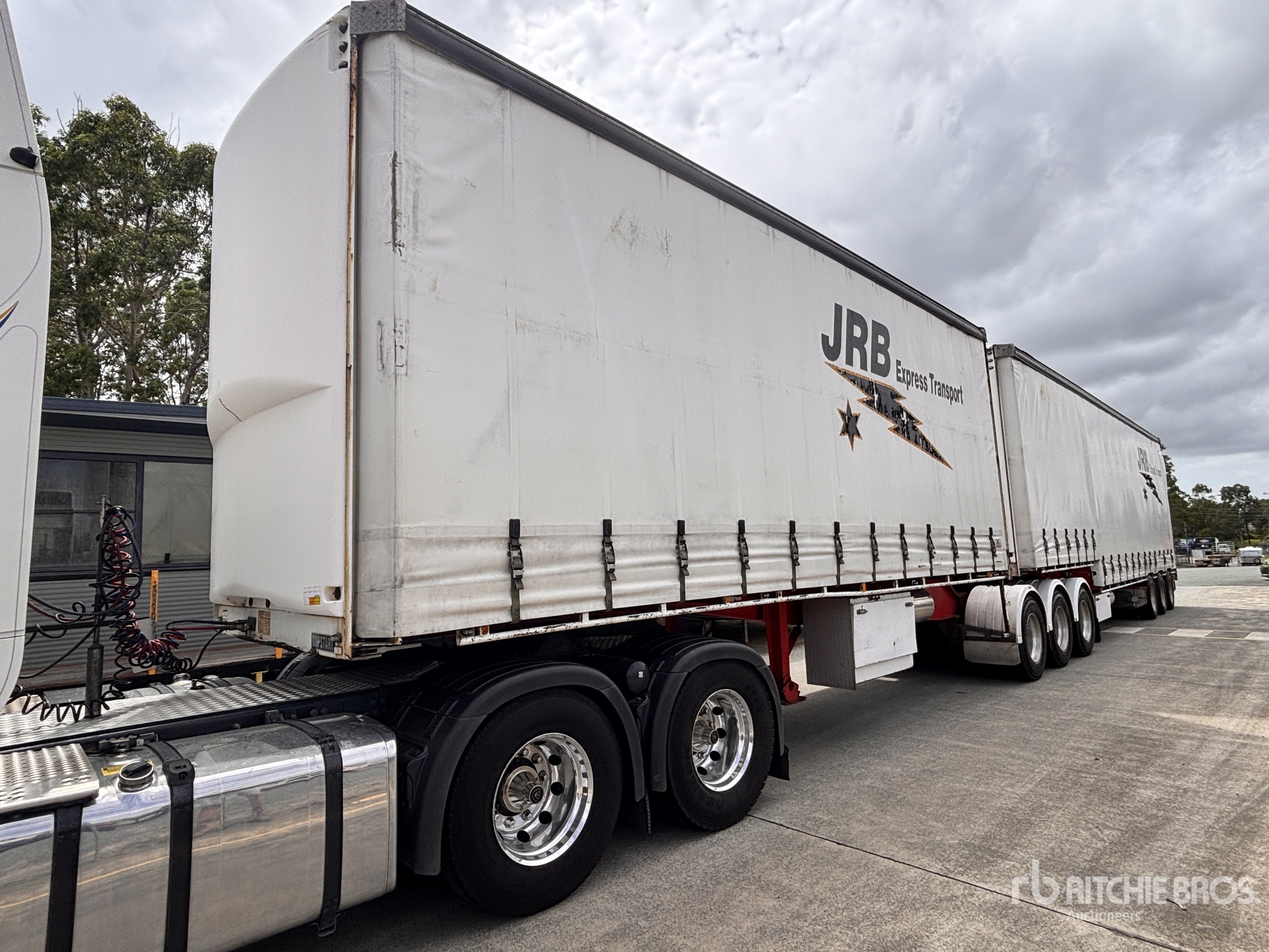 Maten worden slechts bij benadering gegeven. De werkelijke afmetingen onder belasting kunnen variëren afhankelijk van de hoogte van de vrachtwagen/aanhanger en de configuratie/positie van de geladen machine. Het is de verantwoordelijkheid van de koper om alle ladingen te meten voordat deze onze veilinglocatie verlaten, om te garanderen dat de lading veilig is voor transport. Alle maten moeten door de koper worden gecontroleerd. Vertrouw niet op deze maten voor transportdoeleinden.