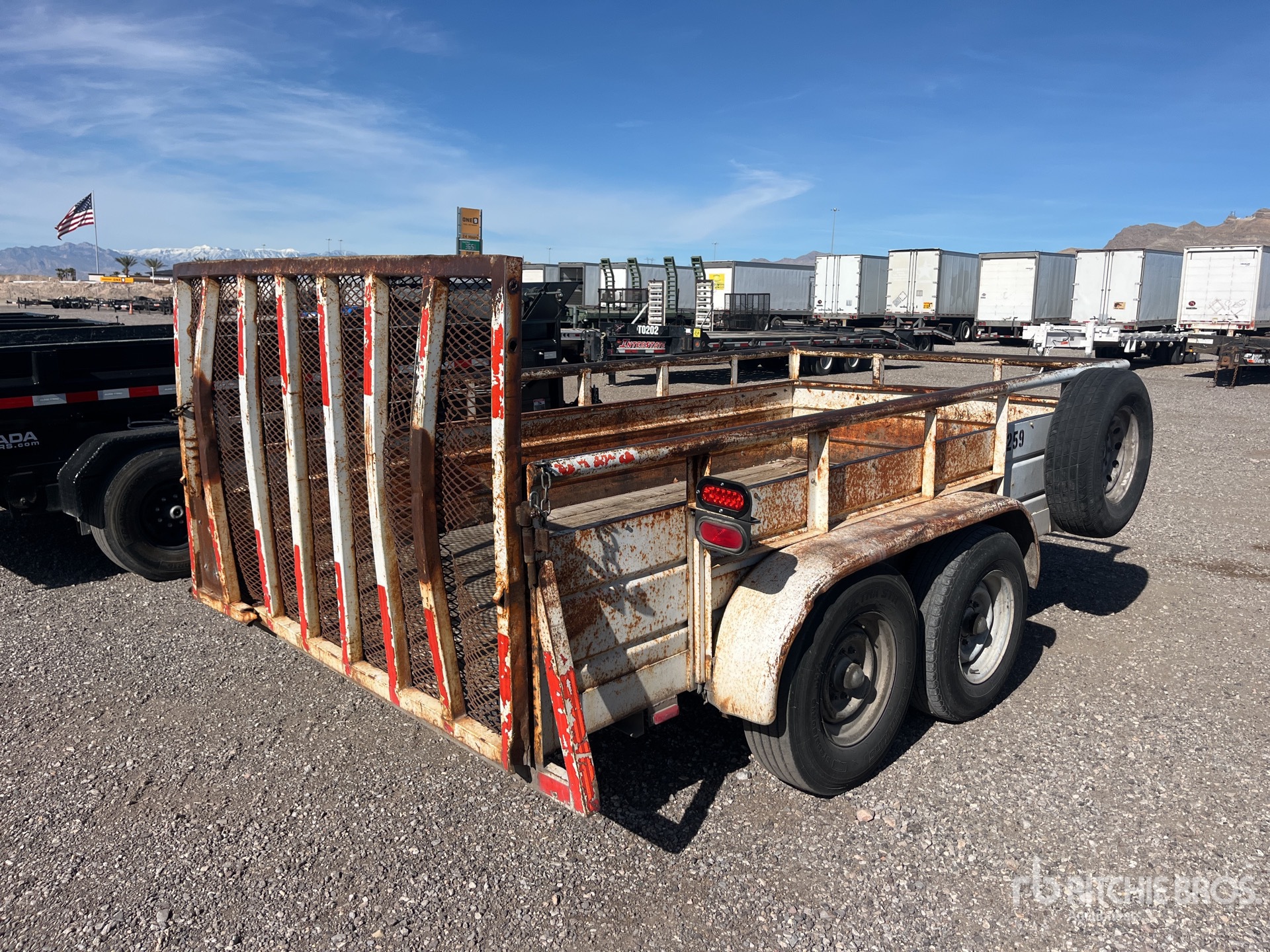 Maten worden slechts bij benadering gegeven. De werkelijke afmetingen onder belasting kunnen variëren afhankelijk van de hoogte van de vrachtwagen/aanhanger en de configuratie/positie van de geladen machine. Het is de verantwoordelijkheid van de koper om alle ladingen te meten voordat deze onze veilinglocatie verlaten, om te garanderen dat de lading veilig is voor transport. Alle maten moeten door de koper worden gecontroleerd. Vertrouw niet op deze maten voor transportdoeleinden.