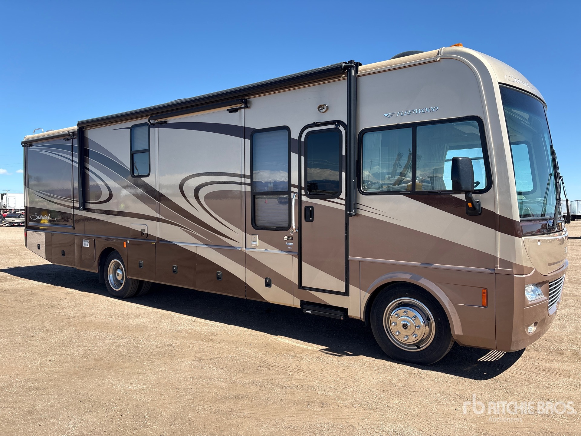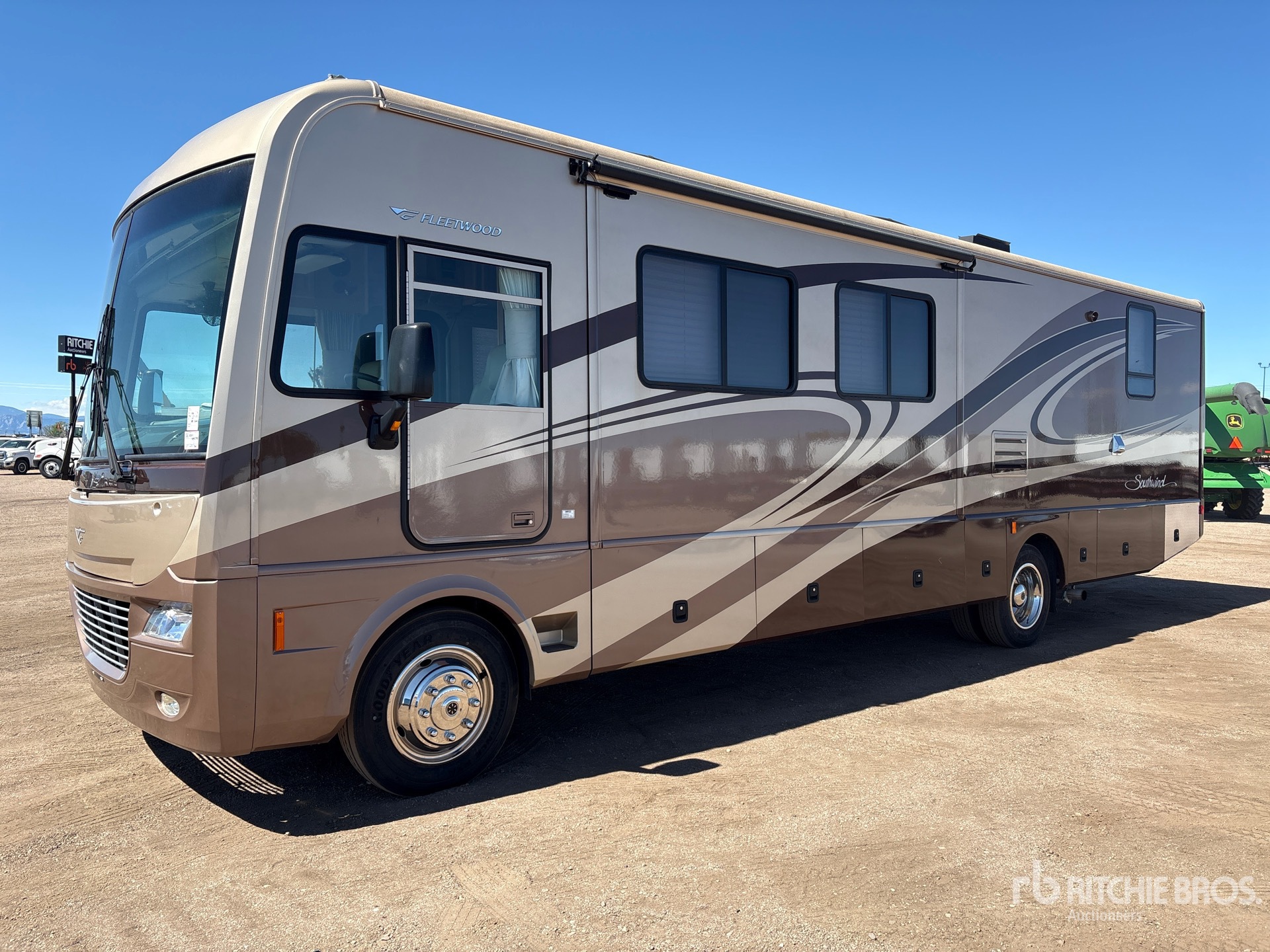 Air Conditioner, Ford 5 Speed Automatic Transmission, Triton V8 8.1 L Gasoline 362 hp Engine, Sleeps 6 People, 22000 lb GVWR, 3 Slide Outs, Power Entrance Step, Power Leveling Jacks, Power Awning, Roof Mounted Satellite Receiver, Onan 5.5 HGJAB – 1038D 5.5 kW Generator