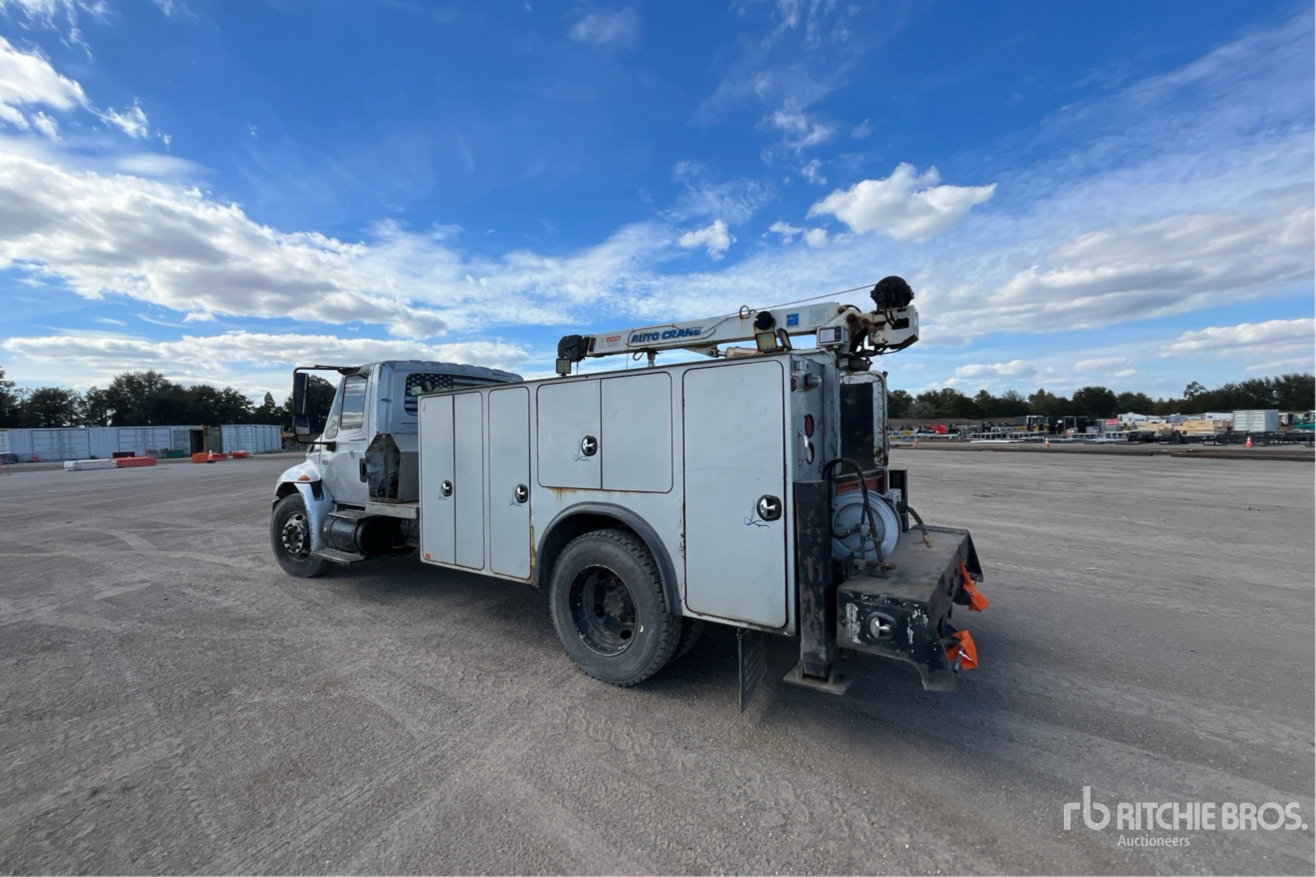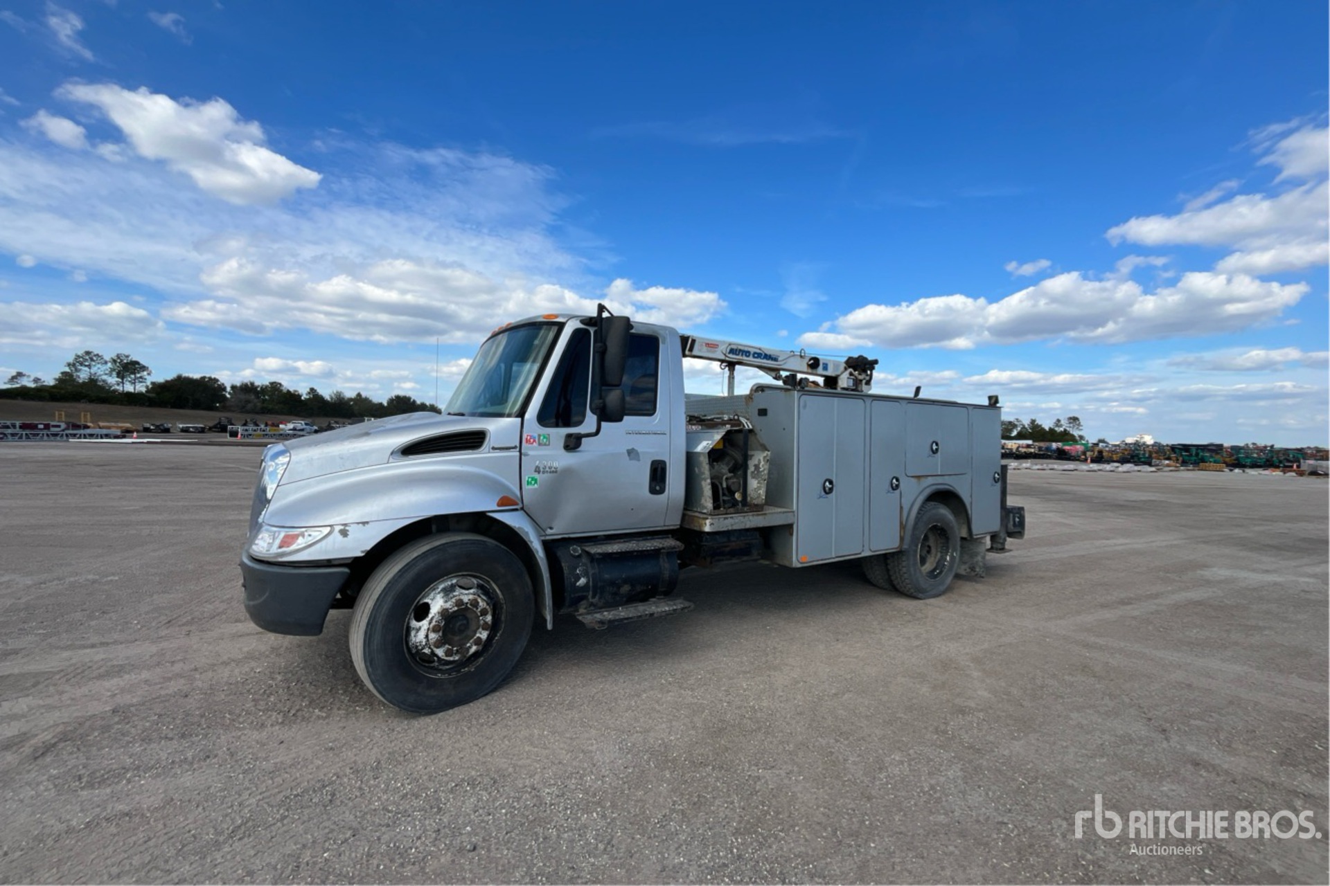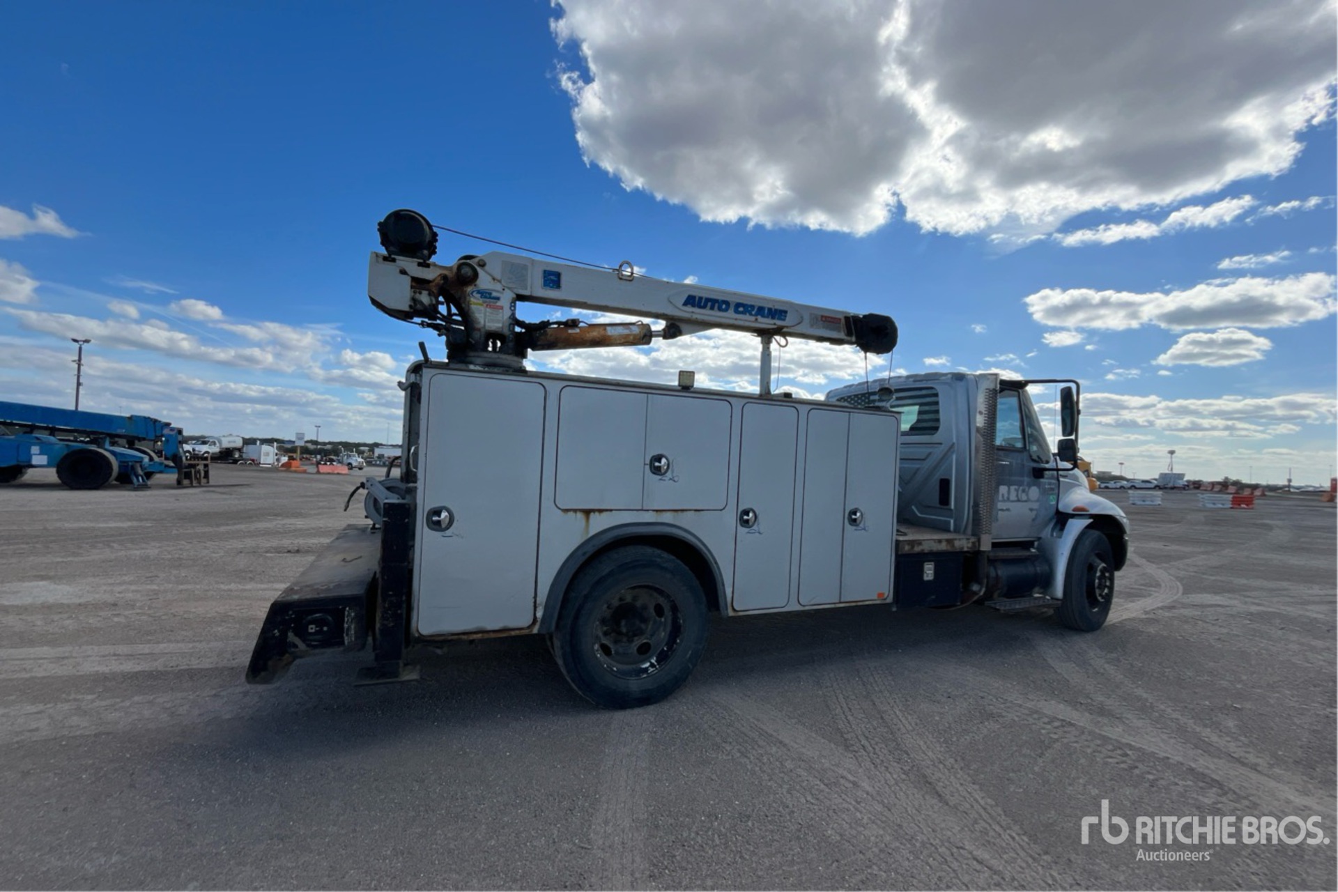 International 6 Cylinder Diesel Engine, 18578 Engine hrs, Engine Brake, Eaton Fuller Manual Transmission, 295/75R22.5 Front Tires, 10R22.5 Rear Tires, Spring Suspension, 188 in Wheelbase, PTO, 11 ft Body, Hydraulic Stabilizers, Auto Crane 8406H 8400 lb 3 Section Hydraulic Crane, Hydraulic Air Compressor, Air Hose Reel