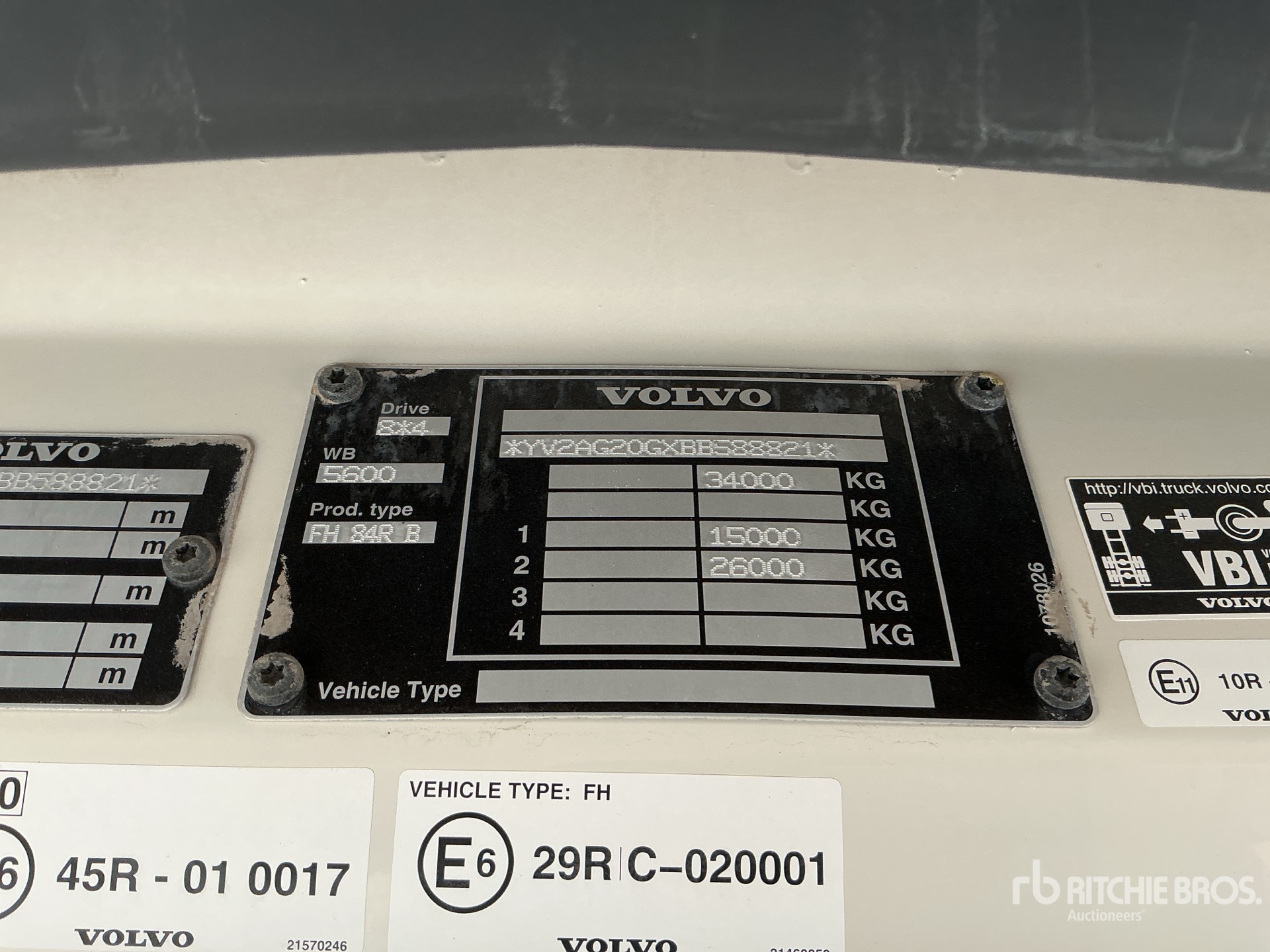 VOLVO 6 Cylinder Diesel Engine, Requires AdBlue, Exhaust Brake, Manual Transmission, Double Differential Locks, Air Ride Cab, 13R22.5 Front Tires, 13R22.5 Rear Tires, Spring Suspension, PTO, 5900 mm Cab to Axle, 6800 mm Cab to End of Frame, Ringfeder