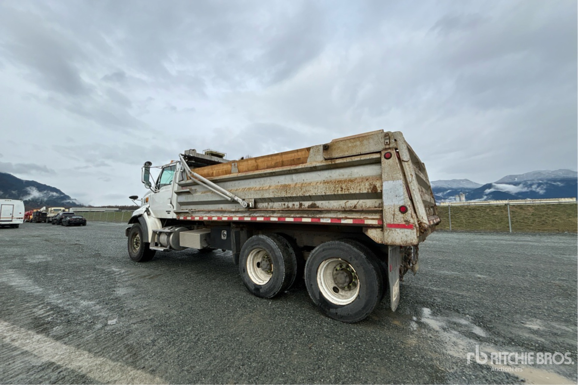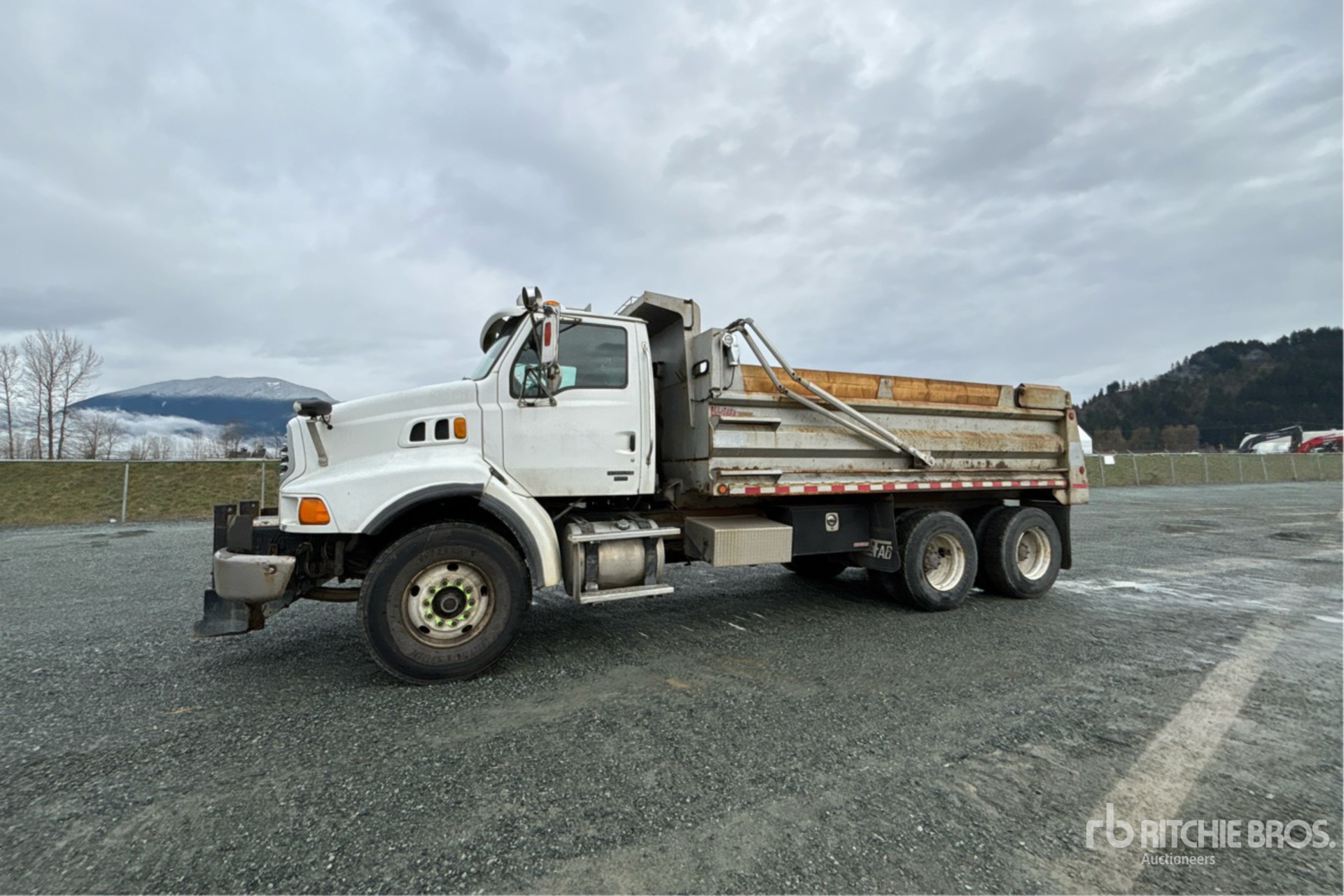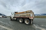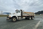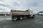 Mercedes-Benz OM460LA 6 Cylinder 781 cid Diesel 450 hp Engine, 2005 US EPA Label, CARB Compliant, Eaton Fuller 15-Speed Manual Transmission, 9072 kg Front Axle, 20864 kg Rears, 29937 kg GVWR, 425/65R22.5 Front Tires, 11R22.5 Rear Tires, Hendrickson Spring over Walking Beam Suspension, 214 in Wheelbase, Langfab 16 ft Long x 3 ft 8 in High Steel Body, Air Powered Roll Tarp, High-Lift Tailgate, Rear Hydraulics, Pintle Hitch
