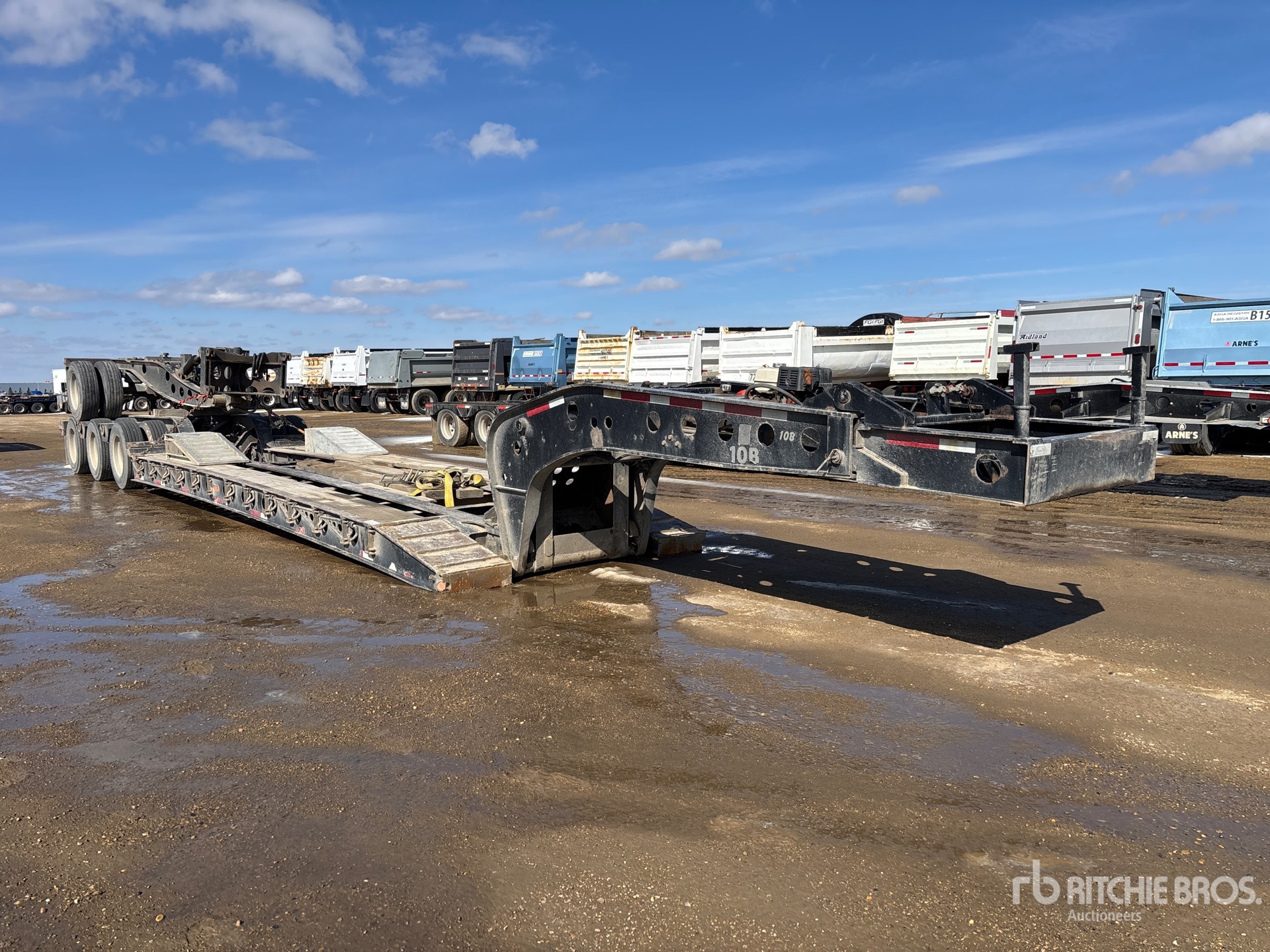 Maten worden slechts bij benadering gegeven. De werkelijke afmetingen onder belasting kunnen variëren afhankelijk van de hoogte van de vrachtwagen/aanhanger en de configuratie/positie van de geladen machine. Het is de verantwoordelijkheid van de koper om alle ladingen te meten voordat deze onze veilinglocatie verlaten, om te garanderen dat de lading veilig is voor transport. Alle maten moeten door de koper worden gecontroleerd. Vertrouw niet op deze maten voor transportdoeleinden.