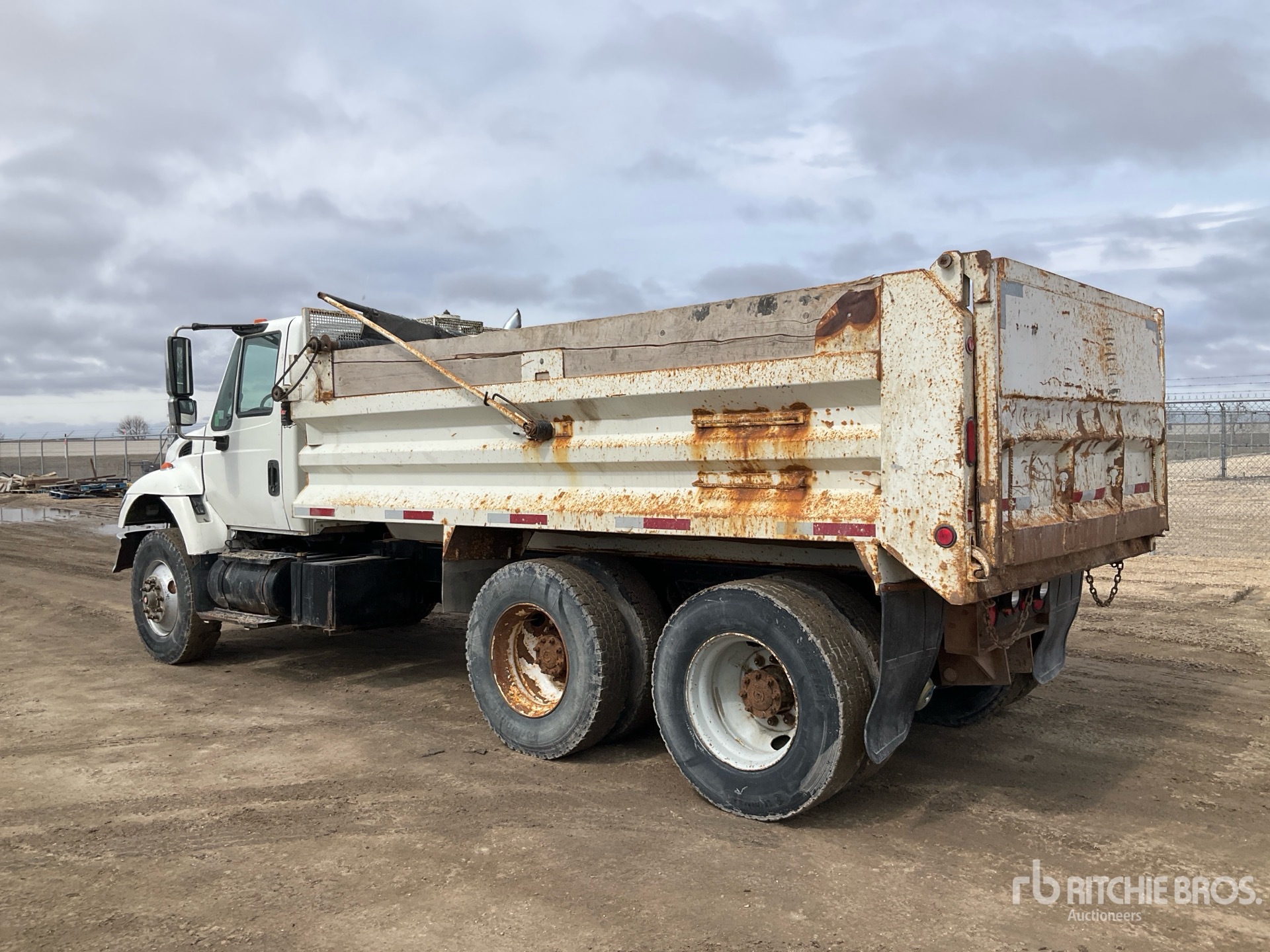 International Diesel Engine, Allison Automatic Transmission, Differential Lock, 12350 lb Front Axle, 40000 lb Rears, 52350 lb GVWR, 315/80R22.5 Front Tires, 11R22.5 Rear Tires, Rubber Suspension, 192 in Wheelbase, 15 ft Long x 42 in High Steel Body, Manual Roll Tarp