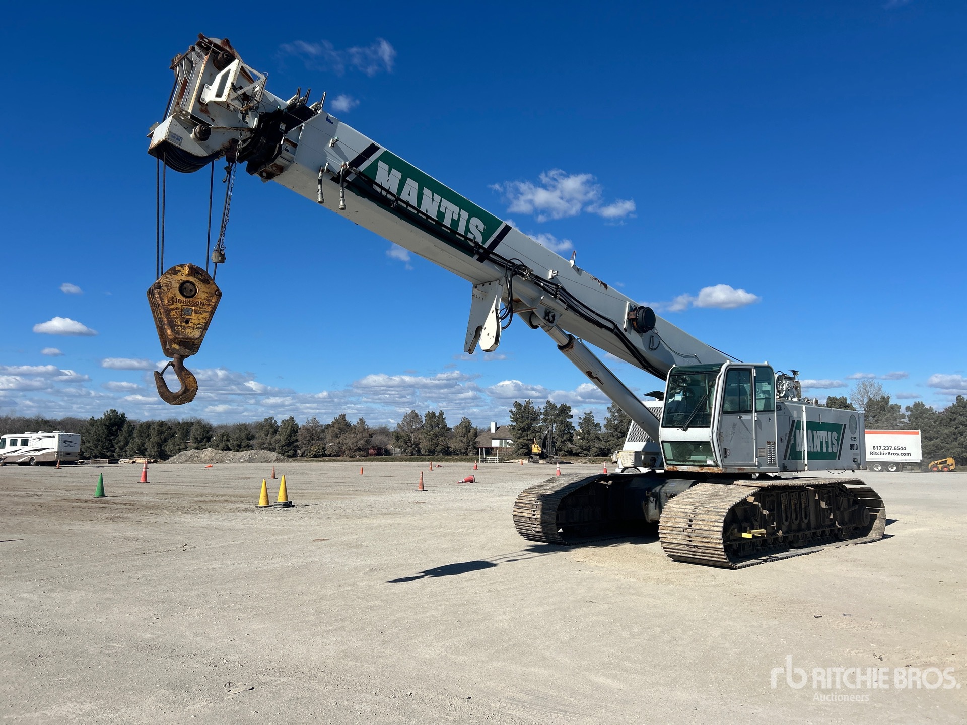 Load Moment Indicator, 34 ft Minimum 105 ft Maximum Boom Length, Johnson 3 Sheave Hook Block, 36 in Triple Grouser Track Shoes, Expandable Width Tracks