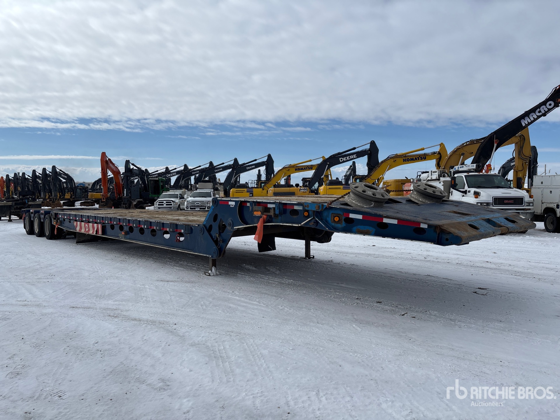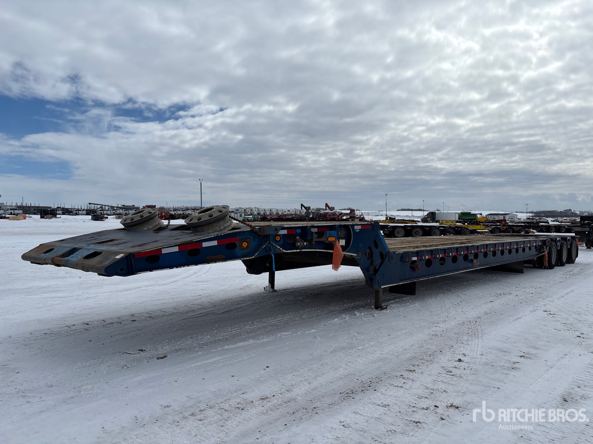 Air Ride Suspension, Flip-Up Neck Extension, Plumbed for Booster Axle, 8 ft Upper Deck, 33 ft Main Deck, 126 in Usable Deck Width, Full Width Pickup Throat, Fold-Up Dolly Legs, Center Roller, Tail Roller, Kicker Rollers, Aluminum Outer Wheels, 275/70R22.5 Tires, Complete-Dispersal-for-T-Ruckin-Oilfield-Services-Ltd