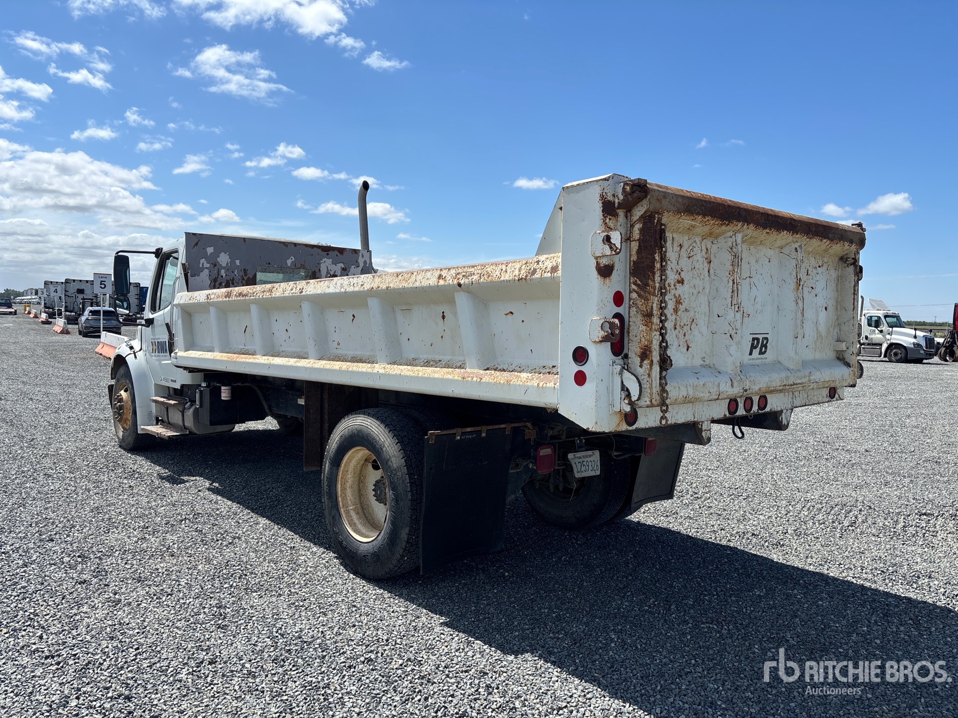Cummins ISB 6 Cylinder 6.7 L Diesel 200 hp Engine, 2009 US EPA Label, 2662 Engine hrs, Allison 2100 Automatic Transmission, 8000 lb Front Axle, 17500 lb Rears, 5.86:1 Axle Ratio, 25500 lb GVWR, 11R22.5, Spring Suspension, 210 in Wheelbase, PTO, 18 ft Long x 2 ft High Steel Body
