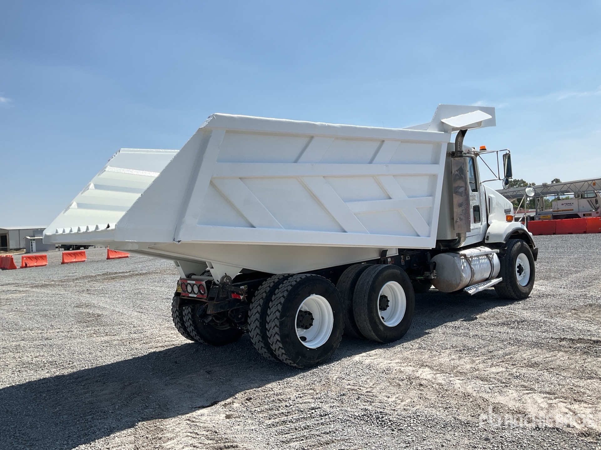 Maten worden slechts bij benadering gegeven. De werkelijke afmetingen onder belasting kunnen variëren afhankelijk van de hoogte van de vrachtwagen/aanhanger en de configuratie/positie van de geladen machine. Het is de verantwoordelijkheid van de koper om alle ladingen te meten voordat deze onze veilinglocatie verlaten, om te garanderen dat de lading veilig is voor transport. Alle maten moeten door de koper worden gecontroleerd. Vertrouw niet op deze maten voor transportdoeleinden.