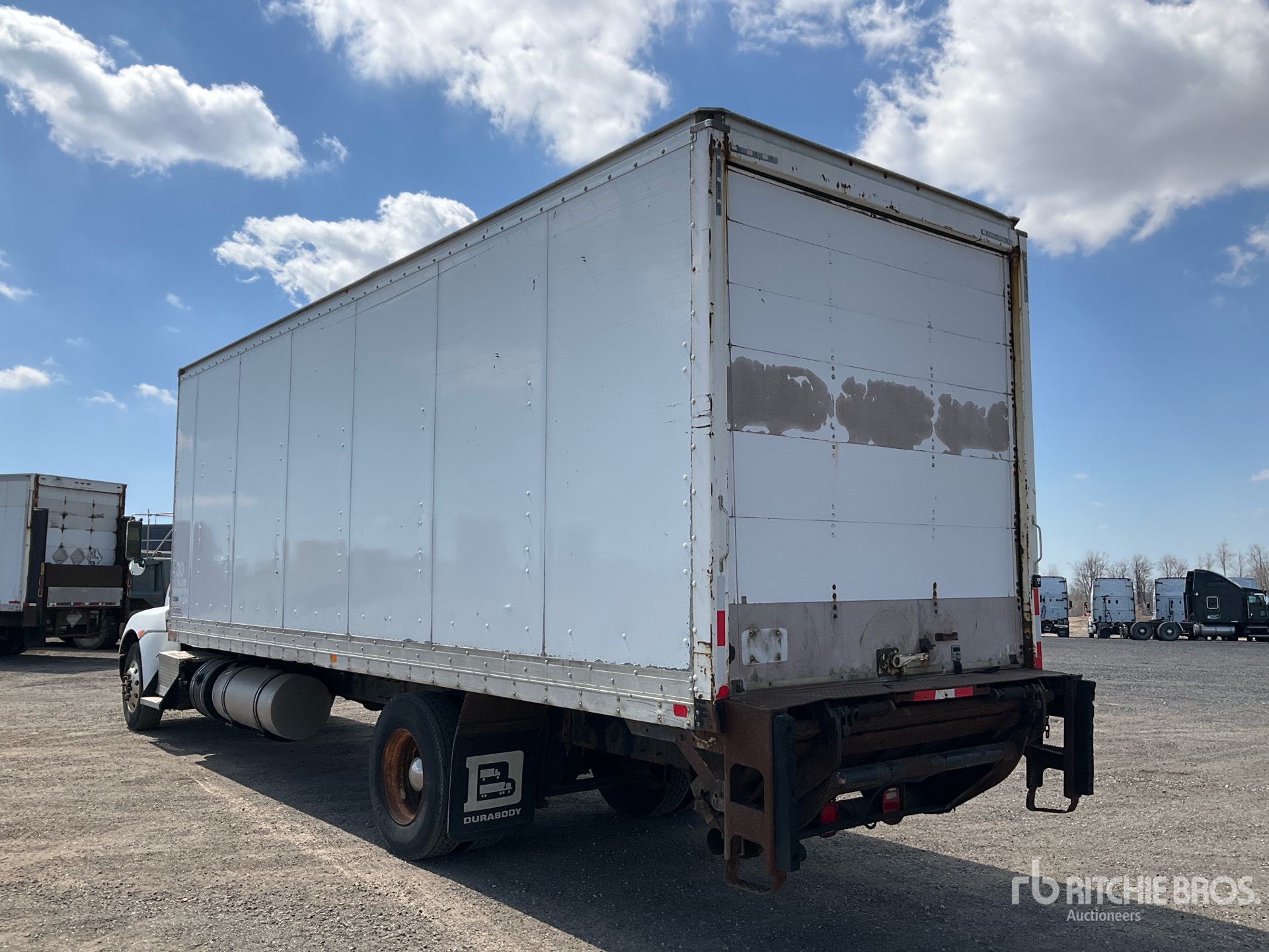 Located in Lane 16 Spot 8, Paccar PX-6 6 Cylinder 6.7 L Diesel 260 hp Engine, 2012 US EPA Label, 17413 Engine hrs, Engine Brake, Allison 2500 Automatic Transmission, 5443 kg Front Axle, 9526 kg Rears, 5.57:1 Axle Ratio, 14969 kg GVWR, Aluminum Front Wheels, 11R22.5, Hendrickson Air Ride Suspension, 272 in Wheelbase, Durabody 26 ft x 102 in Wide x 100 in High Body, Liftgate