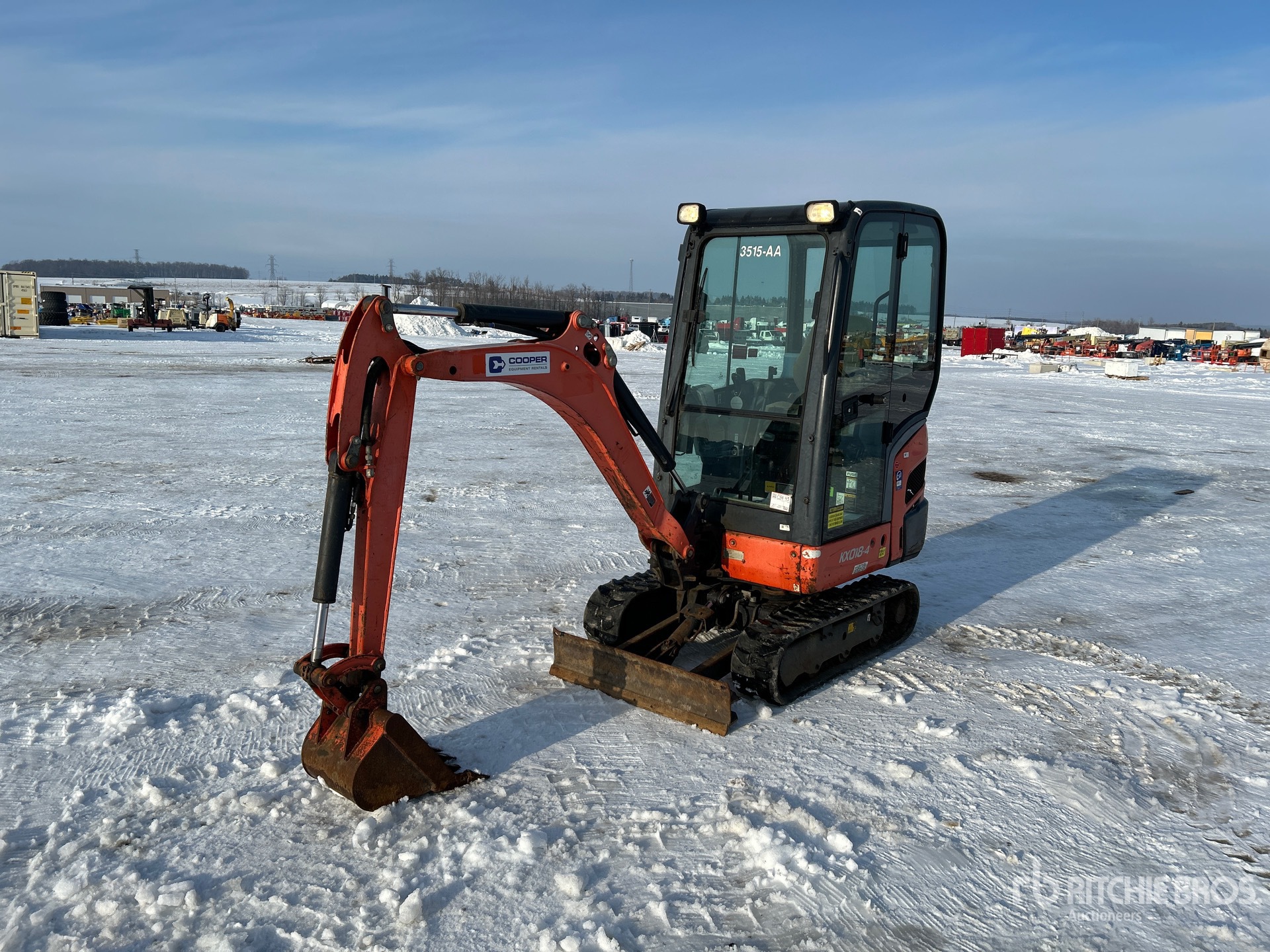 Enclosed Cab, Air Conditioner, Tier 4, 2014 US EPA Label, CARB Compliant, Swing Boom, 3 ft 8 in Stick, Backfill Blade, 9 in Rubber Tracks, Manual Quick Coupler, 16 in Digging Bucket
