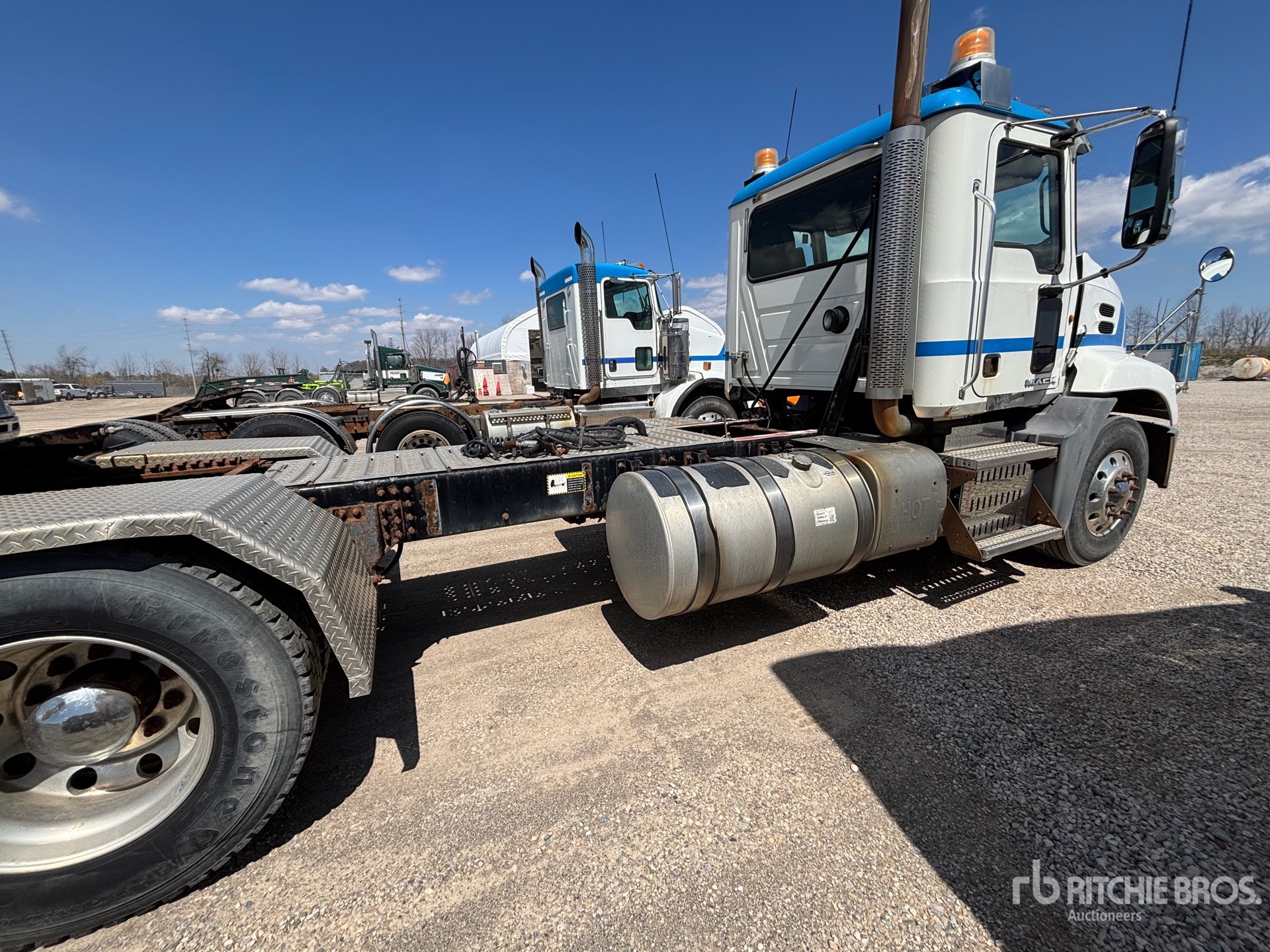 Mack MP8 505 hp Engine, 2012 US EPA Label, 17683 Engine hrs, Eaton Fuller 18-Speed 6600 kg Front Axle, 20800 kg Rears, Engine Brake, Differential Lock, 228 in Wheelbase, Air Suspension, Aluminum Wheels, 11R22.5, Air Sliding 5th Wheel