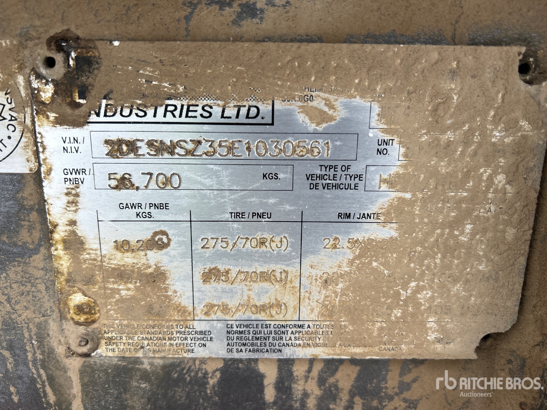 Maten worden slechts bij benadering gegeven. De werkelijke afmetingen onder belasting kunnen variëren afhankelijk van de hoogte van de vrachtwagen/aanhanger en de configuratie/positie van de geladen machine. Het is de verantwoordelijkheid van de koper om alle ladingen te meten voordat deze onze veilinglocatie verlaten, om te garanderen dat de lading veilig is voor transport. Alle maten moeten door de koper worden gecontroleerd. Vertrouw niet op deze maten voor transportdoeleinden.