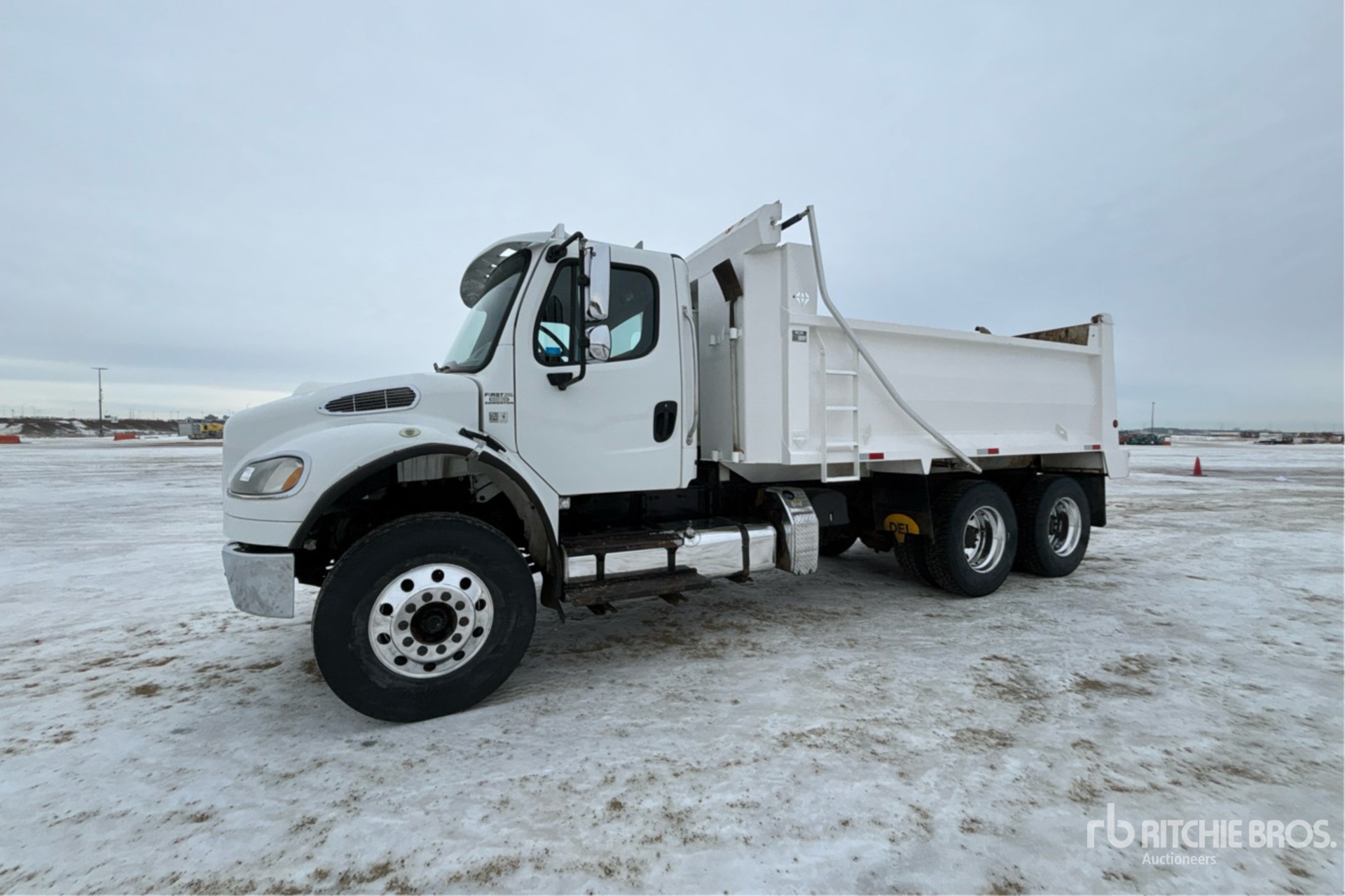 Cummins ISL9 6 Cylinder 8.9 L Diesel 300 hp Engine, US EPA Label, 15934 Engine hrs, Engine Brake, Allison 3500 6-Speed Automatic Transmission, Double Differential Locks, 14600 lb Front Axle, 40000 lb Rears, Meritor MT-40-14XP Drive Axles, 5.29:1 Axle Ratio, 54600 lb GVWR, Aluminum Wheels, 315/80R22.5 Front Tires, 11R22.5 Rear Tires, Airliner Air Ride Suspension, 200 in Wheelbase, PTO, Beau-Roc 15 ft Long x 3 ft 6 in High Steel Body, Air Powered Roll Tarp