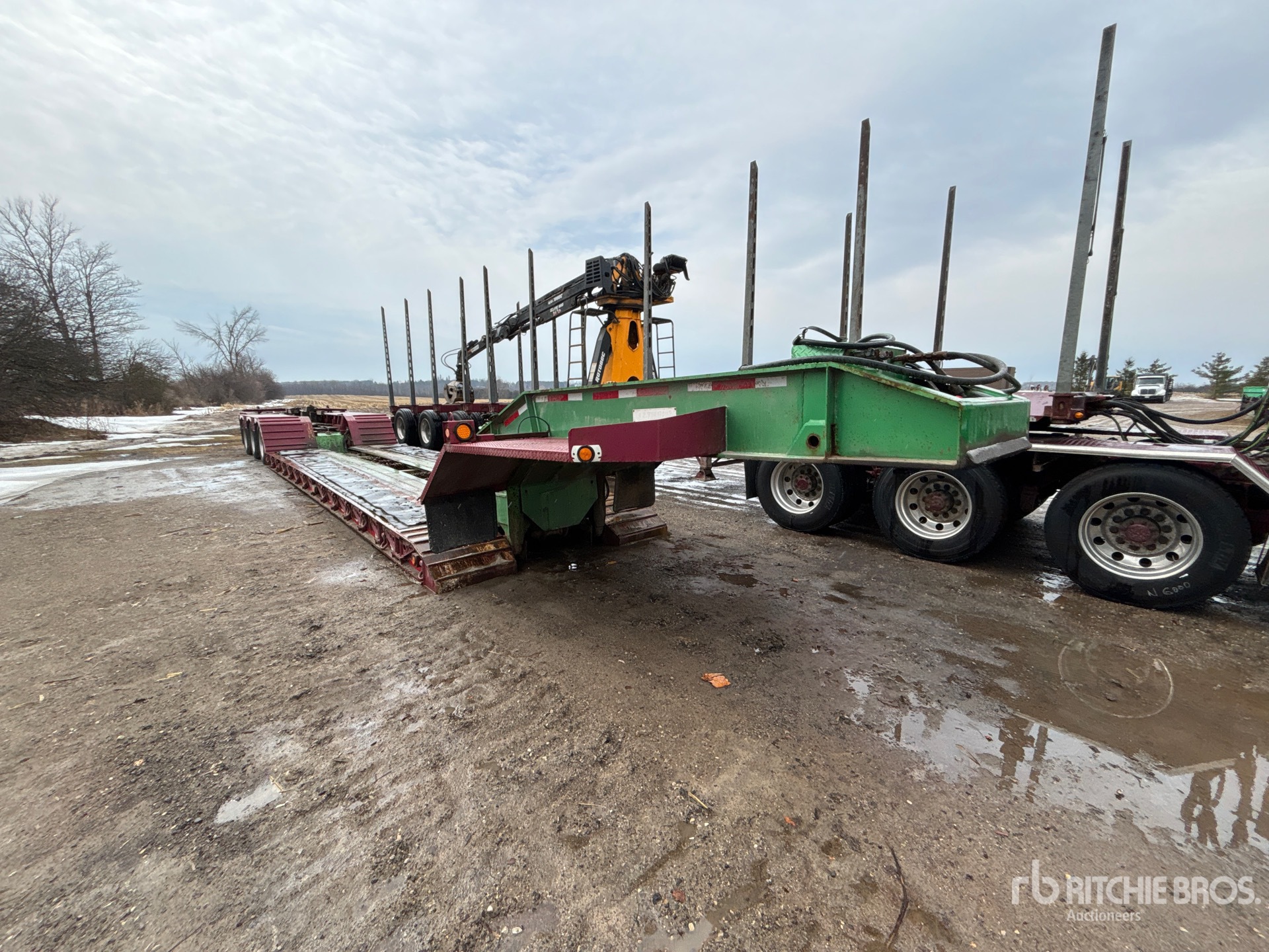 Maten worden slechts bij benadering gegeven. De werkelijke afmetingen onder belasting kunnen variëren afhankelijk van de hoogte van de vrachtwagen/aanhanger en de configuratie/positie van de geladen machine. Het is de verantwoordelijkheid van de koper om alle ladingen te meten voordat deze onze veilinglocatie verlaten, om te garanderen dat de lading veilig is voor transport. Alle maten moeten door de koper worden gecontroleerd. Vertrouw niet op deze maten voor transportdoeleinden.