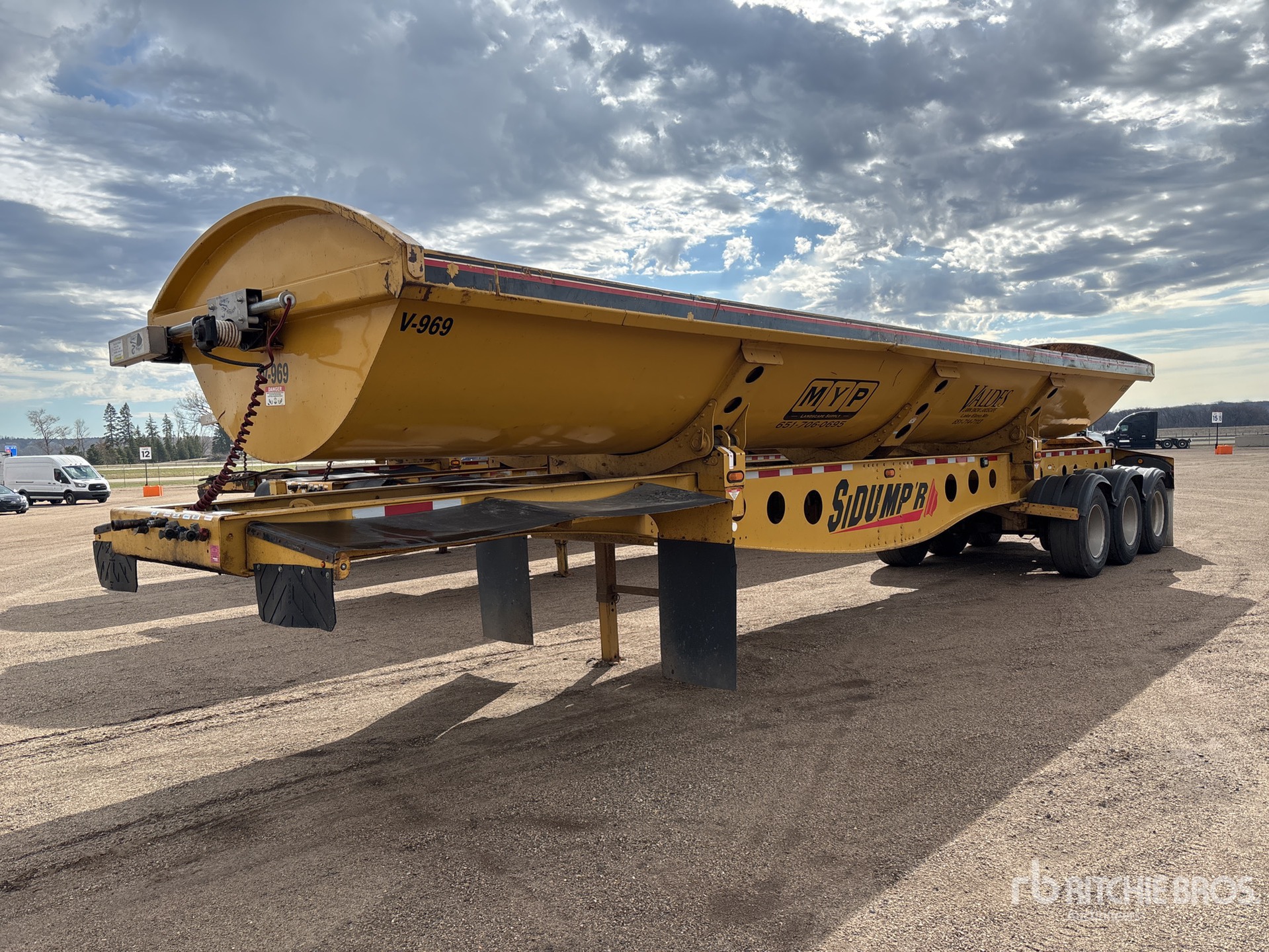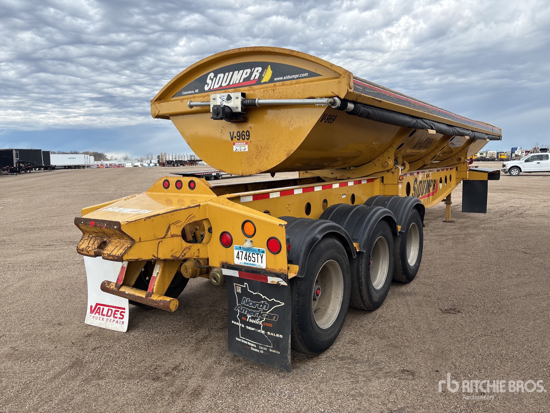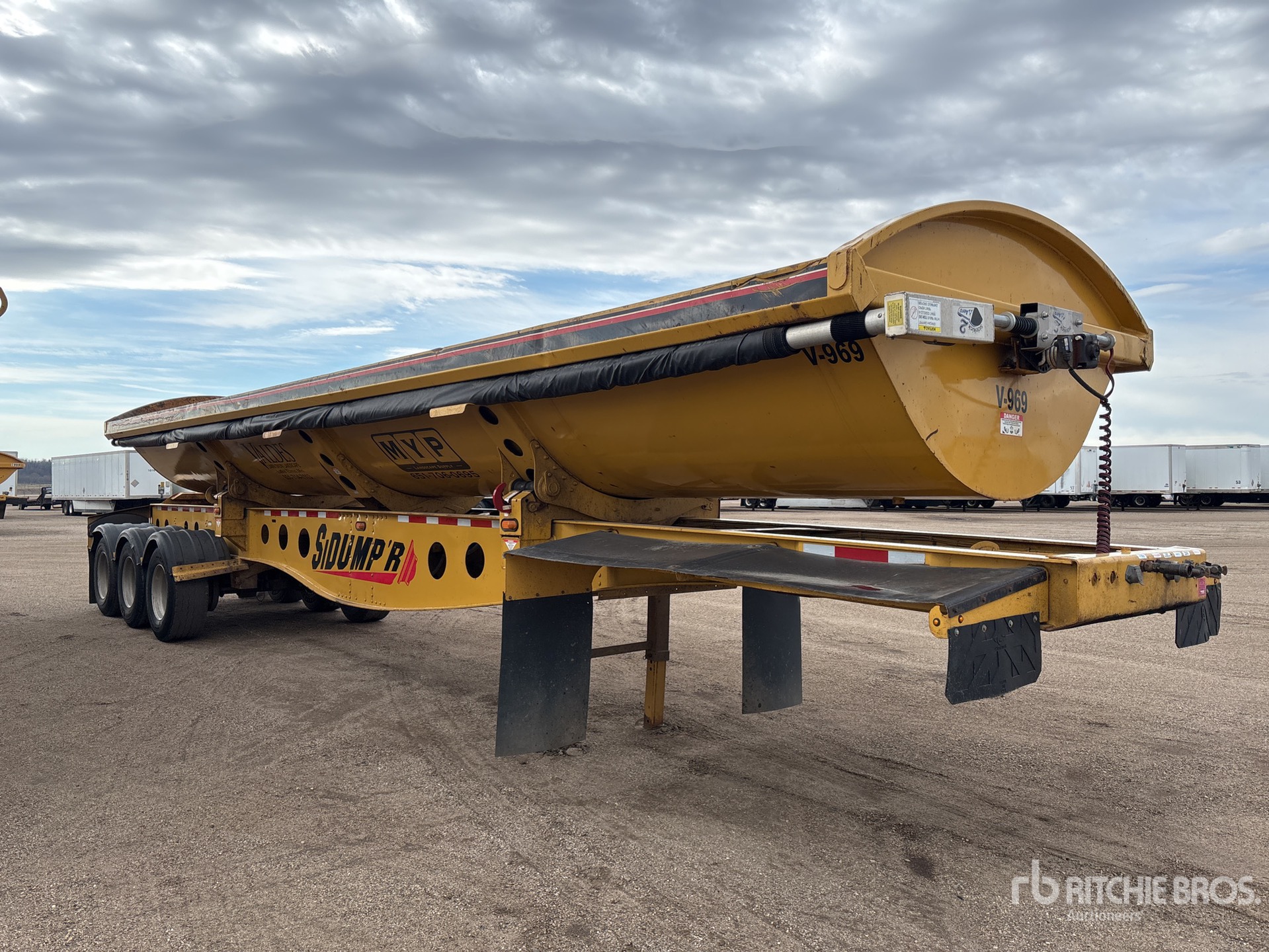 Air Ride Suspension, Dumps to Both Sides, 32 in Side Walls, Steel Body, Electric Roll Tarp, Aluminum Wheels, 385/65R22.5 Super Single Tires, 80000 lb GVWR
