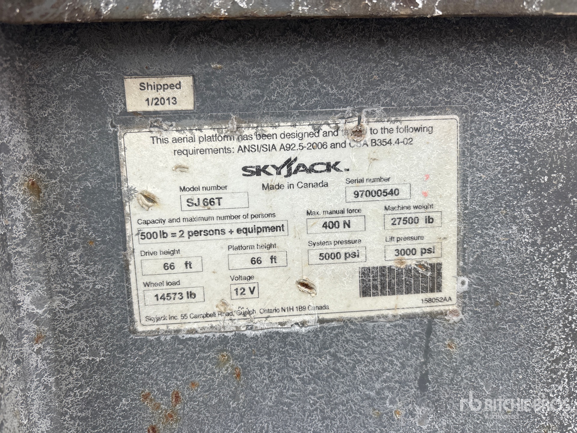 66 ft Max Platform Height, 500 lb Max Weight Capacity, Jib, Power to Platform, 2012 US EPA Label, CARB Compliant, Deutz D 2011 L 04 4 Cylinder 64 hp 3.619 cc Diesel Engine, 385/65D19.5 NHS Tires