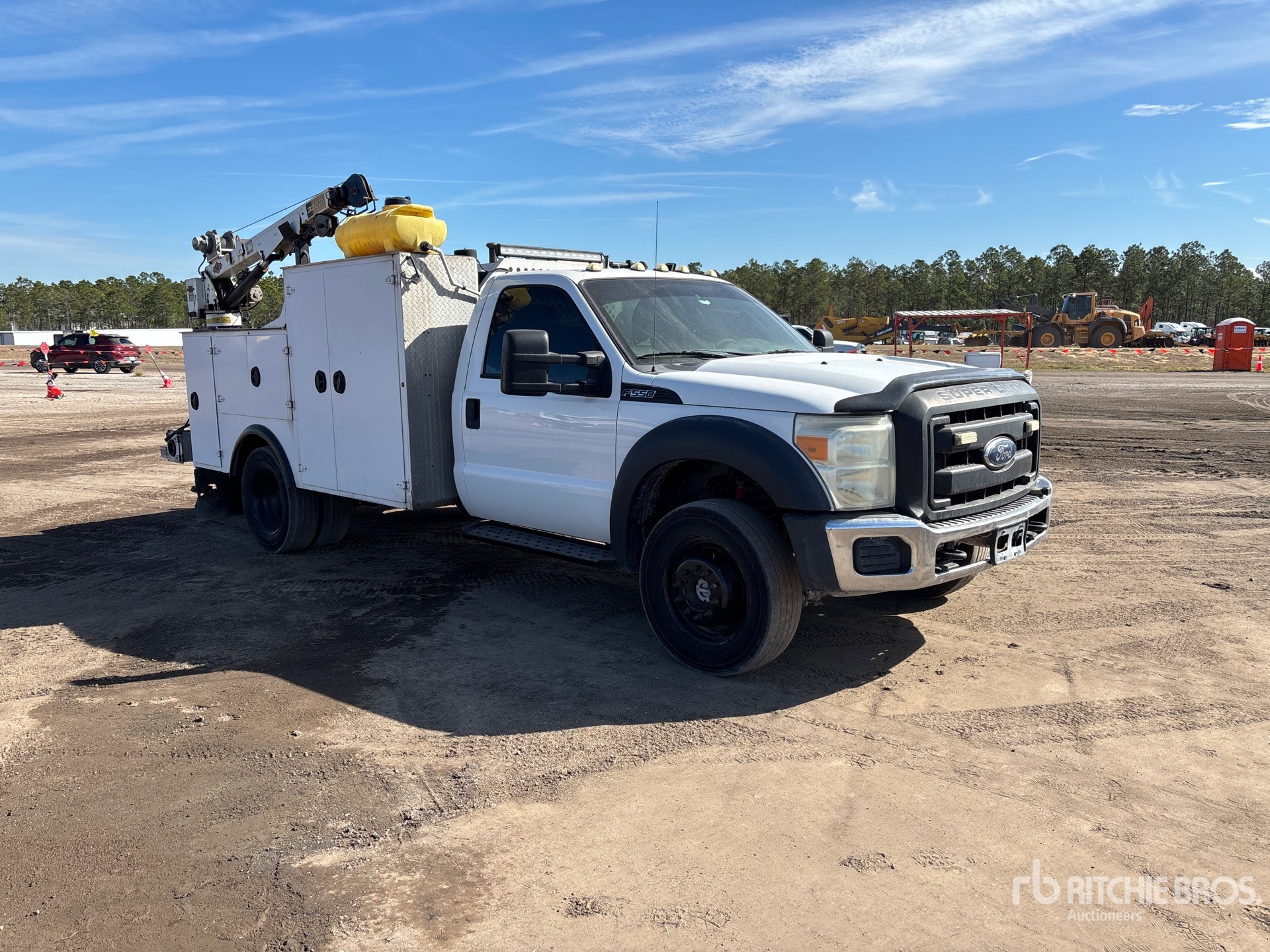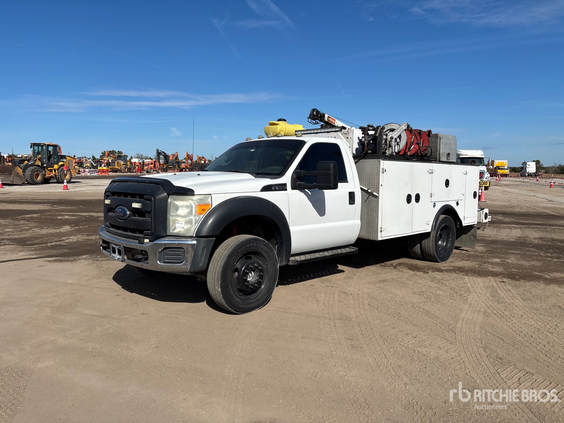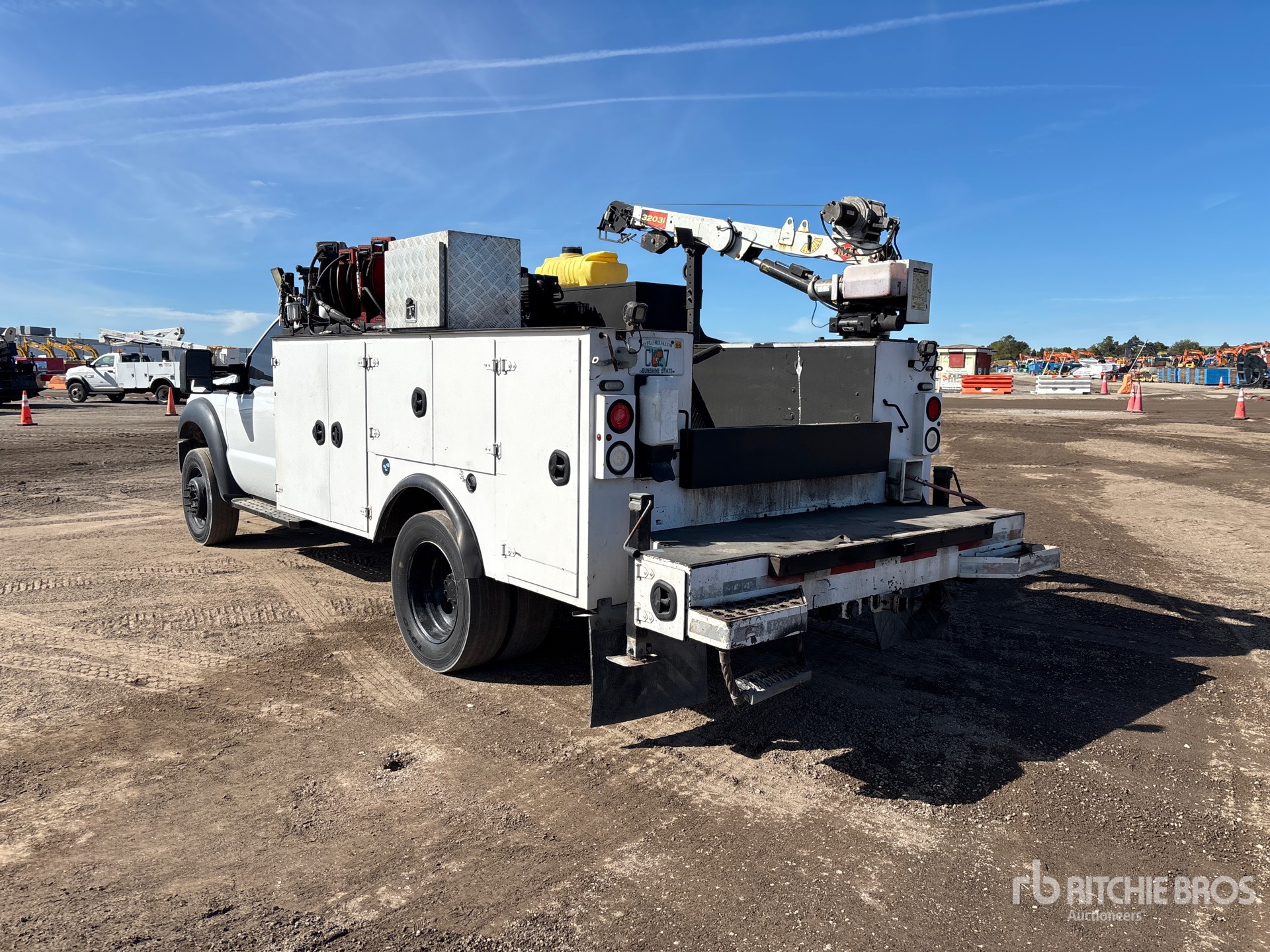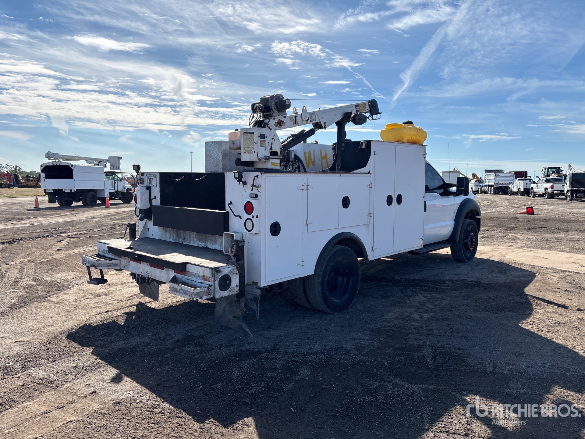 V8 6.7 L Diesel Engine, 2015 US EPA Label, Requires Diesel Exhaust Fluid, Automatic Transmission, 6500 lb Front Axle, 14706 lb Rears, 19500 lb GVWR, 245/70R19.5, Spring Suspension, 164 in Wheelbase, 11 ft Body, Manual Stabilizers, IMT 4000 lb 3 Section Hydraulic Crane, Wired Remote Control, Dewalt Gasoline Air Compressor, Air Hose Reel