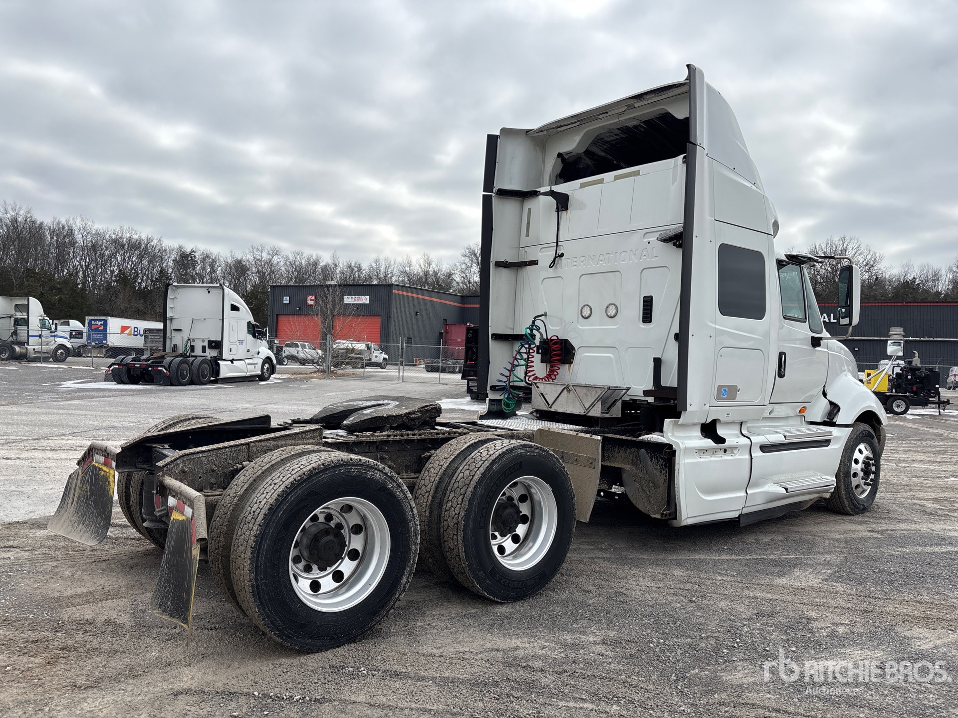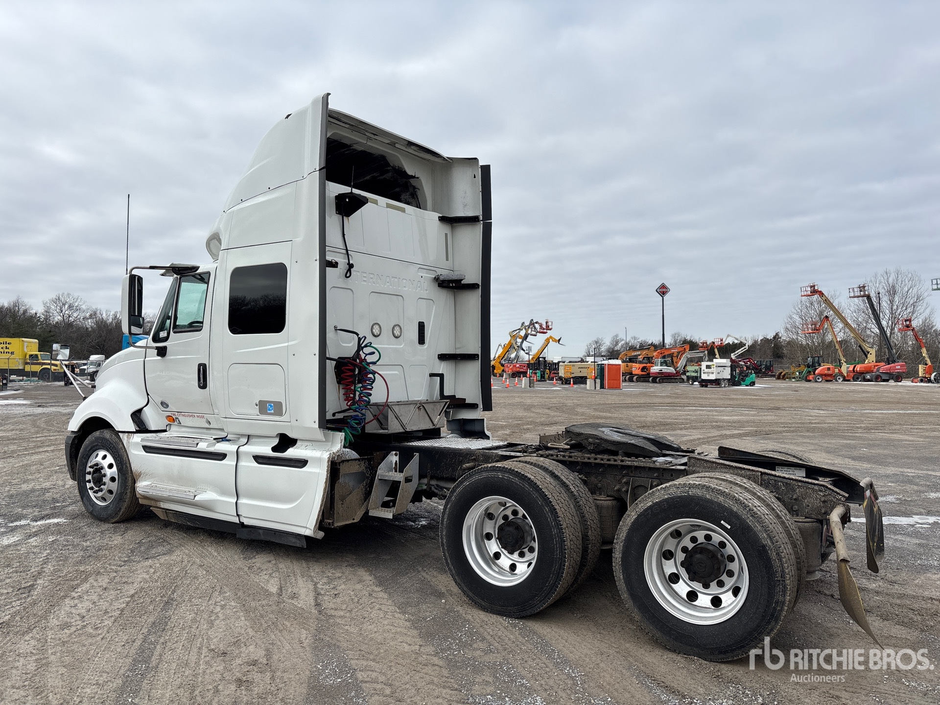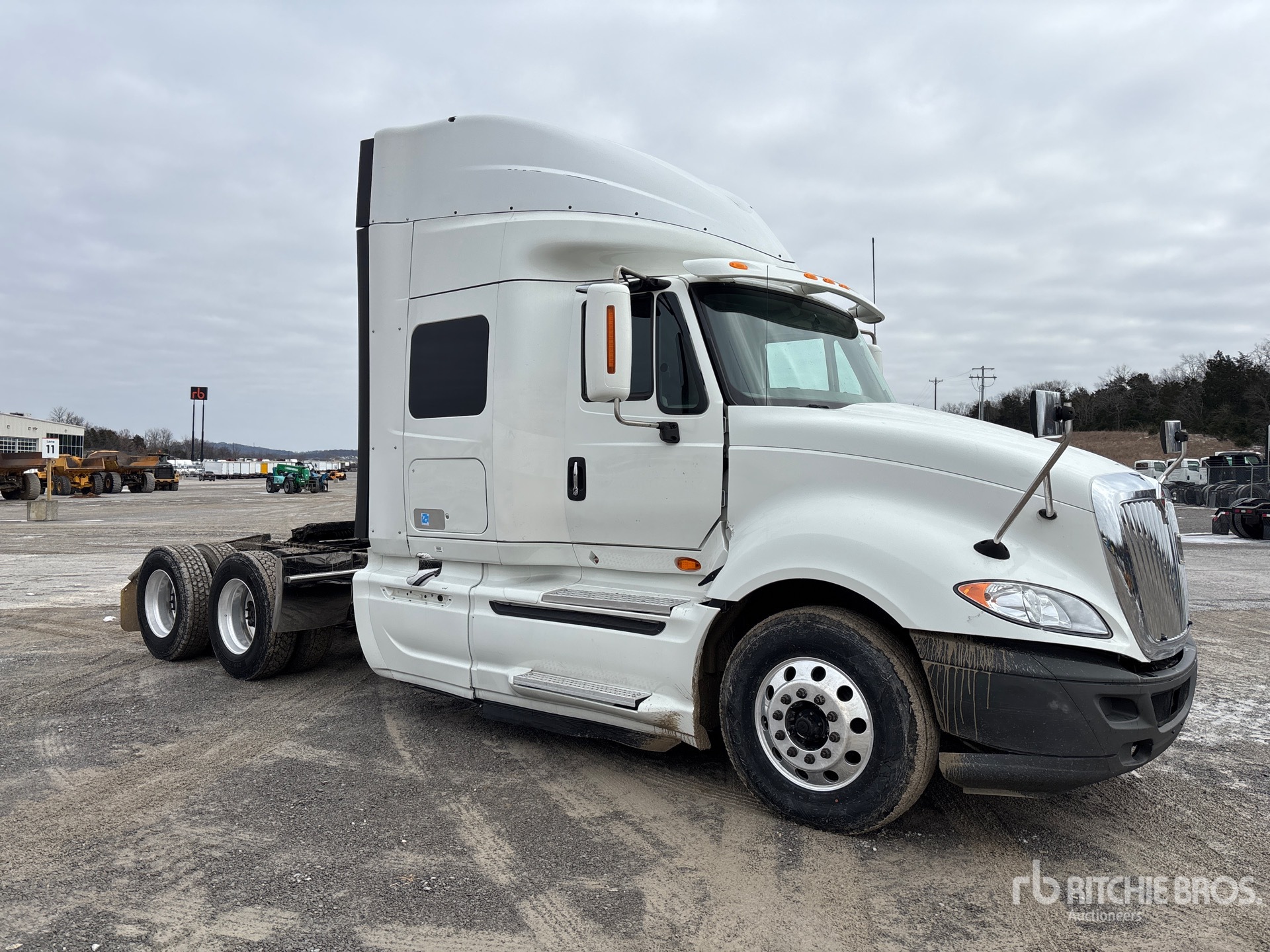 Located in Lane 4 Spot 24, Cummins ISX15 400 hp Engine, 2014 US EPA Label, 23560 Engine hrs, 13200 lb Front Axle, 40000 lb Rears, 53200 lb GVWR, Engine Brake, 51 in Mid Roof Sleeper Cab, 229 in Wheelbase, Aluminum Wheels, 295/75R22.5, Air Sliding 5th Wheel, Dual Fuel Tanks, Lowboy Ramps