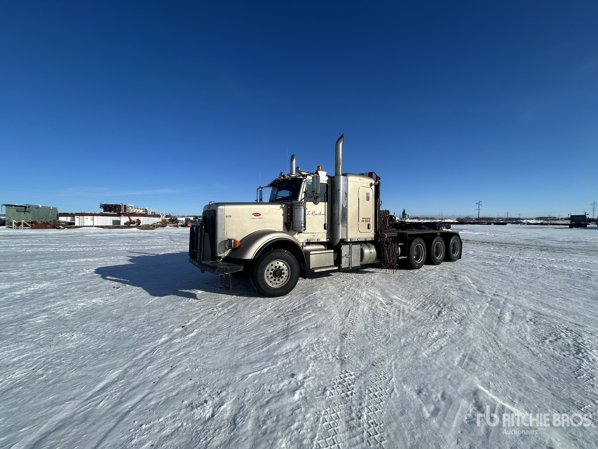 Cummins ISX15 6 Cylinder 15.0 L Diesel 550 hp Engine, 2014 US EPA Label, CARB Compliant, Requires Diesel Exhaust Fluid, Engine Coolant Heater, Positive Air Shutoff, Webasto Engine Coolant Heater, 5212 Engine hrs, Engine Brake, Eaton Fuller RTLO-18918B 18-Speed Manual Transmission, Double Differential Locks, 16000 lb Front Axle, 46000 lb Rears, Dana D46-170HP Drive Axles, 4.10:1 Axle Ratio, Air Ride Cab, 52 in Mid Roof Sleeper Cab, Bunk Heater, Aluminum Wheels, 385/65R22.5 Front Tires, 11R24.5 Rear Tires, Neway ADZ Series Air Ride Suspension, 236 in Wheelbase, PTO, Tail Roll, Complete-Dispersal-for-T-Ruckin-Oilfield-Services-Ltd