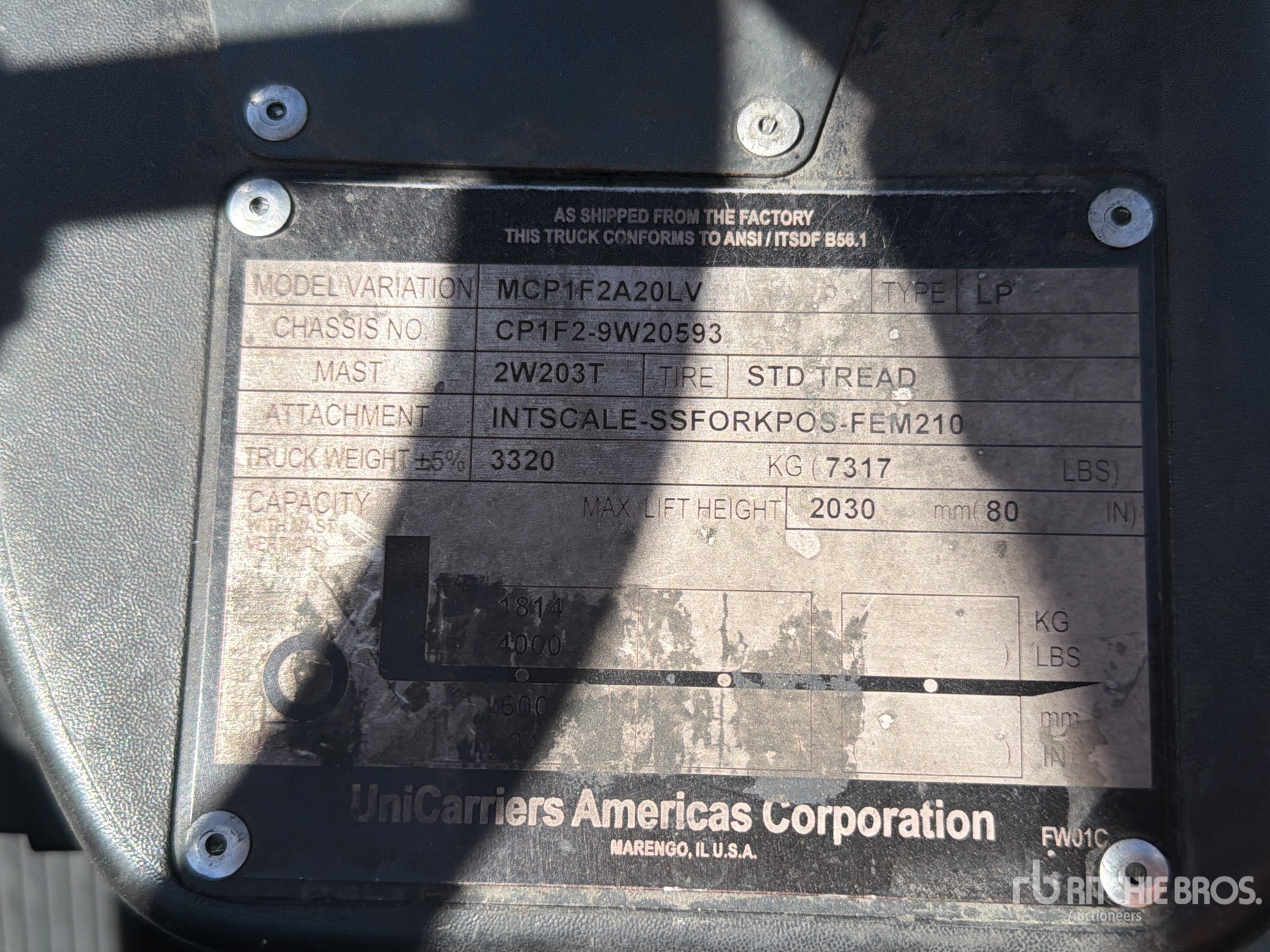 De gedetailleerde informatie over het materieel is beperkt, en Ritchie Bros. Auctioneers heeft geen andere aspecten of onderdelen van het materieel geïnspecteerd dan uitdrukkelijk in dit document vermeld. Tenzij uitdrukkelijk vermeld, geven wij geen verklaringen of garanties, expliciet of impliciet, met betrekking tot het materieel of de onderdelen ervan, met inbegrip van, maar niet beperkt tot, verklaringen of garanties met betrekking tot functionaliteit, conformiteit of naleving van veiligheidsnormen of -vereisten van een toepasselijke autoriteit of regelgevende instantie, geschiktheid voor een bepaald doel of verkoopbaarheid. U wordt ten zeerste aangeraden uw eigen gedetailleerde inspectie van het materieel uit te voeren voordat u een bod plaatst.