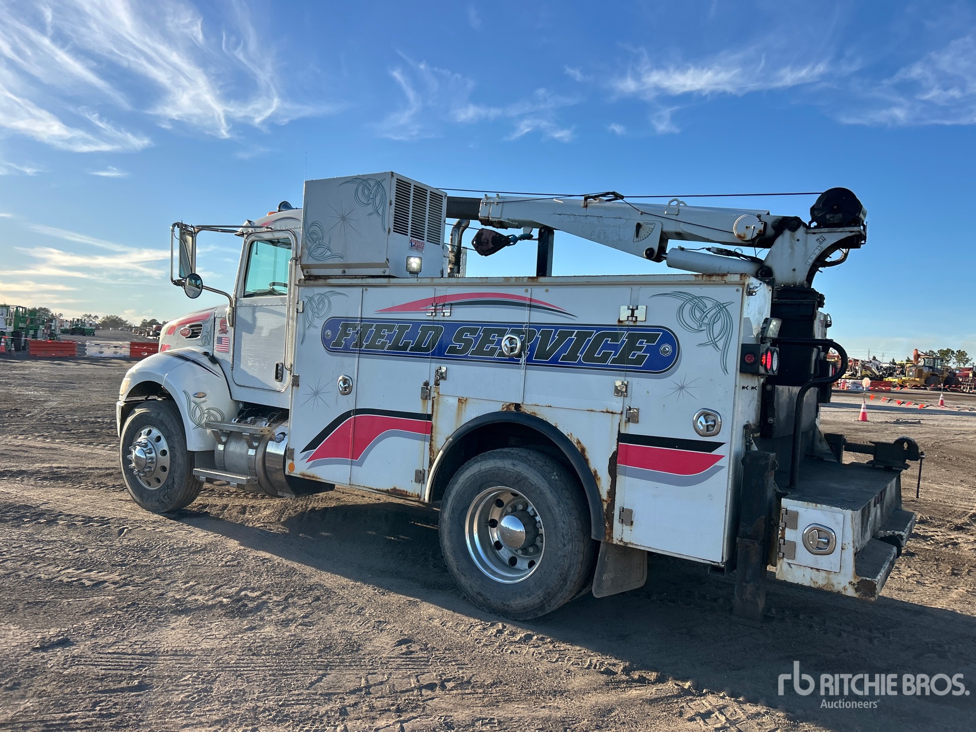 Located in Lane 402 Spot 37, Paccar PX-7 6 Cylinder 6.7 L Diesel 300 hp Engine, 2014 US EPA Label, Requires Diesel Exhaust Fluid, 11331 Engine hrs, Engine Brake, Allison 2500 Automatic Transmission, 10000 lb Front Axle, 21000 lb Rears, Spicer S21-170 Drive Axles, 5.57:1 Axle Ratio, 26000 lb GVWR, Air Ride Cab, Aluminum Wheels, 11R22.5, Spring Suspension, 158 in Wheelbase, 13 ft 4 in Body, Hydraulic Stabilizers, Stellar 12261 12000 lb 3 Section Hydraulic Crane, Wireless Remote Control, American Eagle Hydraulic Air Compressor, Air Hose Reel