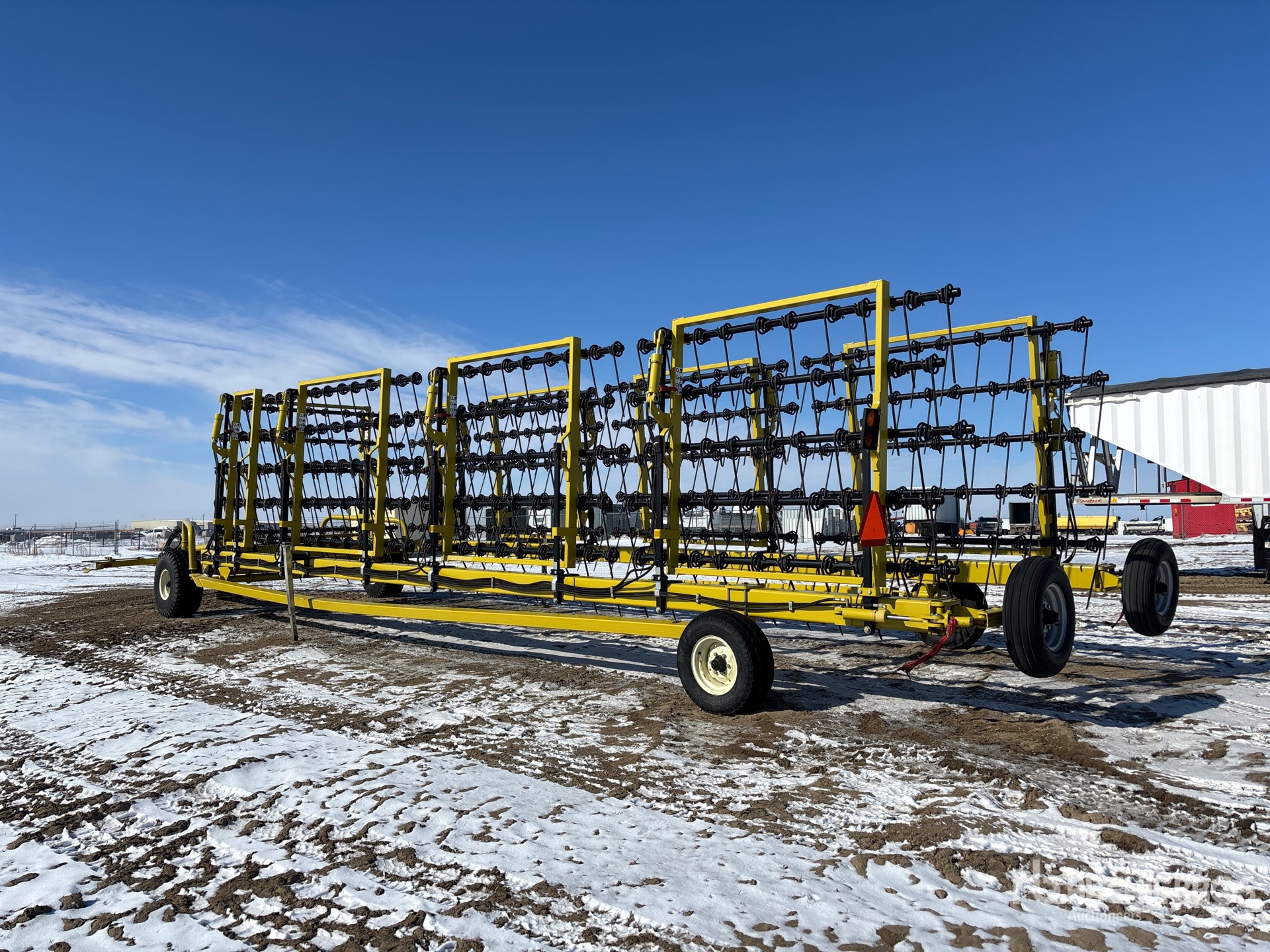 Maten worden slechts bij benadering gegeven. De werkelijke afmetingen onder belasting kunnen variëren afhankelijk van de hoogte van de vrachtwagen/aanhanger en de configuratie/positie van de geladen machine. Het is de verantwoordelijkheid van de koper om alle ladingen te meten voordat deze onze veilinglocatie verlaten, om te garanderen dat de lading veilig is voor transport. Alle maten moeten door de koper worden gecontroleerd. Vertrouw niet op deze maten voor transportdoeleinden.