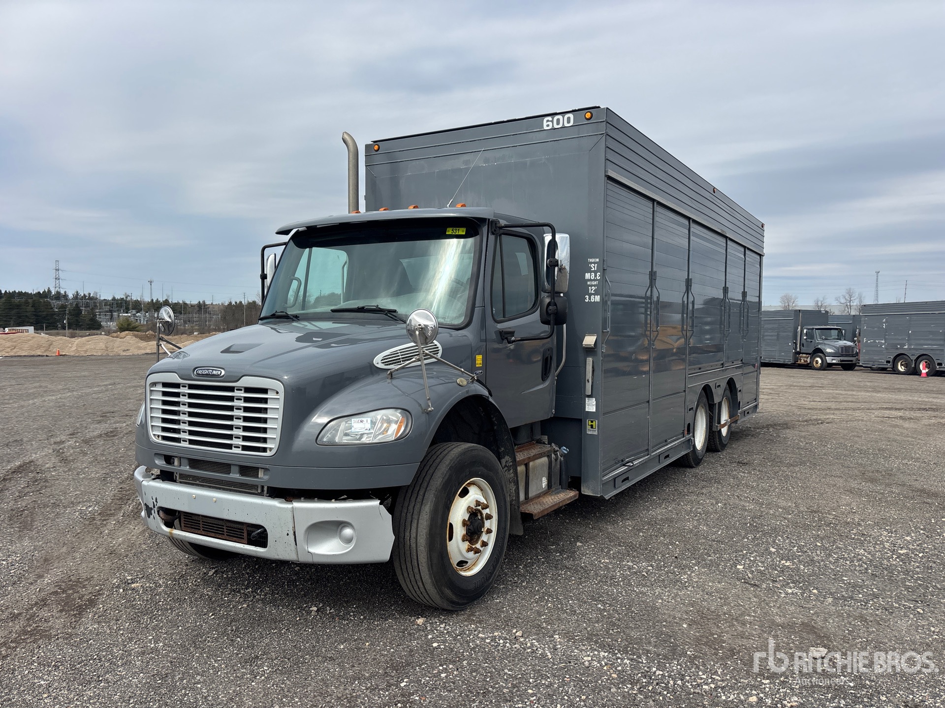 Cummins ISL 6 Cylinder Diesel Engine, Requires Diesel Exhaust Fluid, 8883 Engine hrs, Allison 3000 Automatic Transmission, 14600 lb Front Axle, 40000 lb Rears, 5.86:1 Axle Ratio, Air Ride Cab, 295/75R22.5 Front Tires, 11R22.5 Rear Tires, Airliner Air Ride Suspension, 256 in Wheelbase, Hesse 26 ft Body, Rear Loading, Hinged Bay Shelves, Pull-Out Side Steps, 52 in / 76 in Bays, 111 in / 84 in Door Height