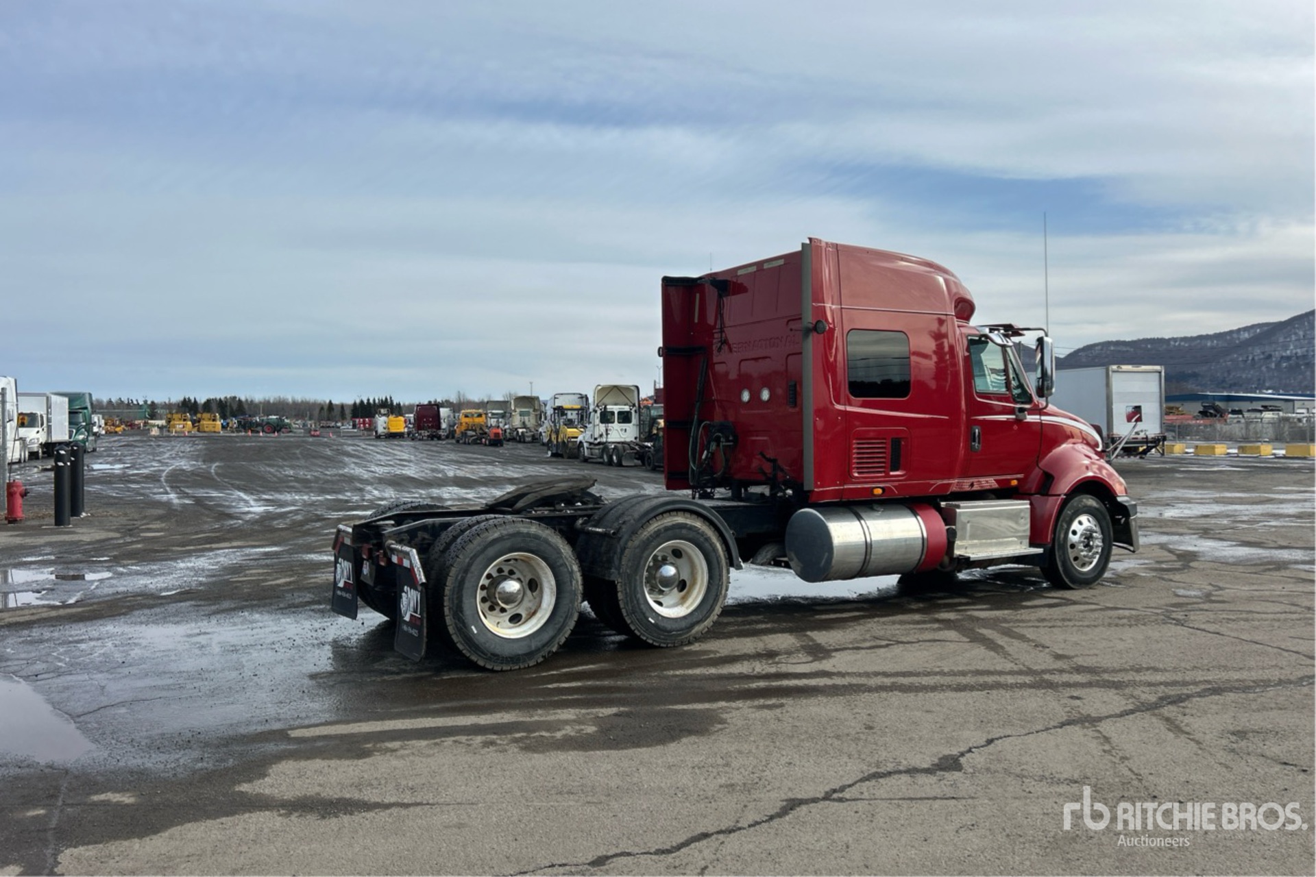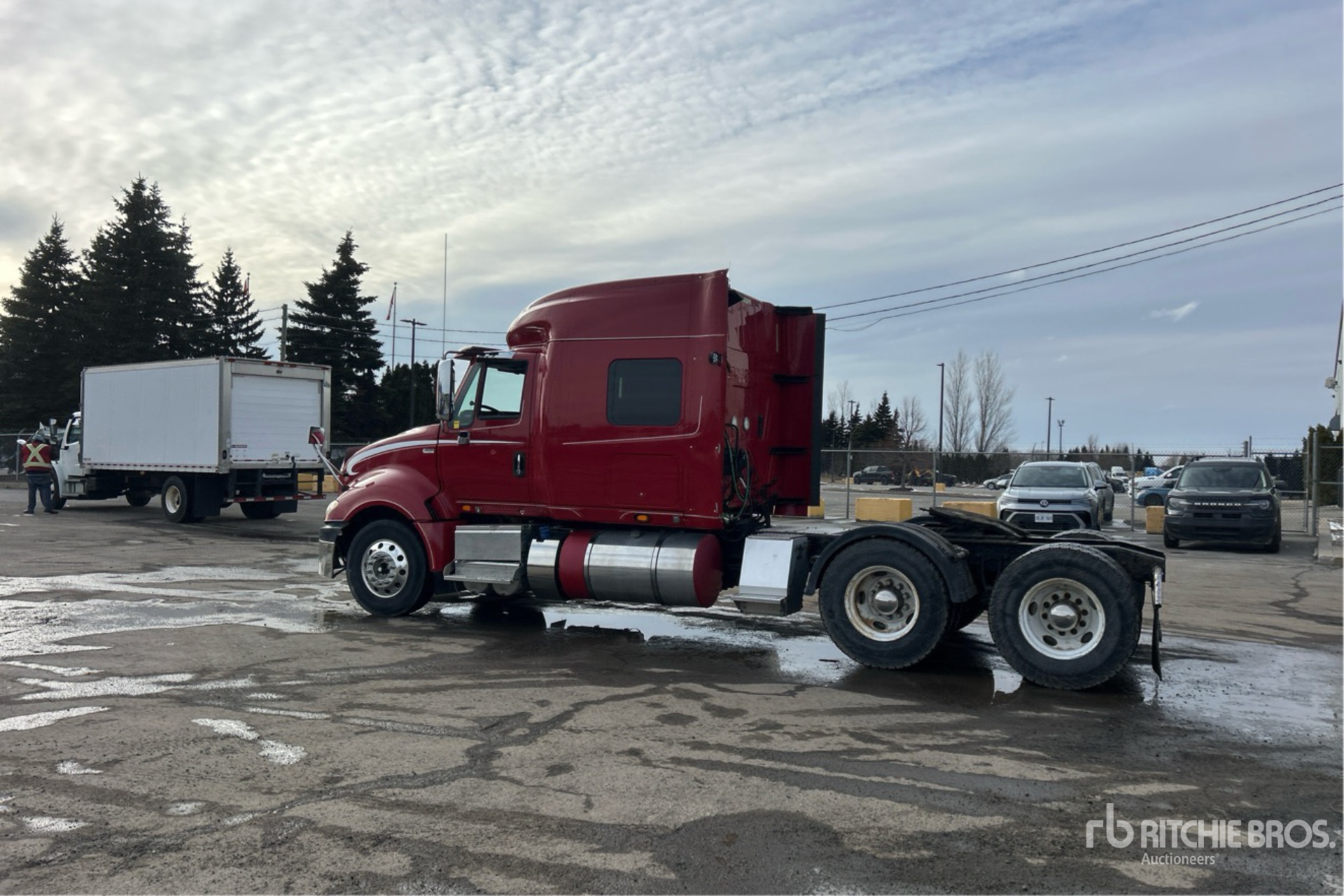 Navistar N13 450 hp Engine, 2014 US EPA Label, 14800 Engine hrs, Automatic Transmission, 13220 lb Front Axle, 40000 lb Rears, 53220 lb GVWR, Engine Brake, Differential Lock, 56 in Mid Roof Sleeper Cab, 232 in Wheelbase, Air Suspension, Aluminum Front Wheels, 11R22.5, Air Sliding 5th Wheel, Dual Fuel Tanks