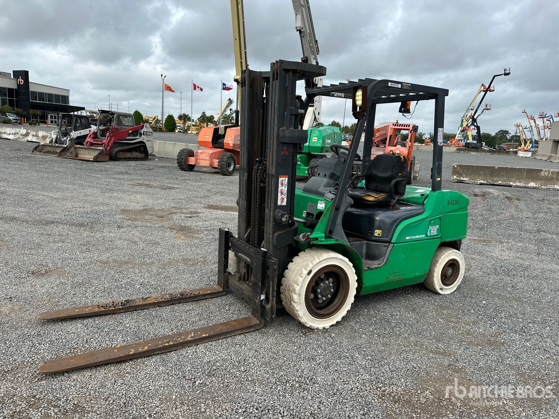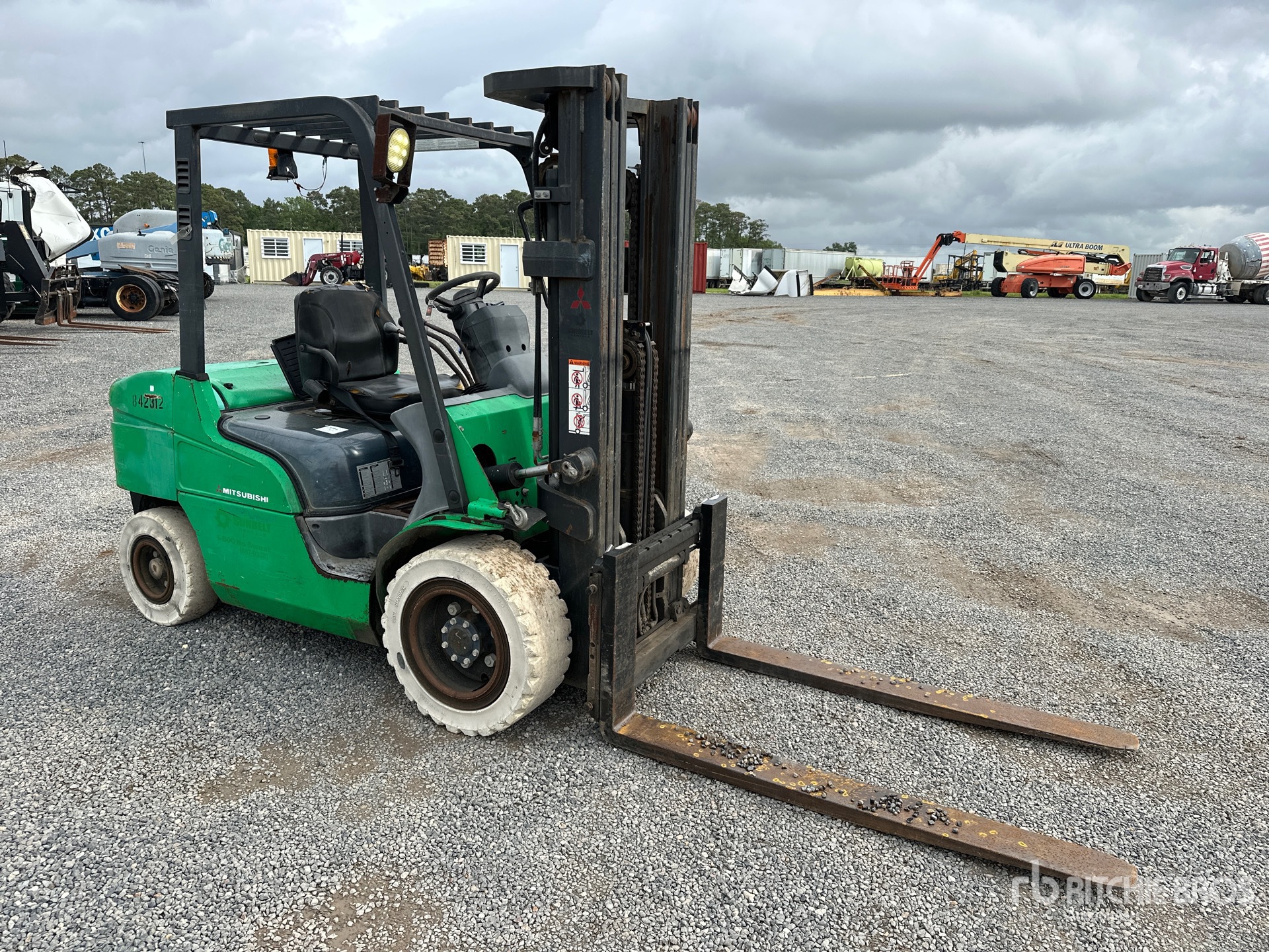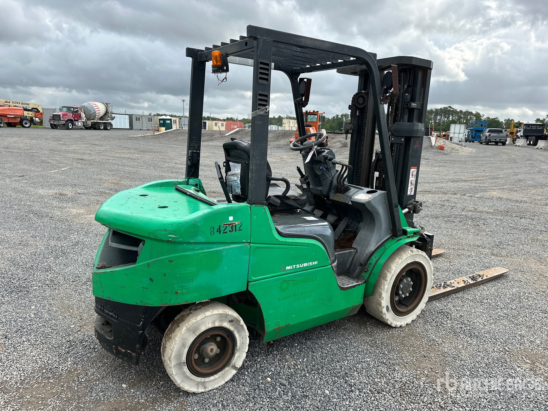3 Stage Mast, Full Free Lift, 186 in Max Lift Height, 83.5 in Lowered Mast Height, 60 in Forks, Side Shift, Solid Pneumatic Tires, 4 Cylinder Diesel Engine