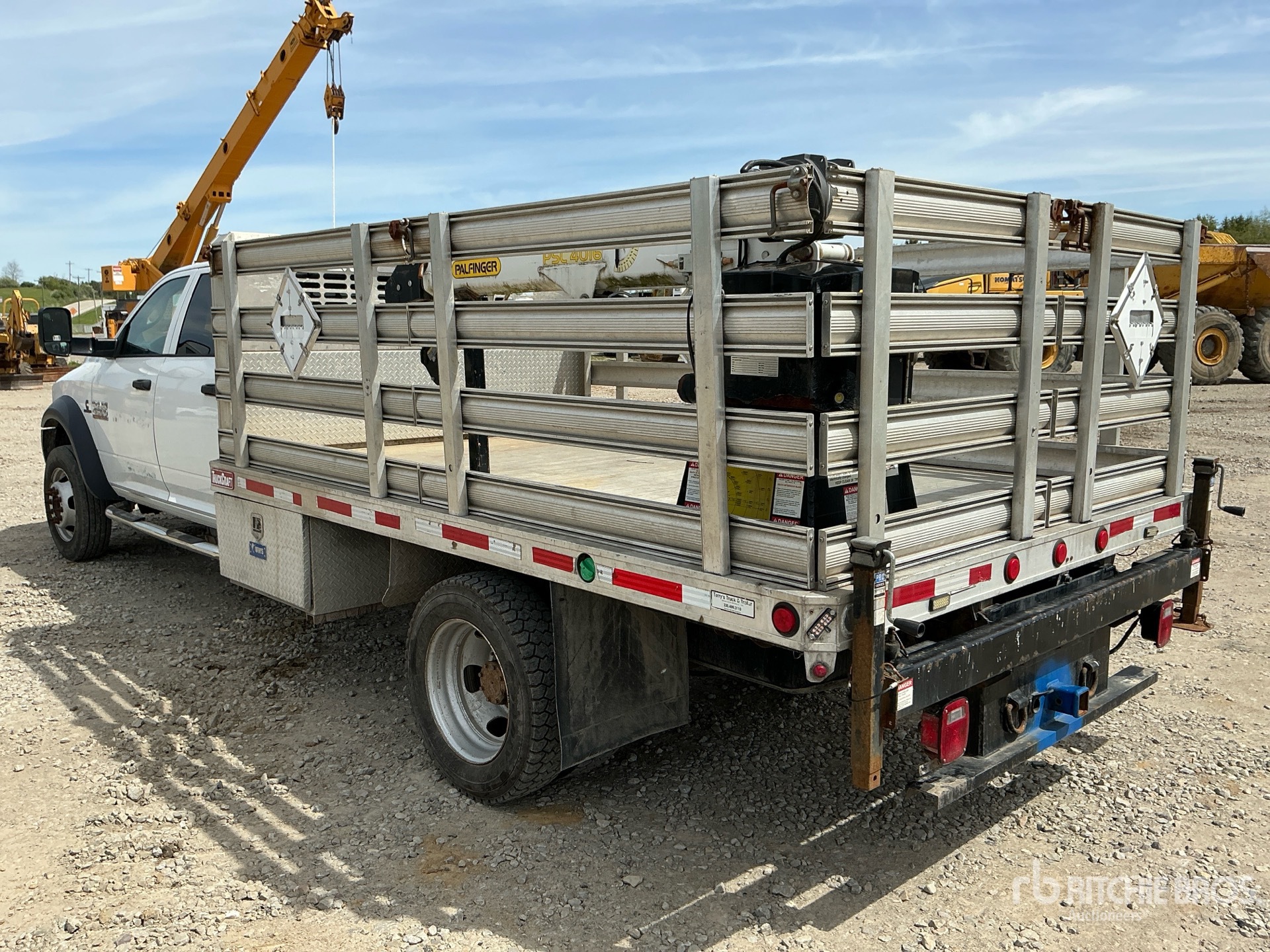 Cummins 6 Cylinder 6.7 L Diesel Engine, 2016 US EPA Label, Requires Diesel Exhaust Fluid, 6209 Engine hrs, Exhaust Brake, Automatic Transmission, 7000 lb Front Axle, 12000 lb Rears, 15000 lb GVWR, 225/70R19.5, Spring Suspension, 198 in Wheelbase, Palfinger PSC4016 4000 lb 3 Section Crane, Wireless Remote Control, 12 ft x 96 in Bed, Aluminum Frame, Liftgate, Receiver