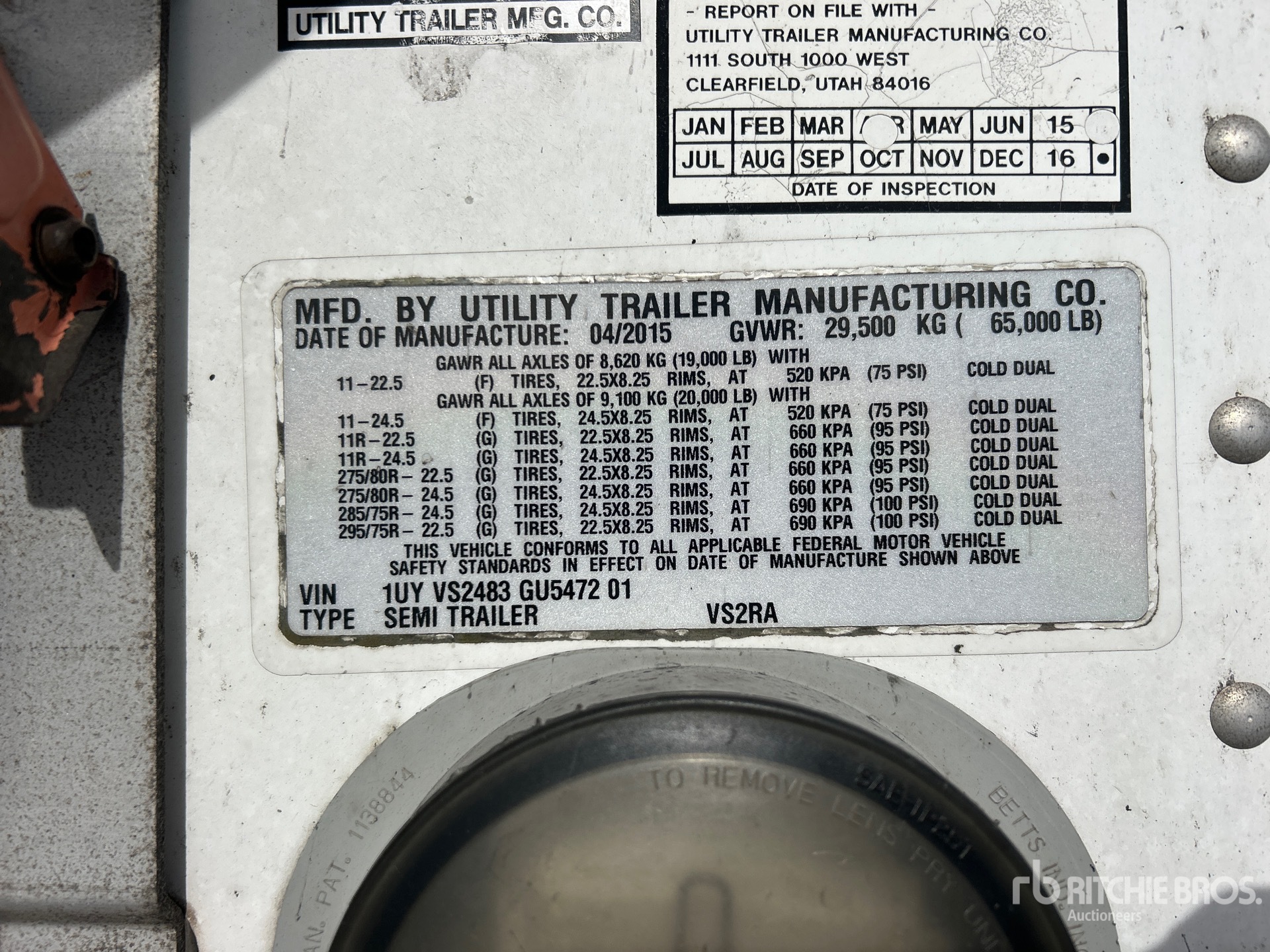 2015 Thermo King S-600 Refrigeration Unit, 17911 Total Hours, Aluminum/Steel Combination Frame, Spring Sliding Suspension, Side Skirts, Ducted Floor, Roll-Up Door, Lift Gate, 11R22.5 Tires, 65000 lb GVWR