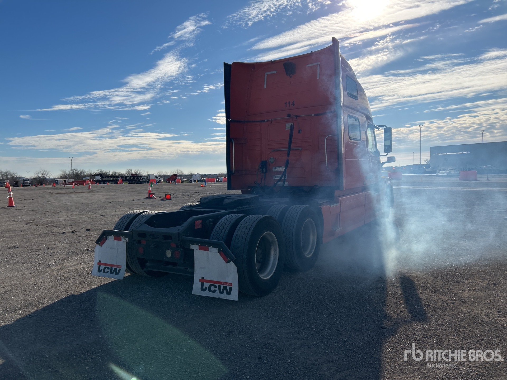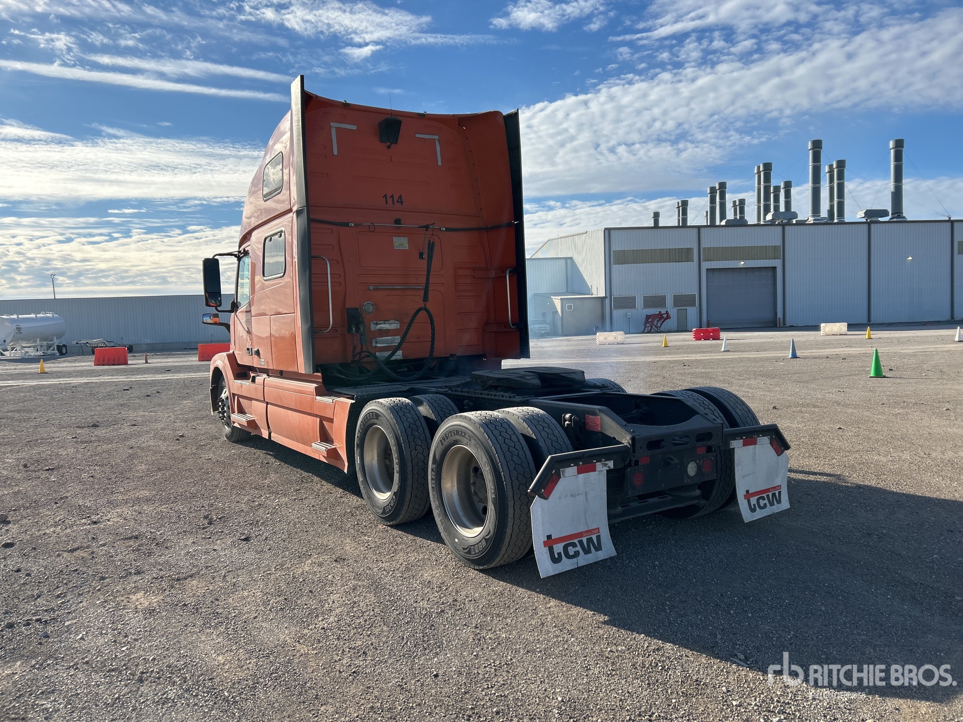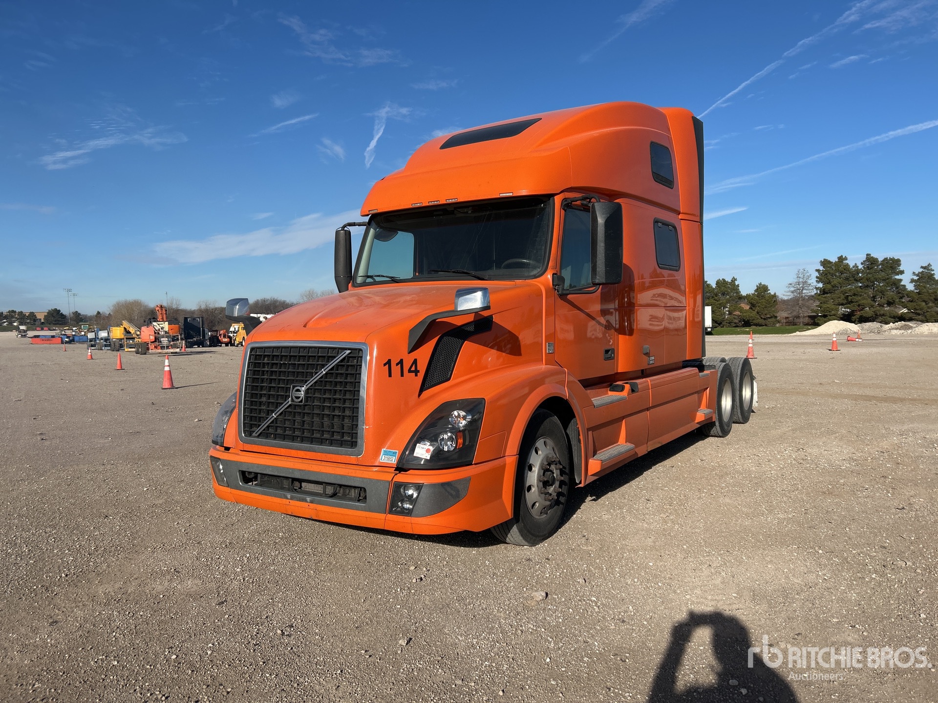 Volvo D13J 455 hp Engine, 2015 US EPA Label, 17440 Engine hrs, Volvo ATO2612D 12-Speed Automated Transmission, 13200 lb Front Axle, 40000 lb Rears, 53200 lb GVWR, Engine Brake, 77 in High Rise Sleeper Cab, Bunk Beds, 235 in Wheelbase, Air Suspension, Aluminum Outer Wheels, 275/80R22.5 Front Tires, 295/75R22.5 Rear Tires, Air Sliding 5th Wheel, Dual Fuel Tanks